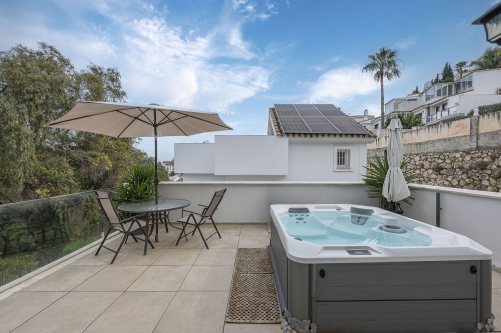 • Just 500 meters from the sea, where every stroll becomes an encounter with the Mediterranean breeze, lies this exclusive detached villa located in a select private development comprised of only 8 residences. An intimate enclave that guarantees absolute privacy, serenity, and a distinguished lifestyle. Built in 2017, the property combines contemporary architecture, spaciousness, and high-quality finishes with state-of-the-art technology, offering a sophisticated and functional residential experience. Spaces designed for enjoyment 5 spacious bedrooms filled with natural light 3 full bathrooms + 1 guest toilet with elegant finishes 4 perfectly distributed levels for greater independence and comfort 4 open terraces ideal for relaxing or sharing special moments Private Jacuzzi on one of the terraces, perfect for unwinding at sunset Upper floor with breathtaking sea and mountain views, a true daily privilege Inside, a meticulously maintained garden adds character and light, creating a fresh and welcoming atmosphere. The fully equipped kitchen blends seamlessly into the home's modern design. Marble and parquet floors enhance the overall elegance, while fiber optic internet and two washing machines provide maximum convenience. Innovation and Sustainability 14 solar panels improve energy efficiency and reduce consumption. A fully automated home allows for easy control of lighting, climate control, and other systems. A comprehensive security system ensures complete peace of mind. Prime Location Just a short walk from the beach. Near the prestigious British College of Benalmádena. Close to Torremuelle Station. Facing an ecological reserve, guaranteeing unobstructed views and a protected natural environment. This villa represents the perfect combination of luxury, technology, and nature. A home where every detail has been carefully considered to offer modern comfort, energy efficiency, and privacy in a strategic seaside location. A unique opportunity for those seeking more than just a home: a lifestyle. For more information or to arrange a private visit, please do not hesitate to contact us.