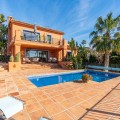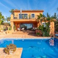 - This wonderful villa on 3 levels, built in a timeless traditional style with the highest construction qualities, is located in one of the most exclusive and peaceful streets of prestigious Marbesa/Marbella, just a short walk from the beach and just a short walk from 5 beach restaurants, 2 super markets @ the 5 star hotel Don Carlos. Set on a generous plot, it offers maximum privacy, security and comfort. Upon entering the property, you are welcomed by a spacious hallway that leads into the impressive and bright living room with fire place, where high ceilings enhance the feeling of space and elegance. The living features a state of the art Italian kitchen and leads onto the large terrace with access to the private heated pool with sea views. Partially covered terrace BBQ area for lovely summer evenings. The kitchen is fully equipped and very practical. The villa combines timeless style with modern comforts such as underfloor heating in all 3 bathrooms, high-quality double walls with insulation. All 3 bathrooms have walk in showers. On the lower level you will find a Spanish bodega, storage room, laundry room, Finnish sauna, open plan tv/games room. large guest bedroom with ensuite bathroom with direct access to the lower terrace Other highlights include several covered terraces perfect for outdoor dining, three parking spaces, 24-hour security within the urbanisation, and advanced alarm systems. A unique property in Marbesa, perfect for those seeking a luxury home within walking distance of the beach, with absolute privacy, yet only minutes from golf courses, restaurants, international schools and Marbella town It also enjoys close proximity to exclusive amenities, fine dining, and international schools. Additionally, it is just eight minutes from the iconic Puerto Banús, 15 minutes from Marbella’s vibrant center, and a 40-minute drive from Málaga International Airport