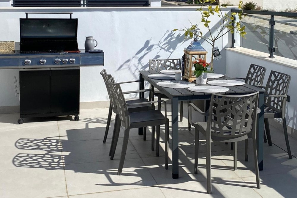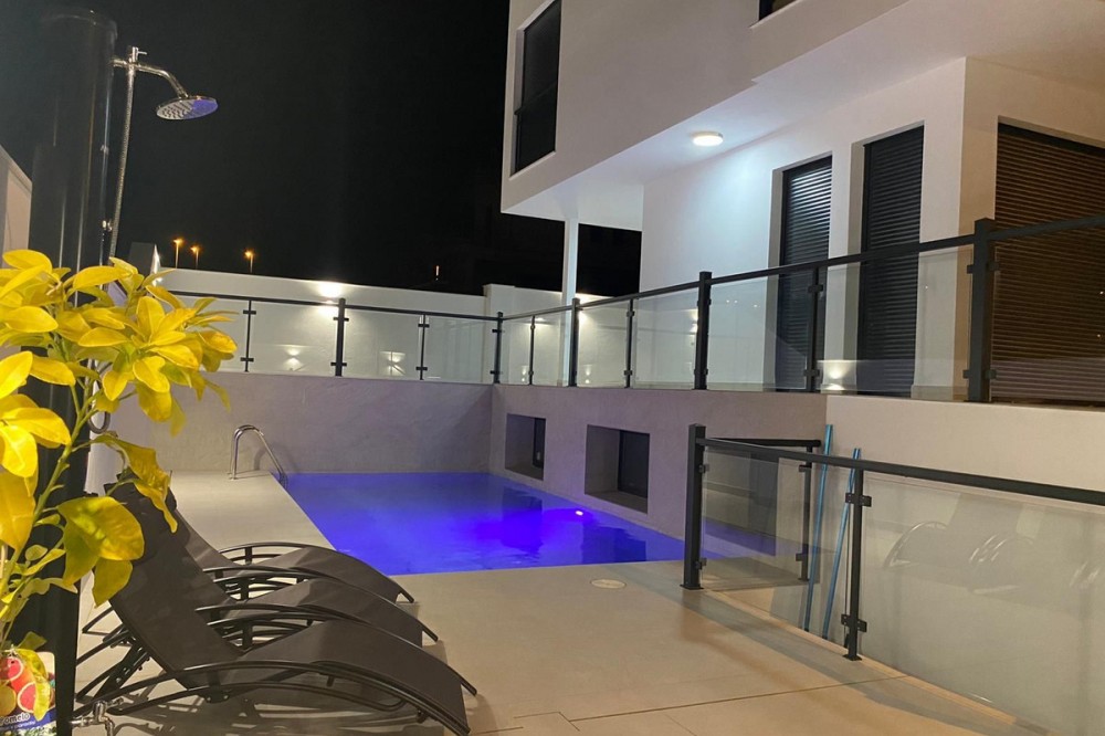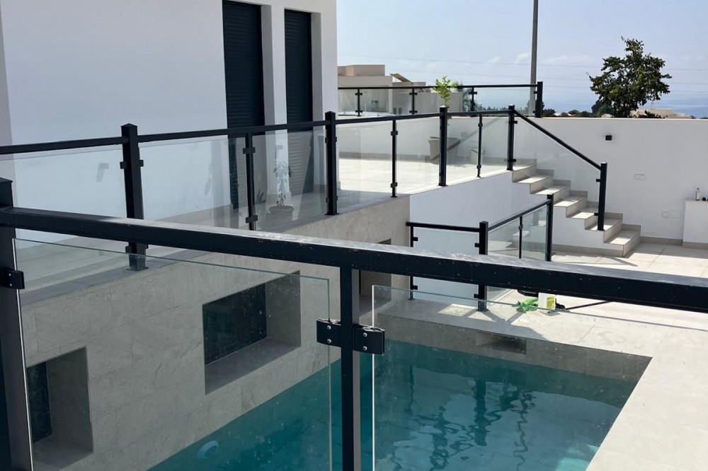 - This elegant modern villa blends clean architectural lines with a warm, comfortable feel, set within a quiet residential area just outside Nerja. From its elevated position, the property enjoys spectacular views of both the sea and surrounding mountains. Offering almost 200 m² of built space over three floors, the villa features three generous bedrooms and three contemporary bathrooms. The interior is light-filled and thoughtfully designed, creating open, inviting spaces ideal for everyday living as well as hosting family and friends. At the top, a spacious rooftop terrace provides the perfect setting to soak up the sun and admire unforgettable Mediterranean sunsets. The main living area is designed with an open-plan concept, seamlessly connecting the lounge, dining space, and fully fitted kitchen. Large doors lead out to expansive terraces, ideal for al fresco dining and relaxation beside the private swimming pool. On the lower level, there is a substantial versatile area currently arranged as a cinema and games room, complete with a full shower room. This space was originally designed to be converted into a self-contained two-bedroom apartment with kitchen and bathroom — plumbing and electrical installations are already in place. In addition, a 20 m² area beneath the front terrace was planned as a gym. Further benefits include two private parking spaces, and the villa is being sold fully furnished. The property also holds a valid tourist licence and generates an annual rental income of approximately €45,000–€50,000, making it an excellent investment opportunity as well as a beautiful home.