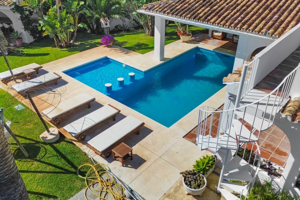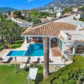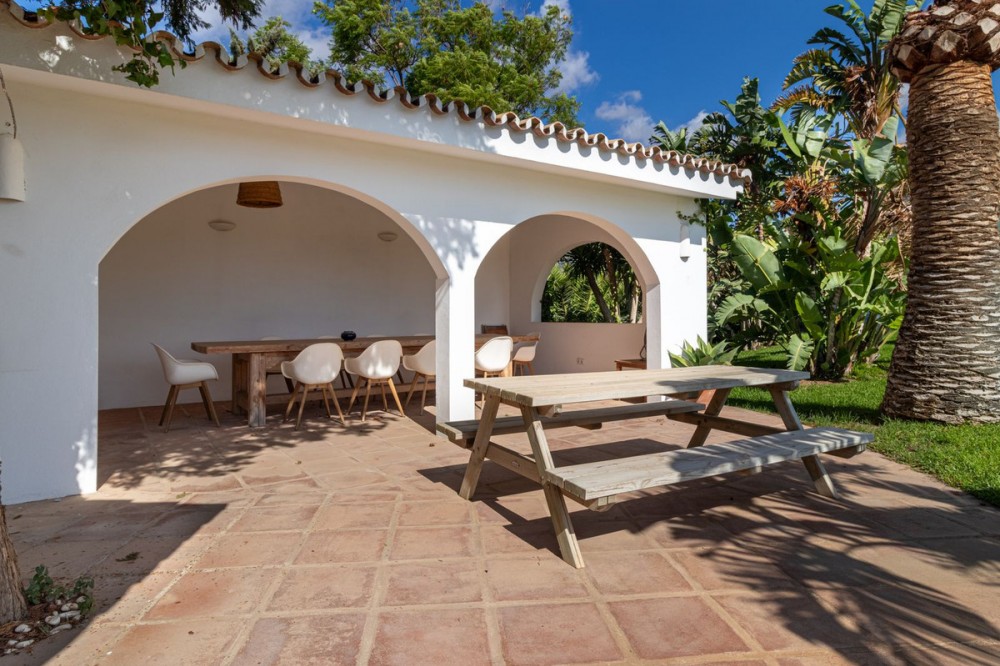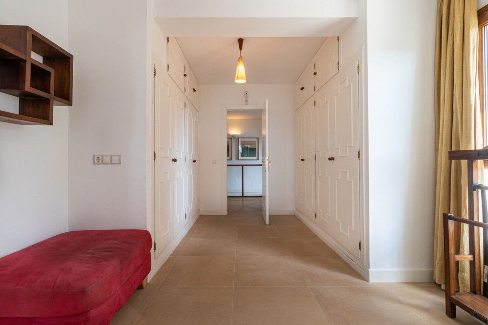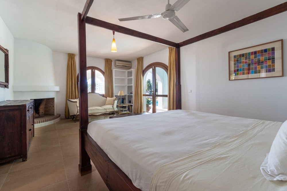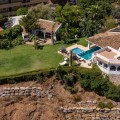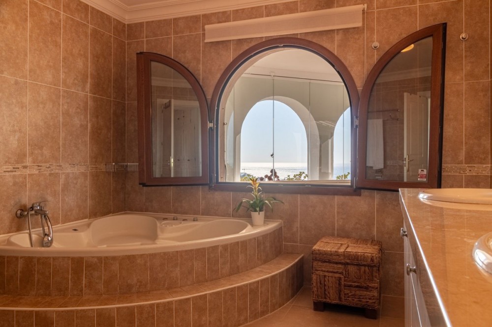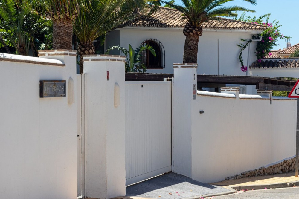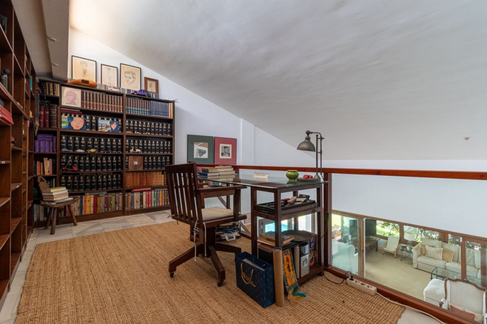 - **Panoramic 6-Bedroom Villa with Protected Green Border & 2,100 m² Plot – El Higuerón / El Majadal** Set in a commanding hilltop position above El Higuerón and El Majadal, this exceptional villa offers the feeling of a private lookout with uninterrupted open views and absolute privacy. Bordering a protected green zone of the Junta de Andalucía to the east—where the Arroyo Zaragoza natural corridor runs—the setting guarantees preserved surroundings that are increasingly rare so close to all services. From the property, enjoy deep panoramic views over the Mediterranean Sea and the mountains of Benalmádena and Mijas. On clear days, the horizon stretches as far as Sierra Nevada and the Sierras of Tejeda, Almijara and Alhama. Thanks to existing view easements over the southern neighboring property, the sea views are structurally protected, reinforcing the long-term value of the asset. Located just 1 km in a straight line from the sea, the villa combines elevation (privacy, breeze, open horizon) with true beach proximity. Only 150 meters away, a scenic pedestrian access connects to Carvajal Beach via “El Sendero del Mar,” a beautiful ~700 m coastal walking route. With 2,100 m² of land and approximately 680 m² built, the scale of the property is uncommon in this consolidated urban area where large plots with privacy and views are increasingly scarce. The layout offers 6 bedrooms, 5 bathrooms and 2 guest toilets distributed over two levels, with the main living areas designed for comfortable single-level living. **Main Floor** Entrance hall, guest toilet, master suite with walk-in wardrobe, fireplace and en-suite bathroom; open kitchen with dining area; additional en-suite bedroom; spacious double-height living room with large fireplace and library; separate sitting room; laundry and pantry area. **Lower Floor** Entrance hall, storage room, en-suite bedroom, two additional bedrooms sharing a bathroom, 90 m² multi-purpose room (cinema, gym, etc.), and a guest apartment with en-suite bathroom and kitchenette. The design allows full day-to-day living on the main floor—ideal for comfort and reduced mobility—while the lower level can function independently for guests, family members or staff. **Outdoor Areas** Multiple terraces, interior patio with fountain and mature citrus trees, glazed porch with panoramic sunrise views year-round, summer dining area for up to 14 guests with outdoor kitchen and guest toilet. A separate 35 m² garden studio (currently used as a yoga room) sits within a 230 m² garden area and has independent street access—ideal as an office or creative space. The mature garden features species over 40 years old. Covered parking for 5 vehicles. There is also the possibility to build a rooftop structure in the solarium area, creating a potential 360° panoramic experience including views towards Fuengirola and Marbella. An additional 500 m² plot with 135 m² buildability plus terraces can be acquired separately, with access from Calle Águila or directly from the main property. This offers expansion potential or use as a guest house, large covered carport (for collectors or large vehicles), gym or storage. Alternatively, the buildability could be transferred to the main 2,100 m² plot, increasing total potential to approximately 2,600 m² of land. A rare opportunity to secure a private, structurally protected panoramic estate in one of the most connected yet naturally preserved areas of the Costa del Sol.