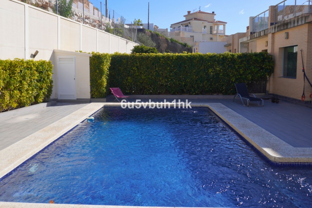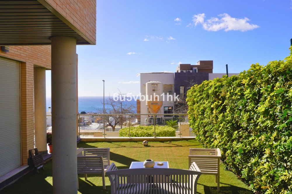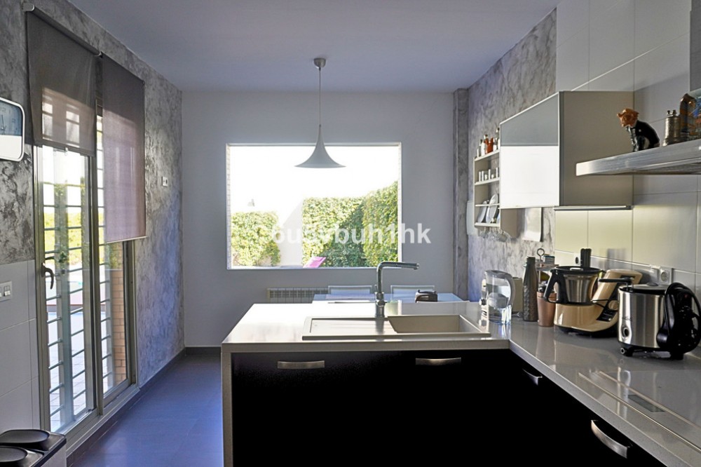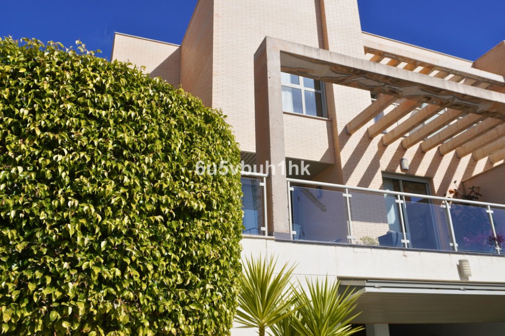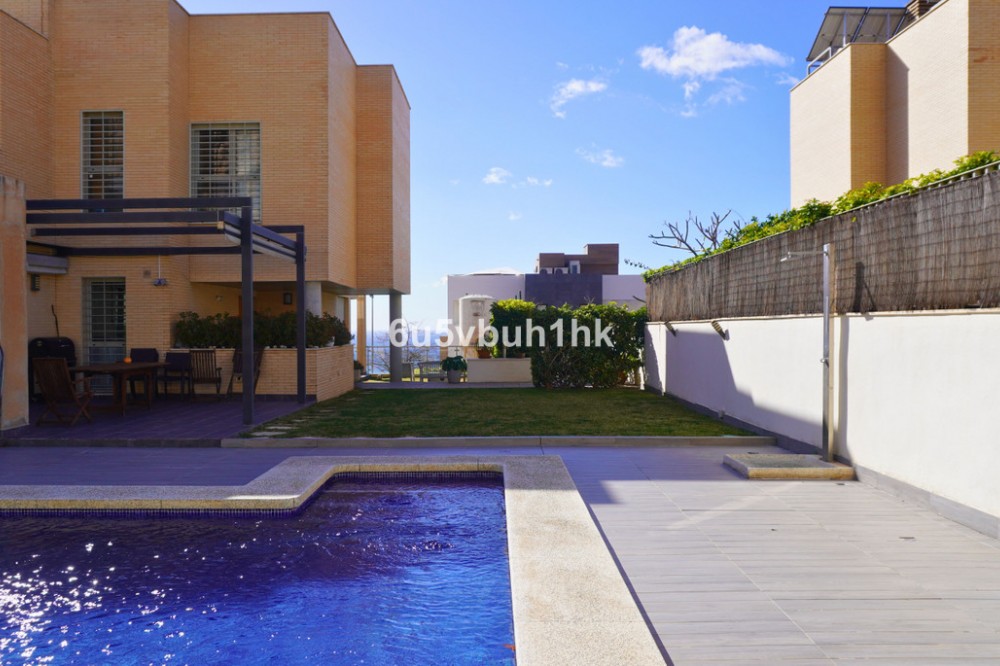 - Located in one of the most sought-after residential areas of East Málaga, Hacienda Paredes, this property perfectly combines tranquility, spaciousness, and excellent connections to the rest of the city. Ideal for families, it sits next to the A-7 motorway access, just 10 minutes from the beach, and close to prestigious international schools, the León XIII Sports Club, and the commercial areas of Cerrado de Calderón. The home is distributed over three floors and can be accessed directly from street level either through a large private garage or via an exterior staircase leading to the main entrance. Upon entering, a spacious hallway opens into a bright living-dining room with access to a large terrace overlooking the sea. Its south-facing orientation ensures abundant natural light throughout the day and allows full enjoyment of the outdoor garden area. On this same level there is a generous kitchen with breakfast area and utility room, with direct access to a pleasant covered porch, private garden, and swimming pool, ideal for enjoying Málaga’s climate all year round. The upper floor features four bedrooms (one currently used as an office) and three en-suite bathrooms. The master bedroom stands out for its size, walk-in wardrobe, private bathroom, and spectacular sea views. All bedrooms include built-in wardrobes, and three of them also have their own private terrace. The lower level offers 101 m² built, mainly dedicated to a closed garage with space for two vehicles and direct access to the house. This floor also includes a semi-basement area with a staff bedroom and full bathroom, two storage rooms, and a lift connecting all levels. Additionally, there is exterior parking space for two more cars. The property is equipped with central gas heating via radiators and full hot/cold air conditioning throughout. Outside, a well-maintained garden with private swimming pool and a cozy pergola-covered porch next to the kitchen create the perfect setting for entertaining, relaxing, and enjoying outdoor living.