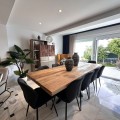 - Located in one of the most charming and peaceful areas of Benalmádena Pueblo, this elegant townhouse offers privacy, natural light and breathtaking Mediterranean sea views. The property is distributed over two comfortable levels and is ideal as a permanent residence, holiday home, or investment on the Costa del Sol. Main Floor Upon entering, you are welcomed by a spacious and bright open-plan living and dining area, perfect for entertaining or relaxing in total comfort. Large sliding doors connect the interior with a generous private patio, ideal for al fresco dining or creating a chill-out space. The modern open-plan kitchen has been completely renovated with a contemporary design and high-quality finishes, ready to move in. This level also includes a guest bathroom. Upper Floor Upstairs, the property features: Two spacious double bedrooms with built-in wardrobes A full bathroom An impressive walk-in dressing room, the size of an additional bedroom From this level, you access the upper terrace, where you can enjoy spectacular open views of the Mediterranean Sea — a perfect setting for morning coffee or sunset evenings. Additional Features Outdoor private parking space Beautiful communal swimming pool Very quiet residential area Excellent natural light throughout the day This home combines Andalusian charm with modern comfort in a serene environment, just minutes from the village center, beaches, and Málaga airport. A unique opportunity to own a sea-view property in one of the most sought-after locations on the Costa del Sol. For further information or to arrange a private viewing, please contact us.