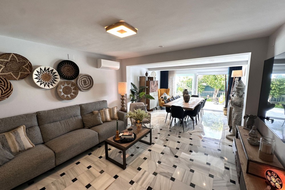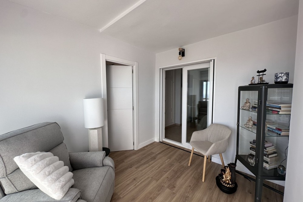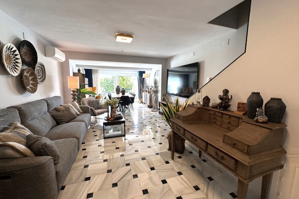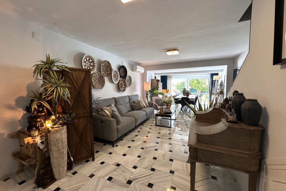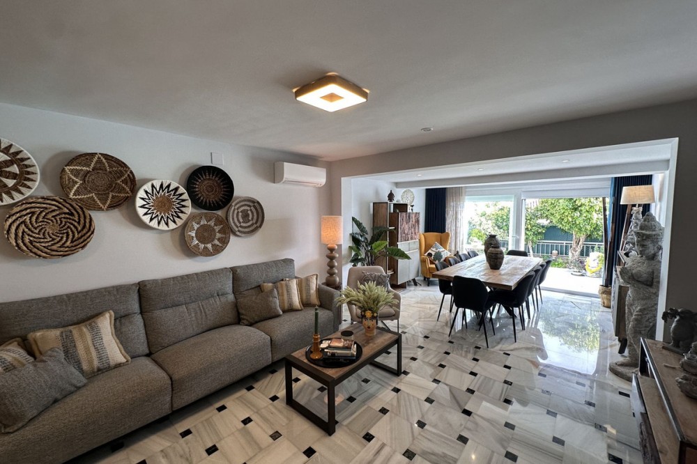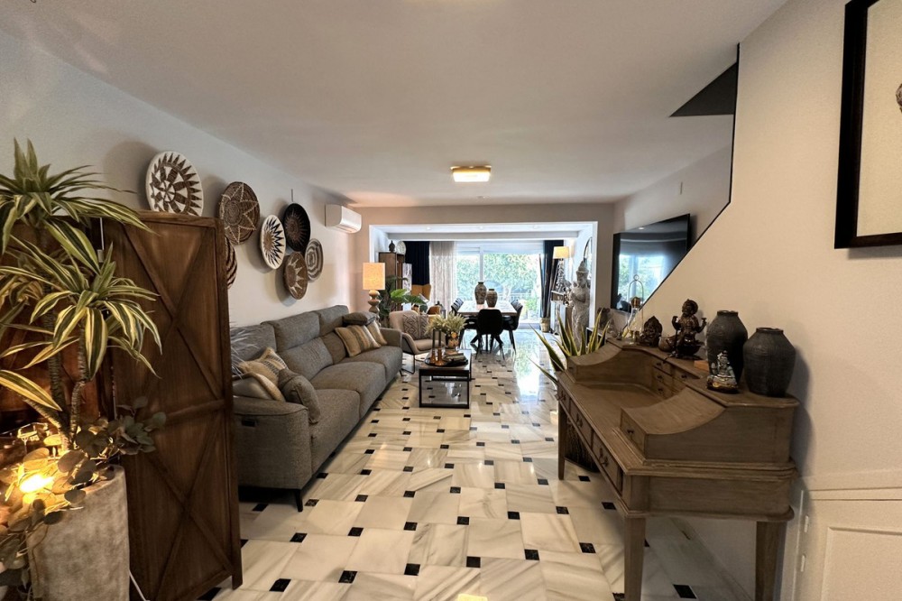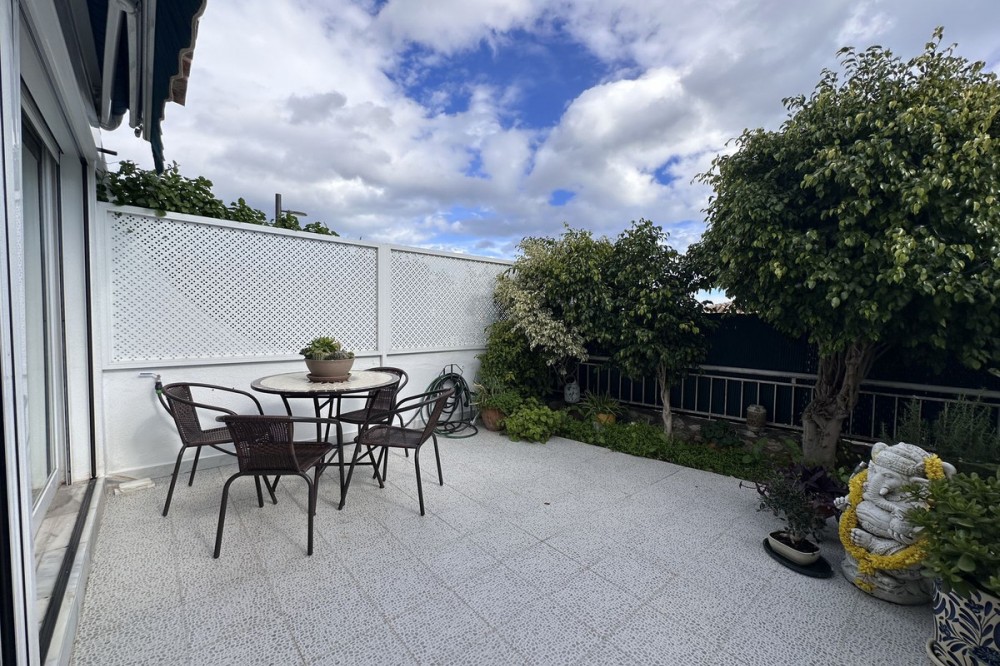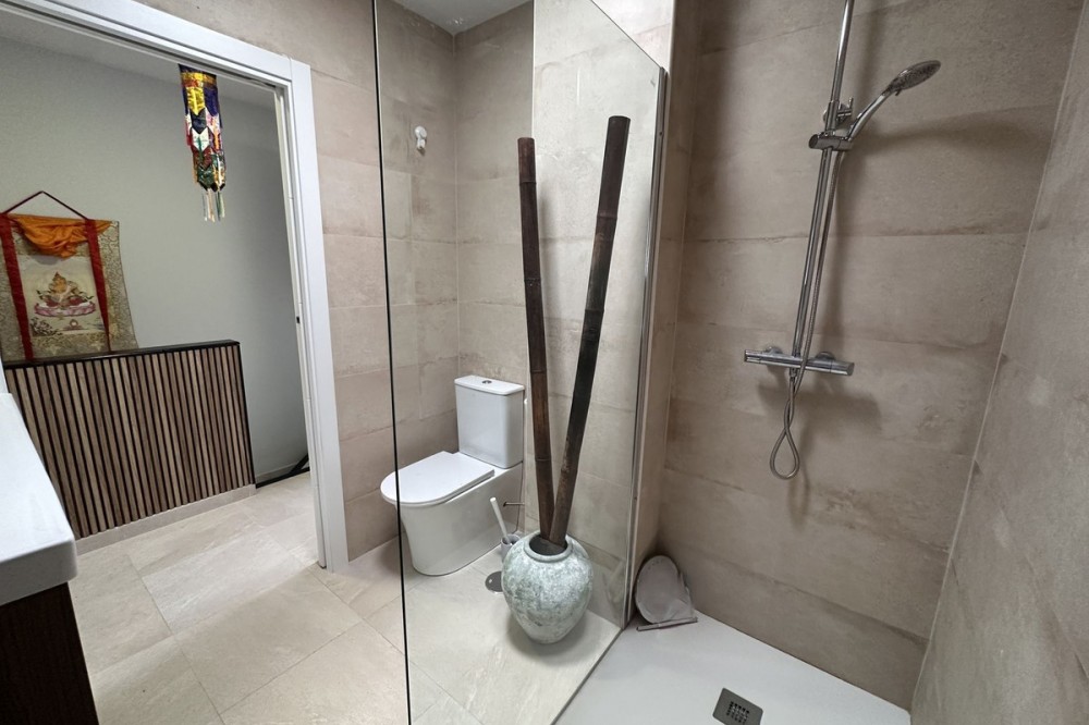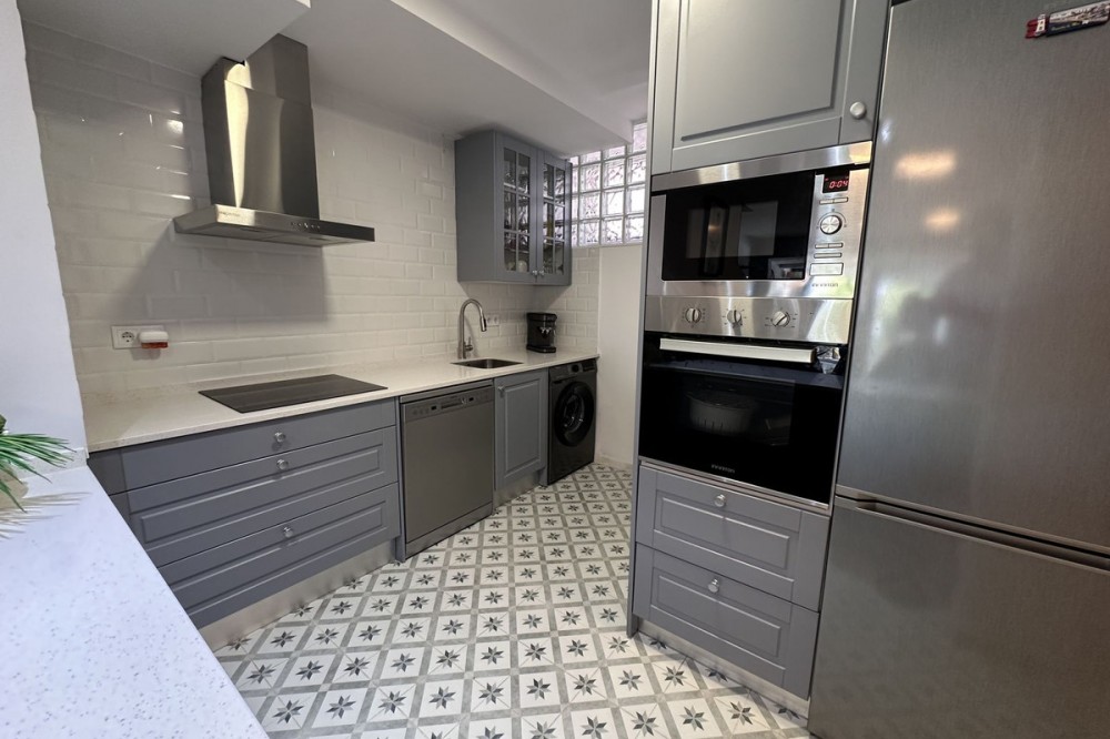 - Located in one of the most charming and peaceful areas of Benalmádena Pueblo, this elegant townhouse offers privacy, natural light and breathtaking Mediterranean sea views. The property is distributed over two comfortable levels and is ideal as a permanent residence, holiday home, or investment on the Costa del Sol. Main Floor Upon entering, you are welcomed by a spacious and bright open-plan living and dining area, perfect for entertaining or relaxing in total comfort. Large sliding doors connect the interior with a generous private patio, ideal for al fresco dining or creating a chill-out space. The modern open-plan kitchen has been completely renovated with a contemporary design and high-quality finishes, ready to move in. This level also includes a guest bathroom. Upper Floor Upstairs, the property features: Two spacious double bedrooms with built-in wardrobes A full bathroom An impressive walk-in dressing room, the size of an additional bedroom From this level, you access the upper terrace, where you can enjoy spectacular open views of the Mediterranean Sea — a perfect setting for morning coffee or sunset evenings. Additional Features Outdoor private parking space Beautiful communal swimming pool Very quiet residential area Excellent natural light throughout the day This home combines Andalusian charm with modern comfort in a serene environment, just minutes from the village center, beaches, and Málaga airport. A unique opportunity to own a sea-view property in one of the most sought-after locations on the Costa del Sol. For further information or to arrange a private viewing, please contact us.