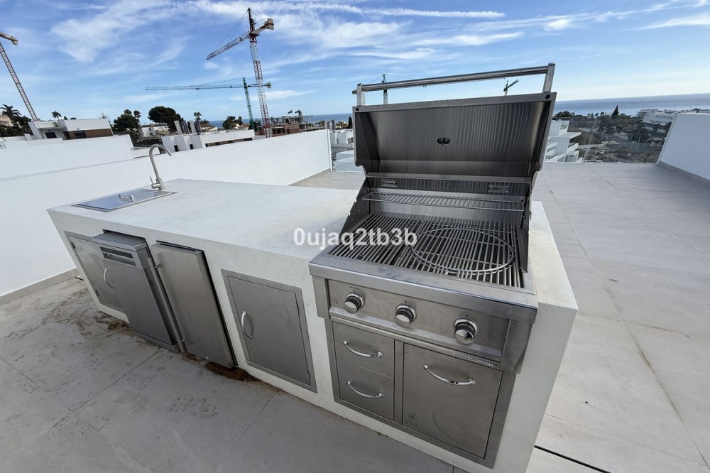 - Penthouse, Estepona, Costa del Sol. 2 Bedrooms, 2 Bathrooms, Built 150 m², Terrace 134 m². Setting : Close To Shops, Close To Sea, Close To Schools, Urbanisation. Orientation : South West. Condition : Excellent. Pool : Communal, Private. Climate Control : Air Conditioning, Hot A/C, Cold A/C. Views : Sea, Mountain, Garden, Pool. Features : Covered Terrace, Lift, Fitted Wardrobes, Private Terrace, Solarium, Storage Room, Ensuite Bathroom, Access for people with reduced mobility. Furniture : Not Furnished. Kitchen : Fully Fitted. Garden : Communal. Security : Alarm System. Parking : Underground. Utilities : Electricity, Drinkable Water. Category : Luxury.