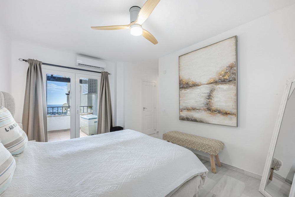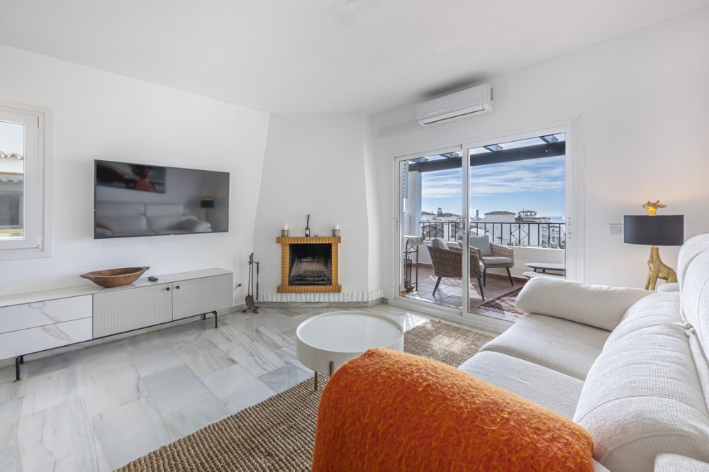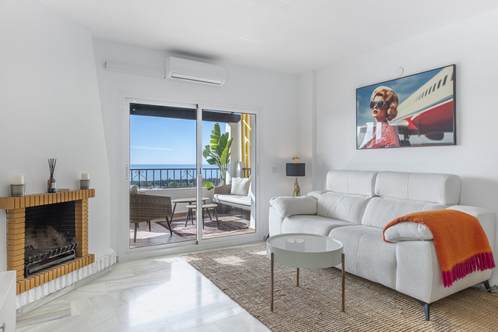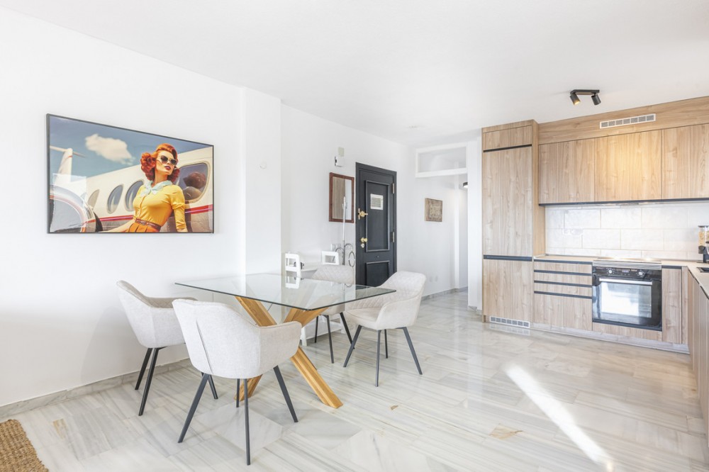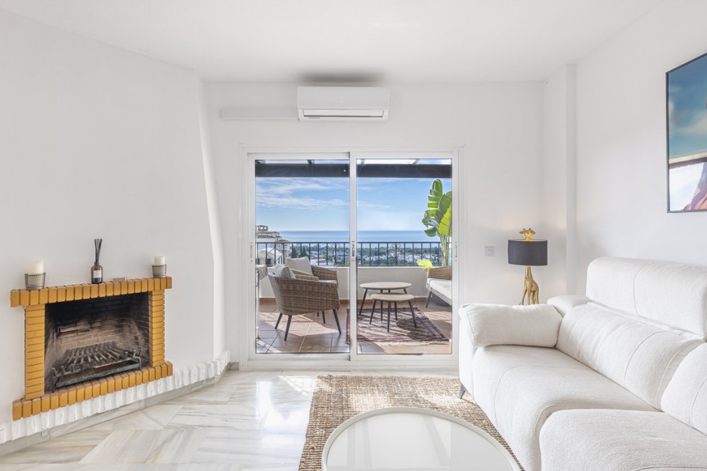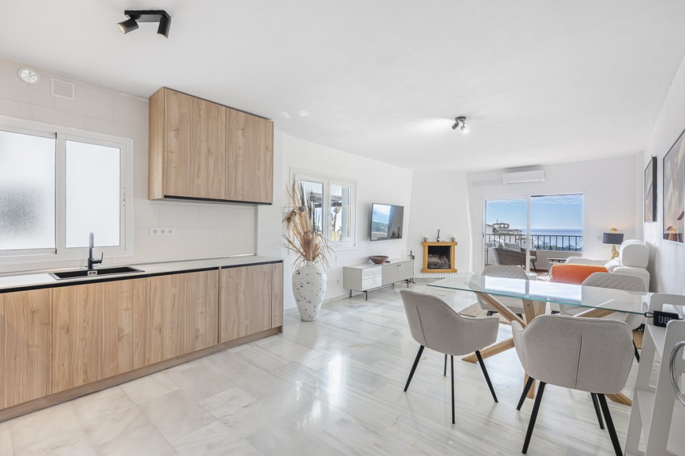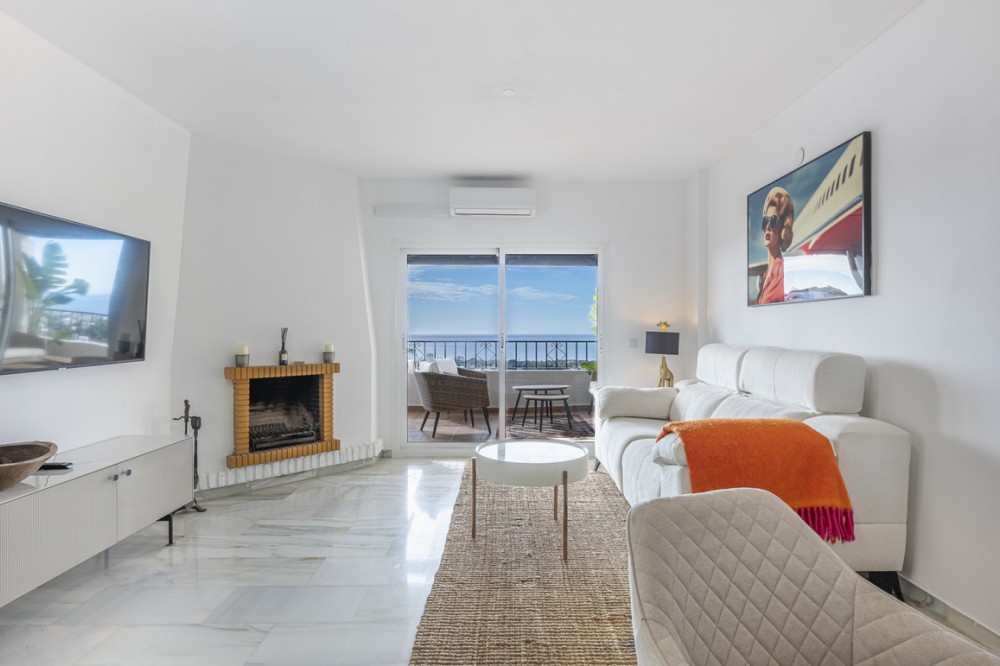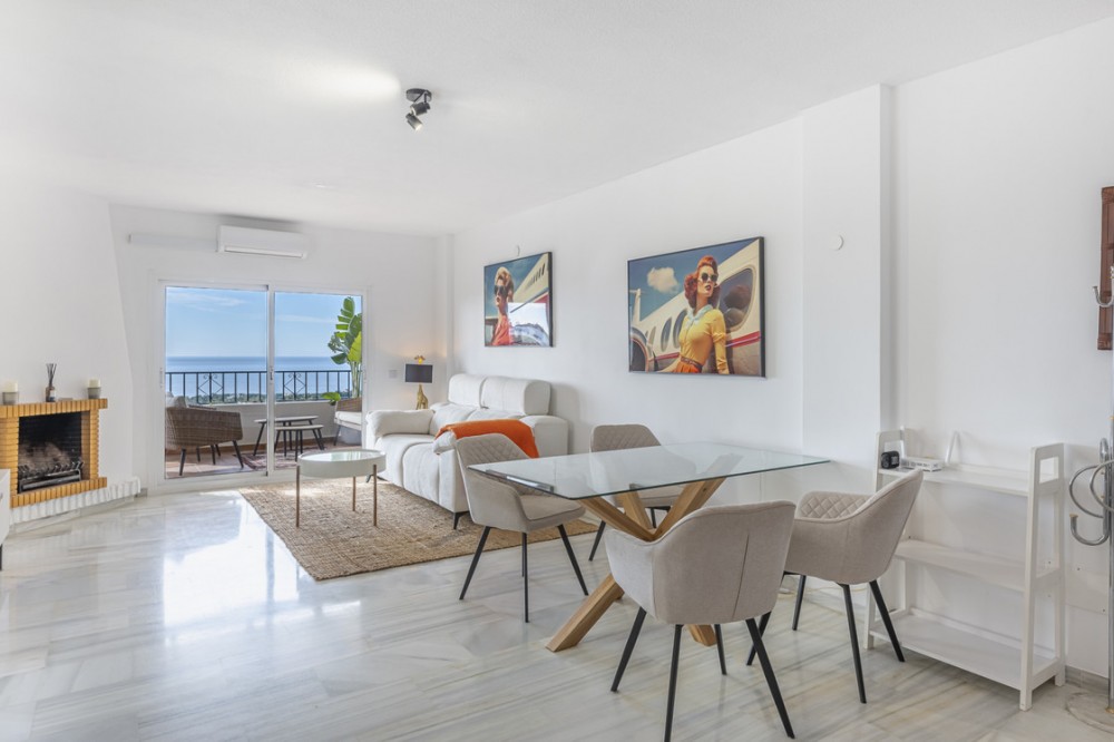 - Sea views are the first thing you notice here. Open, wide, uninterrupted views across the Mediterranean from your own south-facing terrace in Sitio de Calahonda, Mijas. This modern, fully refurbished apartment offers 112 m² of built-up area and is set in a well-established residential complex, close to everything you need. You can walk to bars, restaurants, a golf and tennis club, public transport and even a dog park. The beach is just a four-minute drive away. The AP-7 motorway connection is also minutes from your door, giving you fast access along the coast. Marbella centre is around 20 minutes by car, and Puerto Banús is within easy reach for shopping, dining and nightlife. Several international schools, supermarkets, medical centres and sports facilities are close by, making this a practical choice for both full-time living and holidays. This modern apartment on the Costa del Sol has strong rental and lifestyle appeal. Inside, the property is bright and well laid out. The living and dining area is open plan and filled with natural light. Large doors lead directly to the south-facing terrace, so the sea becomes part of your everyday view. There is a fireplace in the living room, adding warmth and character in the cooler months. The kitchen is modern and open to the main living space, making it easy to cook and entertain simultaneously. The apartment has two generous double bedrooms and two bathrooms. The master bedroom includes a private ensuite bathroom and its own terrace with uninterrupted sea views, a quiet spot for morning coffee or evening sunsets. The second bedroom is also a good size and is ideal for guests, family or a home office. Air conditioning is installed for year-round comfort. The community is well maintained, and offers landscaped communal gardens, a large outdoor swimming pool and a covered, heated indoor pool, so you can swim in any season. Sitio de Calahonda is a popular residential area between Marbella and Fuengirola. It offers a relaxed coastal lifestyle with easy access to the A-7 coast road and AP-7 motorway. You are well connected to Málaga Airport and the wider Costa del Sol. International schools, supermarkets, fitness centres and medical facilities are all close by. Golf lovers have several courses nearby, and the beach is only minutes away for swimming, walking or watersports. Puerto Banús and Marbella are a short drive if you want designer shopping, beach clubs or fine dining. At the same time, Calahonda has its own local community feel with everyday services within walking distance. This is a practical location for families, investors, and anyone looking for a sea-view property close to the beach and key amenities on the Costa del Sol.