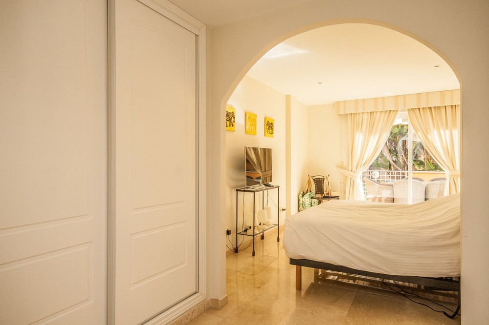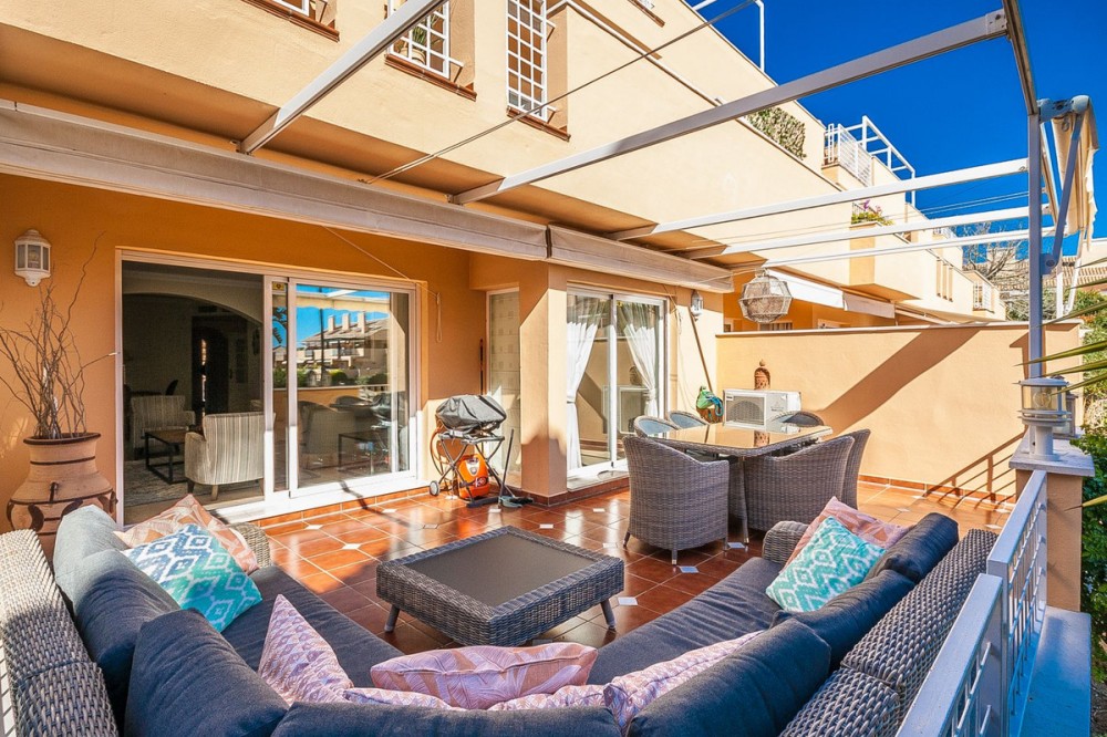 - Beautiful Ground Floor Apartment in Elviria, Costa del Sol. Discover this exceptional ground floor apartment located in the sought-after area of Elviria, perfectly positioned within a secure and well-maintained urbanisation. Offering 131 m² of built space plus a generous 35 m² private terrace, this property combines comfort, style, and an unbeatable location. The apartment features three spacious bedrooms and two modern bathrooms, including a master bedroom with an en-suite bathroom. Designed for comfortable living, it boasts marble flooring, fitted wardrobes, double glazing, and excellent overall condition throughout. The bright south-east orientation allows for plenty of natural light, while the private terrace offers lovely views over the communal gardens and pool — an ideal space for relaxing or entertaining. The fully equipped home also includes air conditioning with hot and cold settings, a utility room, storage room, and convenient access to underground private parking and a garage. Located close to golf courses, shops, the beach, and schools, and with easy access to transport links, this property is perfectly suited as a permanent residence, holiday home, or investment opportunity. Set within a gated complex with 24-hour security and a beautiful communal pool area, this apartment offers both peace of mind and a high-quality Mediterranean lifestyle.
