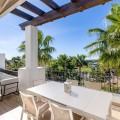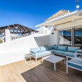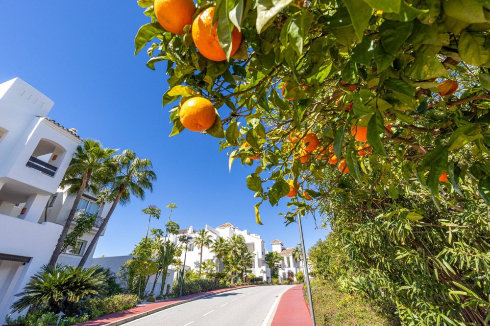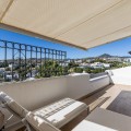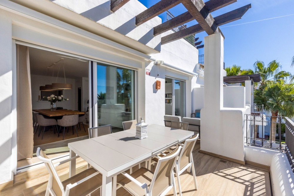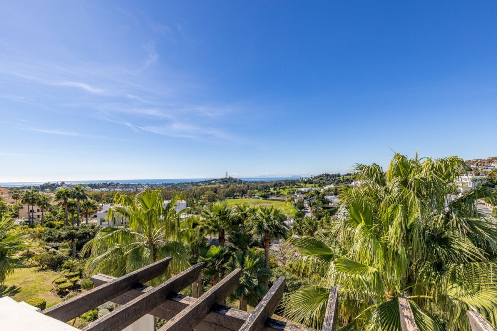 - Renovated 3-bedroom duplex penthouse in exclusive gated community with sea & golf views in Marbella - Benahavis * Highlights - Located in an exclusive gated community with permanent surveillance for complete peace of mind. - This beautifully renovated 3-bedroom duplex penthouse offers intimacy and comfort. - The property enjoys a southwest orientation, ensuring abundant natural light throughout the day and stunning sunsets. - Perched in an elevated position, the property enjoys stunning views of the Mediterranean and La Concha, framed by abundant palm trees, providing a tranquil setting with complete privacy. - Move-in ready. * The location The residence is situated in the golden triangle of Marbella - Benahavis - Estepona. Set in a prime location with essential amenities just a short stroll away, including the International Atalaya College and Marbella Montessori School. The area also offers a Mercadona supermarket, a forthcoming commercial centre, and the renowned 2 × 18-hole Atalaya Golf Course & Country Club, home to the PG Golf Academy and its advanced TrackMan Driving Range. Ideally located just a 5-to-10-minute drive from the beach, and moments from the vibrant elegance of San Pedro, and the glamour of Puerto Banús, and Marbella. * The complex Situated within a secure, gated complex offering 24-hour surveillance. Set amidst 28,000 m² of beautifully landscaped tropical gardens, creating a resort-like atmosphere. Residents can enjoy two stylish swimming pools. A fully equipped, private gym is available exclusively for residents. The entire complex was freshly painted in 2025. * The penthouse A generous open-plan living and dining area, part of a fully renovated penthouse, uniquely designed as the only residence in the complex with this exclusive layout. Fully equipped contemporary kitchen featuring Bosch appliances. Separate utility room with washer, dryer and additional storage space. 3 generously proportioned bedrooms, (One bedroom, currently utilized as an office, offers flexible living options) 2 full bathrooms and an additional guest toilet. Built-in wardrobes offering plenty of storage. Central Air conditioning providing both cooling and heating throughout. 2 underground parking spaces. 2 private underground storage rooms. - In figures : Total built area: 225m² Interior built area: 180m² (after renovation) Terrace area: 45m² (after renovation) Bedrooms: 3 Bathrooms: 2 Guest toilet: 1 2 Underground parking spaces: 18m² + 14m2 2 Storage rooms: 13m2 + 10m2 - Other features: Utility room equipped with a washing machine, dryer, and a new boiler. Recent air conditioning system providing cooling and heating throughout. Underfloor heating in the bathroom on the lower level for added comfort. Double-glazed windows ensuring thermal efficiency and sound insulation. Elegant marble flooring throughout most of the property. Spacious built-in wardrobes in all bedrooms. Electric awnings and blinds on both levels. Mosquito screens installed for added convenience. Furniture package – negotiable This penthouse represents an exceptional opportunity as a primary residence, a luxury holiday home, or a high-quality investment, combining generous living space, security, and resort-style amenities in one of the most sought-after locations in Marbella.