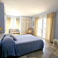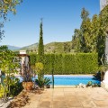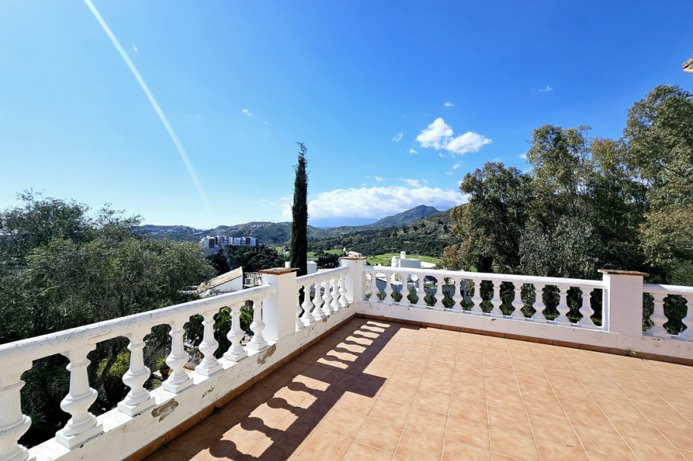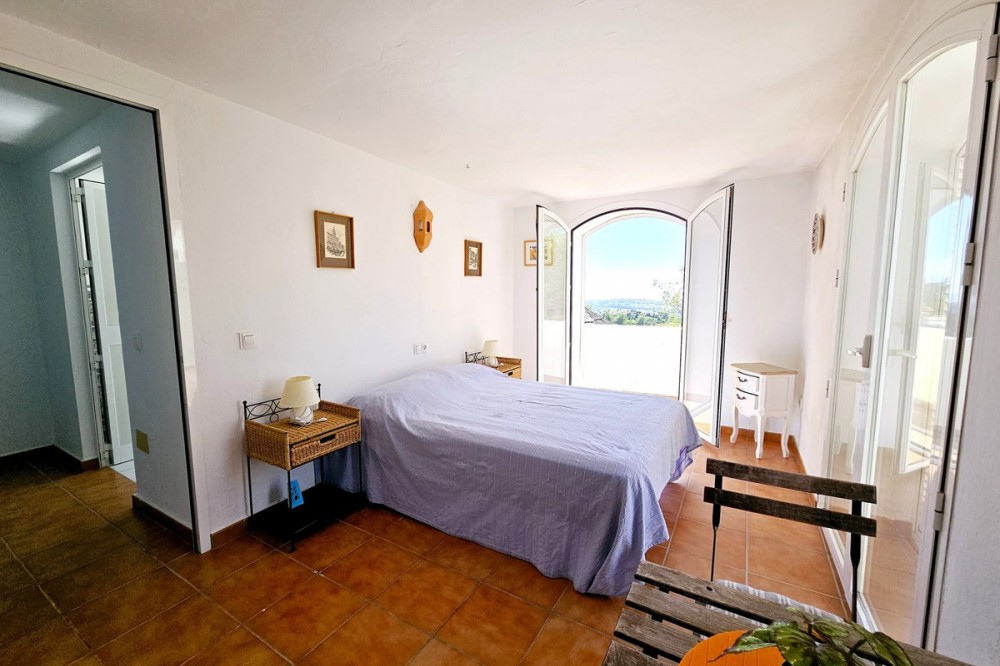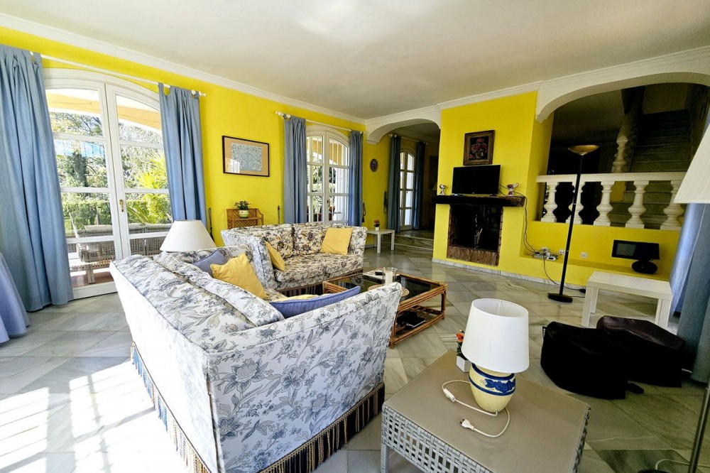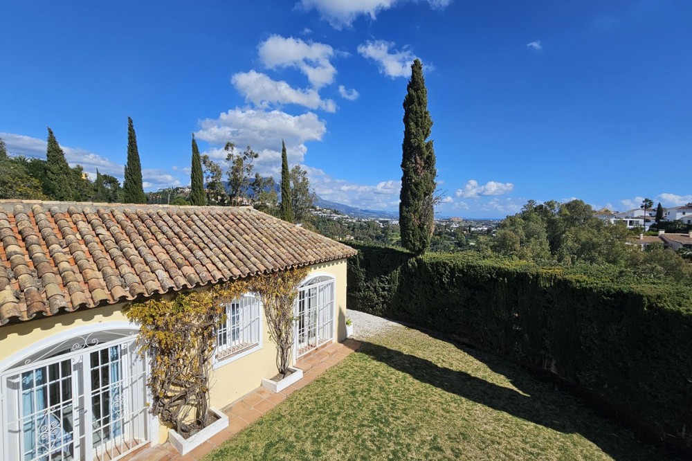 - This charming 5 bedroom Andalucian villa is nestled in the exclusive enclave of Puerto de Los Almendros in Benahavis, surrounded by nature but still close to schools, supermarkets and town.. The property has been a much loved family home for over 4 decades, offering privacy, plenty of open space, the most beautiful South West facing panoramic views across the coast and independent guest or staff accommodation. Built in 1982 this home is a true reflection of Andalucian architecture with traditional features including terracotta tiled roofing, marble flooring, authentic Andalucian wall tiles, large fireplace, a stone driveway, and the most beautiful double sized wooden front door. Whilst offering authentic Andalucian charm, the house would benefit from a refurbishment to take it on for the next 40 years. The main house is built over two floors. You are greeted by a lovely entrance hall, with an oversized double aspect fireplace, that gives way to a sunken level sitting room with multiple terrace doors opening up to the pool, terrace and garden area. On this ground level you will also find the kitchen with direct access to the covered terrace and garage, as well as two large bedrooms sharing a Jack and Jill bathroom. Both of these bedrooms are bright with plenty of natural light thanks to their independent access to the gardens. Upstairs is a very large master bedroom with ensuite bathroom, plenty of wardrobe space and private terrace with beautiful open views across the coastline. At the end of the garden is an independent 2 bedroom guest house with kitchenette, bathroom and terrace. This separate accommodation is perfect for teenagers, guests or staff, and significantly increases the property's flexibility and potential income should this home be bought for rental investment. The gardens and lawn are easily maintained and peppered with olive trees, cypress trees and bougainvillea, while the west facing pool area offers a pergola with BBQ area and covered terrace overlooking the pool and gardens. There is a garage with direct access to the kitchen and parking for a further 4 or 5 cars on the driveway. This home represents an outstanding opportunity in a location that sees few houses come on to the market. Due to its size, orientation and layout, this house would make an ideal family home, a premium rental investment, or a combination of both for the client looking for a holiday home with solid rental potential. San Pedro town is just over 5 mins away, the closest supermarket is under 5 mins away. Malaga airport is only 45 mins away.