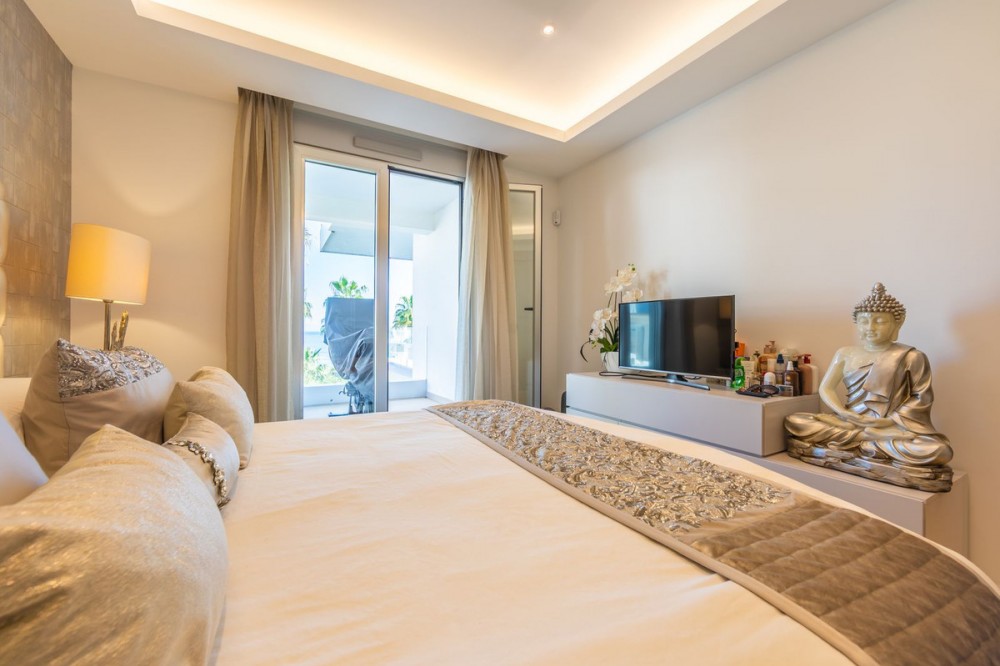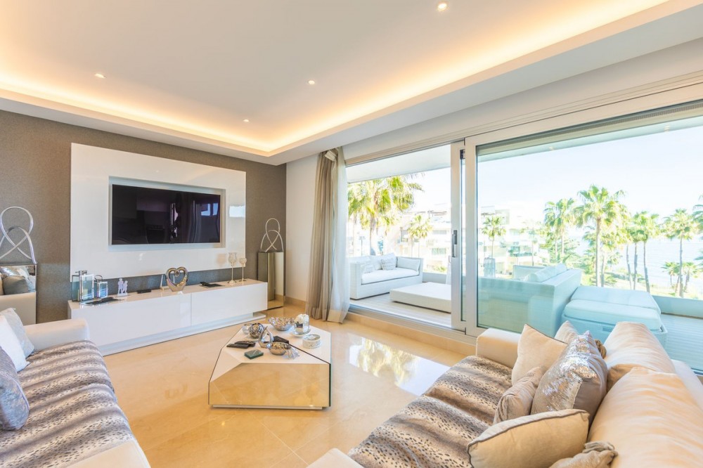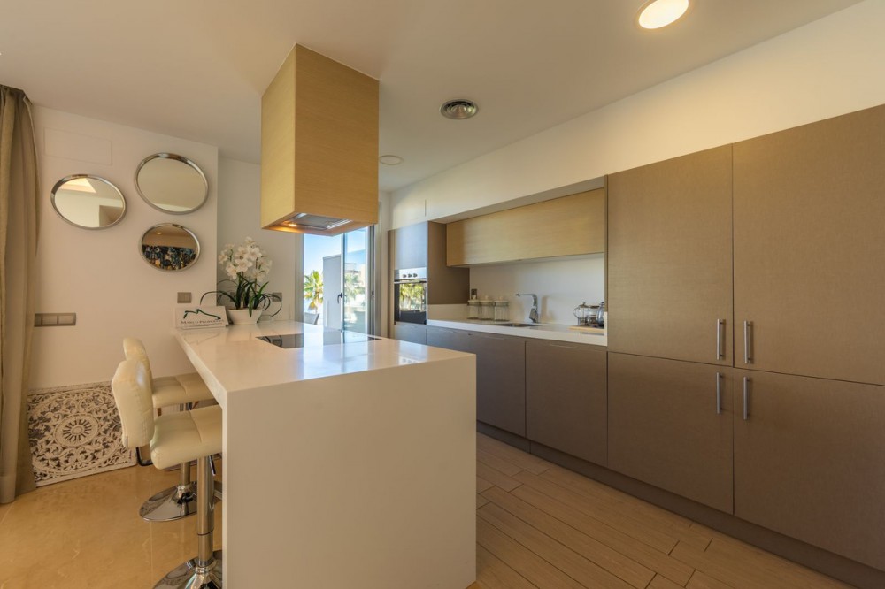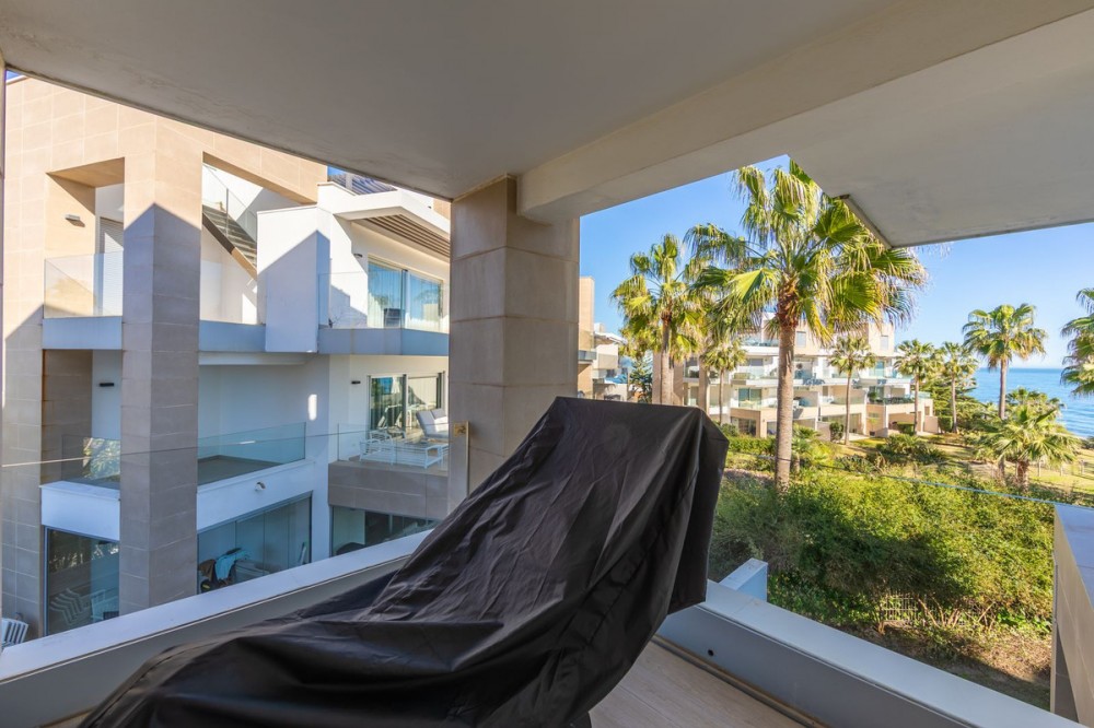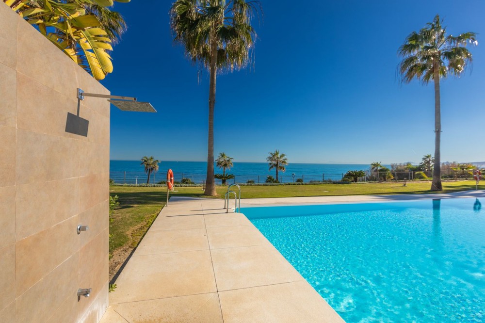 - Modern-style apartment located on the beachfront, offering stunning sea views from which to enjoy spectacular sunrises, situated in the magnificent Horizon Beach development and built by the prestigious developer Taylor Wimpey, renowned for its contemporary design and high-quality finishes. The impeccably maintained community provides direct beach access, lush Mediterranean gardens, and an elegant heated outdoor pool for year-round enjoyment, along with refined communal areas designed for relaxation, featuring comfortable loungers and a spacious covered terrace in a privileged setting. Just a 5-minute drive from the center of Estepona and Puerto de la Duquesa, with all services close at hand, it includes a convenient underground parking space and a large storage room located right in front of the parking, making it an excellent beachfront opportunity that must be seen.