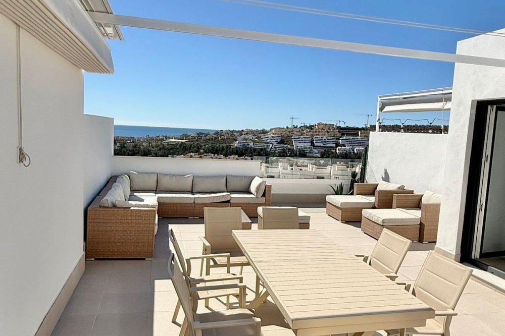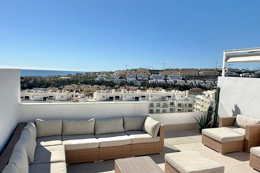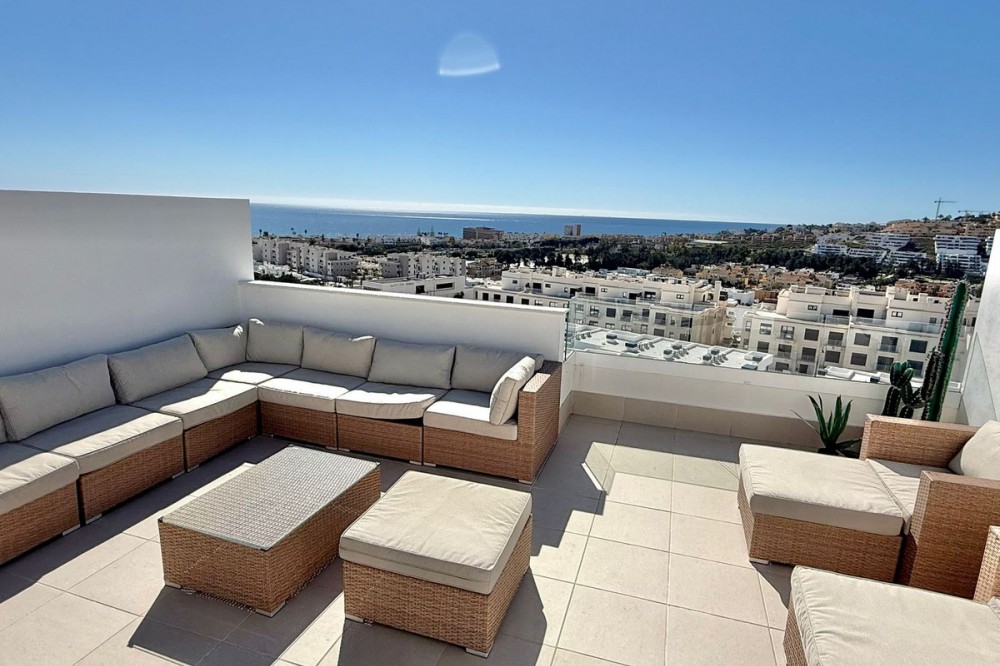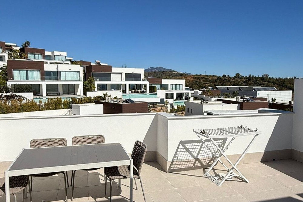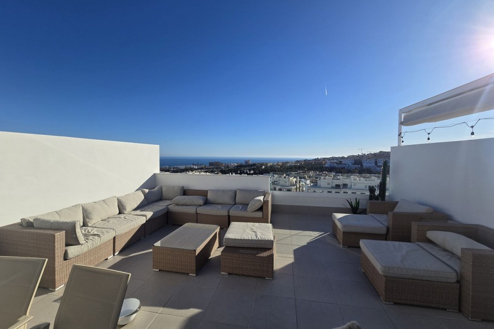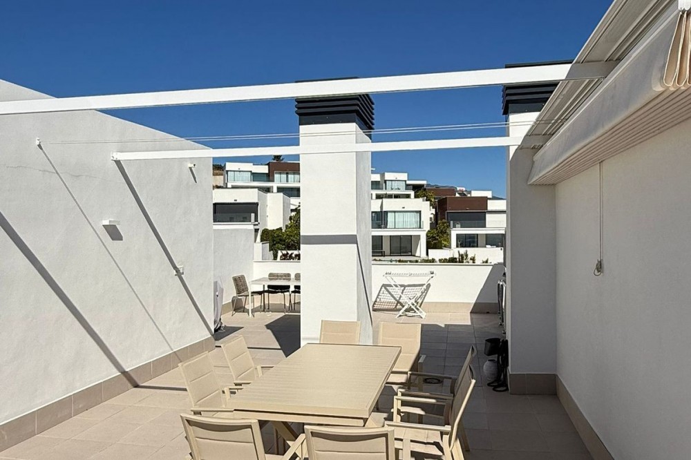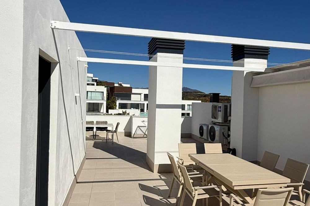 - La Cala de Mijas – Exquisite 4‑Bedroom Contemporary Townhouse with Panoramic Sea Views A rare opportunity to acquire an exceptional 4‑bedroom townhouse in one of La Cala de Mijas’ most desirable locations. With 230 m² of beautifully designed living space spread across three elegant levels, this residence blends modern sophistication with Mediterranean charm. A Refined Entrance & Elegant Living Spaces Elevated above its private parking area, the home welcomes you into a bright, open‑concept living and dining area, seamlessly connected to a designer kitchen and guest bathroom. Floor‑to‑ceiling windows frame breathtaking views of the Mediterranean, Gibraltar, and the African coastline, while opening onto a generous terrace and private garden—perfect for alfresco dining and sunset relaxation. Serene Bedrooms & Spa‑Inspired Bathrooms The first floor hosts four spacious bedrooms and two luxurious bathrooms. The master suite features an elegant ensuite bathroom, while both bathrooms include underfloor heating for year‑round comfort. Spectacular Rooftop Solarium The crown jewel of this property is the expansive rooftop solarium—an extraordinary space designed for entertaining and unwinding. With a built‑in BBQ, dining area, generous lounge seating, and uninterrupted sea views, it offers the perfect setting for gatherings under the stars. The layout also allows for the installation of a private jacuzzi, elevating the experience even further. Versatile Lower Level The lower level provides a large storage and utility room with natural light, offering the potential to create an additional bedroom, games room, cinema room, or private gym. Exclusive Community Amenities Set within a secure, gated urbanisation, residents enjoy access to premium facilities, including: - Concierge service - Stylish social lounge with TV, pool table, kitchen, and seating - Fully equipped gym - Luxurious spa with sauna, steam room, jacuzzi, showers, and changing rooms Prime Coastal Location Ideally positioned within walking distance of the beach and the vibrant village of La Cala de Mijas, the property is surrounded by restaurants, cafés, shops, schools, golf courses, and excellent transport links. Málaga Airport is just 25 minutes away, and Marbella’s world‑famous lifestyle is less than a 20‑minute drive. This exceptional home offers the perfect blend of luxury, comfort, and convenience—ideal as a holiday retreat, full‑time residence, or high‑yield rental investment.