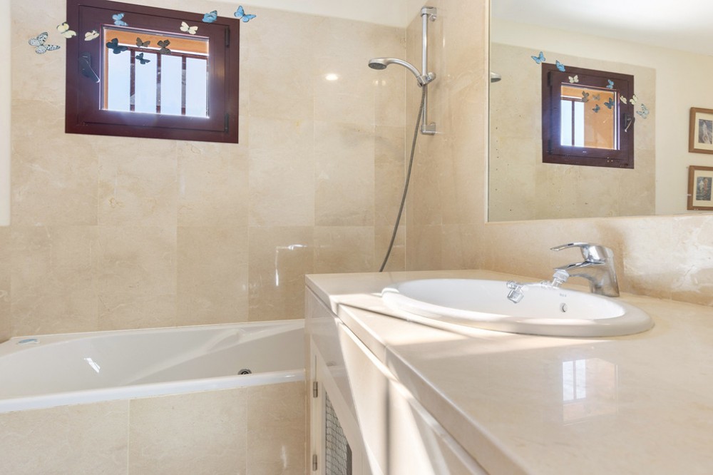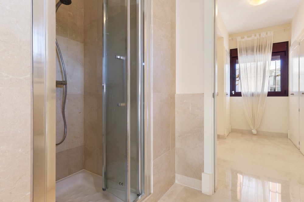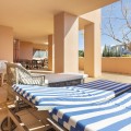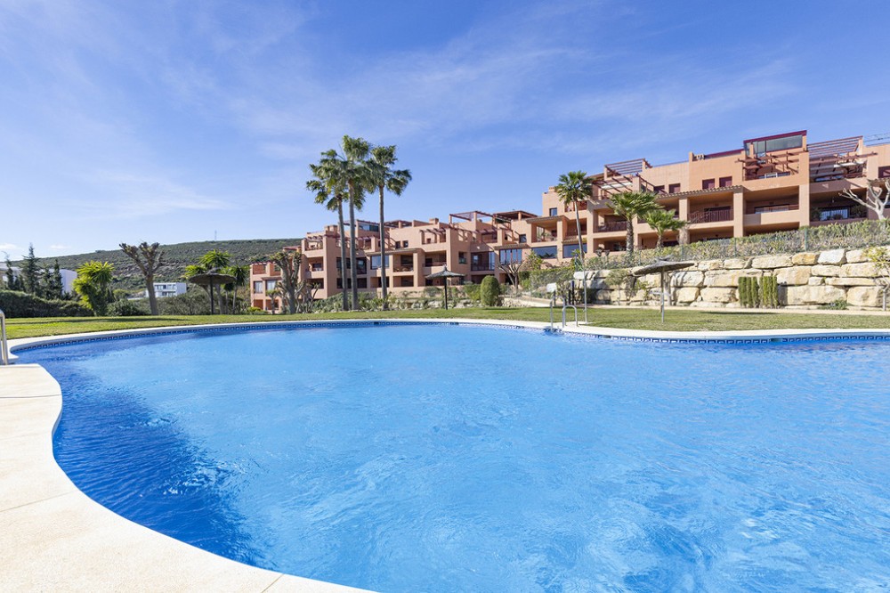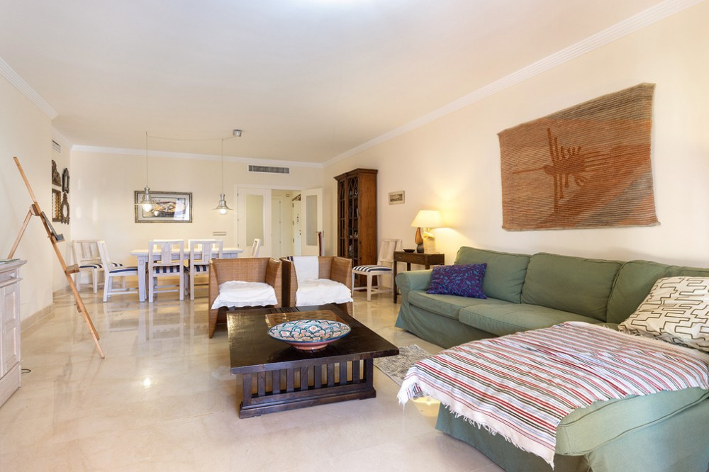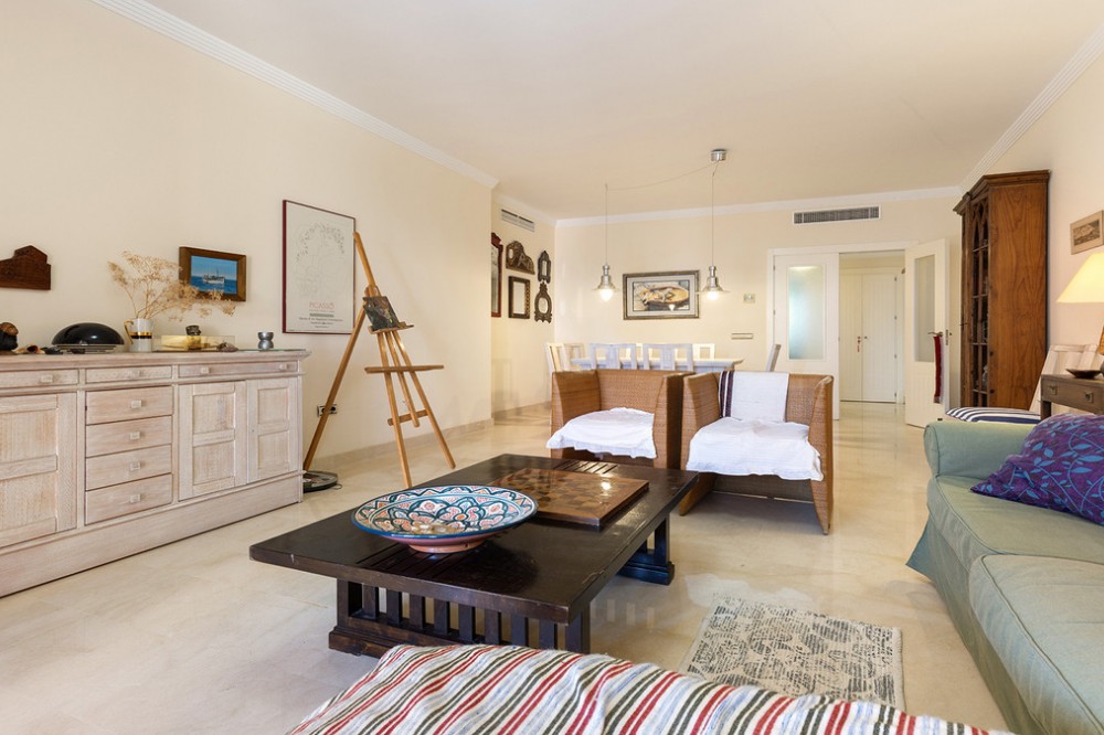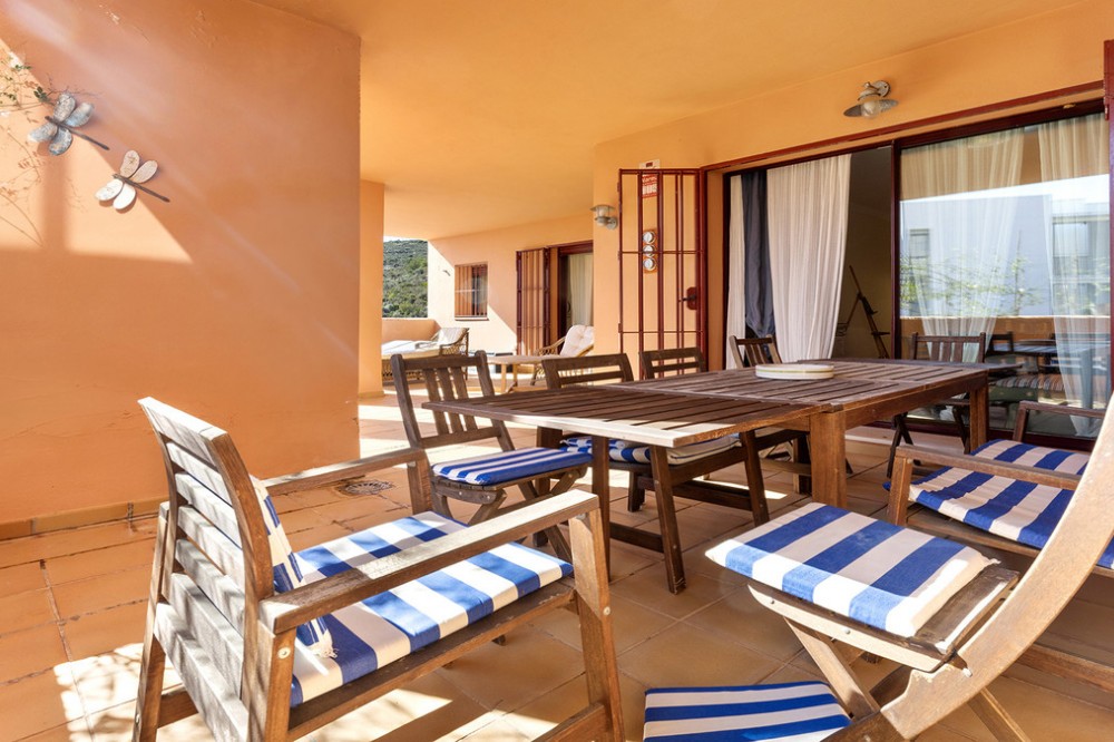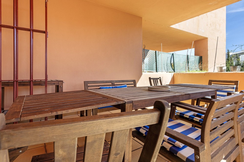 - Situated in the established residential enclave of Bahía de las Rocas, this attractive three-bedroom ground floor apartment offers generous interior proportions and exceptional outdoor living. The bright and spacious living–dining area opens directly onto a large private terrace, approximately 50% covered, creating the perfect setting for al fresco dining, relaxing, and enjoying the Mediterranean climate all year round. The apartment comprises three double bedrooms, including a principal suite with direct terrace access, a walk-in wardrobe, and an en-suite bathroom. A fully fitted kitchen, a second bathroom, and a guest toilet complete the interior layout. Its ground floor position ensures both convenience and easy access, making it ideal as a permanent residence or a holiday retreat. The property also benefits from two private parking spaces and a storage room, adding practicality and long-term value. Ideally located just five minutes from Puerto de la Duquesa and ten minutes from Sotogrande, the apartment enjoys close proximity to beaches, renowned golf courses, and vibrant marina life. Both Malaga Airport and Gibraltar International Airport are easily accessible, placing this home in a prime position on the western Costa del Sol.