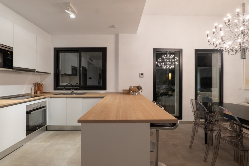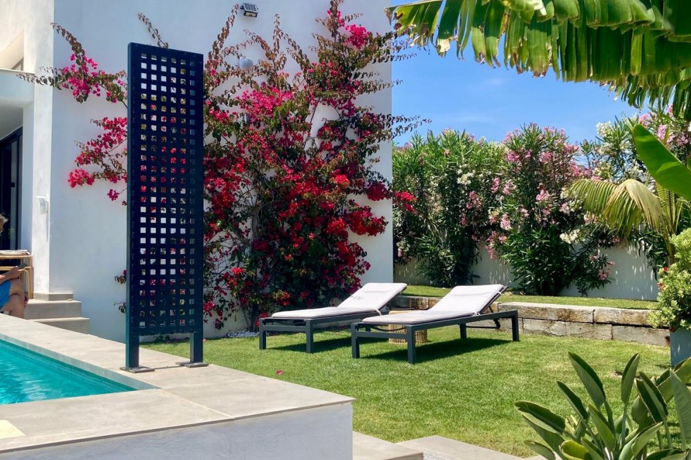 - Set in the peaceful, family-friendly area of Valle Romano, just five minutes from Estepona town centre and the beach, this modern villa offers the perfect balance of comfort, privacy, and outdoor living. It also enjoys close proximity to several golf courses, making it ideal for both full-time living and holiday use. Built on a 487 m² plot, the house has a total built surface of 310 m², including an 86 m² raw basement with huge potential, a 65 m² garage for two cars, and the remaining space designed as bright, comfortable living areas on the upper level. The main floor features open-plan interiors with direct access to the terrace and garden, making the most of the Mediterranean light and climate. Outside, a private pool and landscaped garden create a relaxing atmosphere. The mature garden is designed for very easy maintenance and includes an automated irrigation system, allowing you to enjoy the outdoor space with minimal effort. Several terraces provide ideal areas for dining, entertaining, or simply relaxing in the sun. With its convenient location near golf, the beach, and Estepona town centre, this villa is an excellent choice for those seeking a modern, low-maintenance home in a quiet, well-connected residential area.