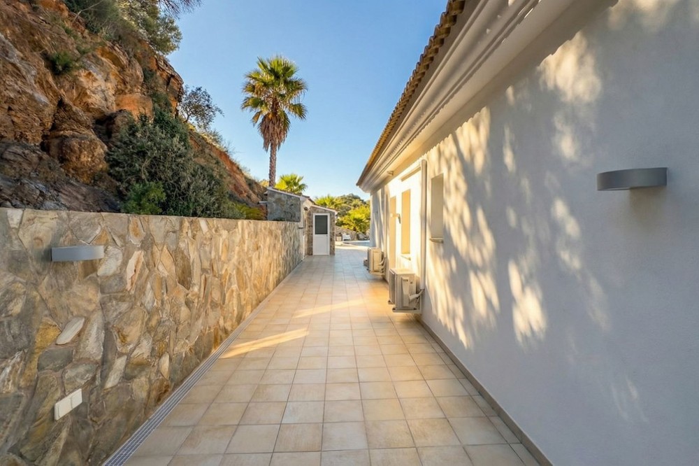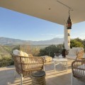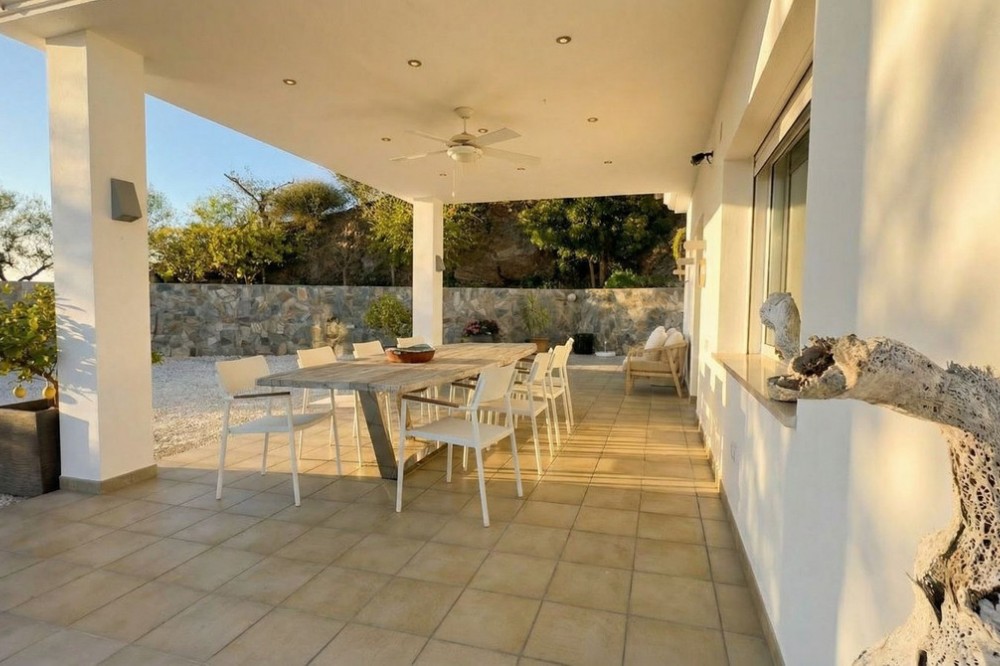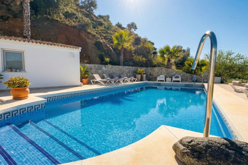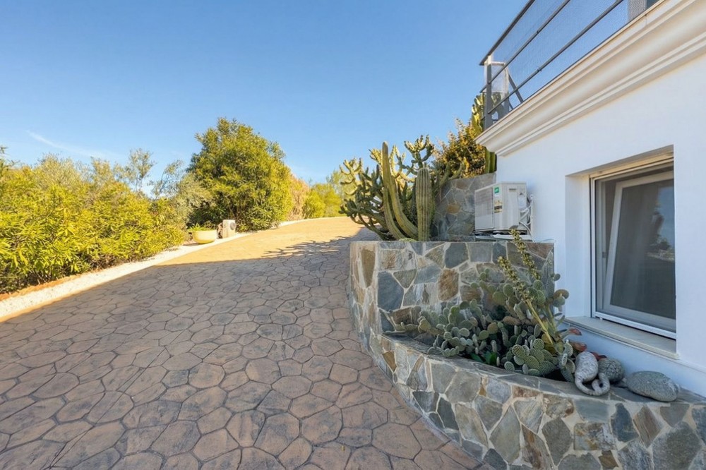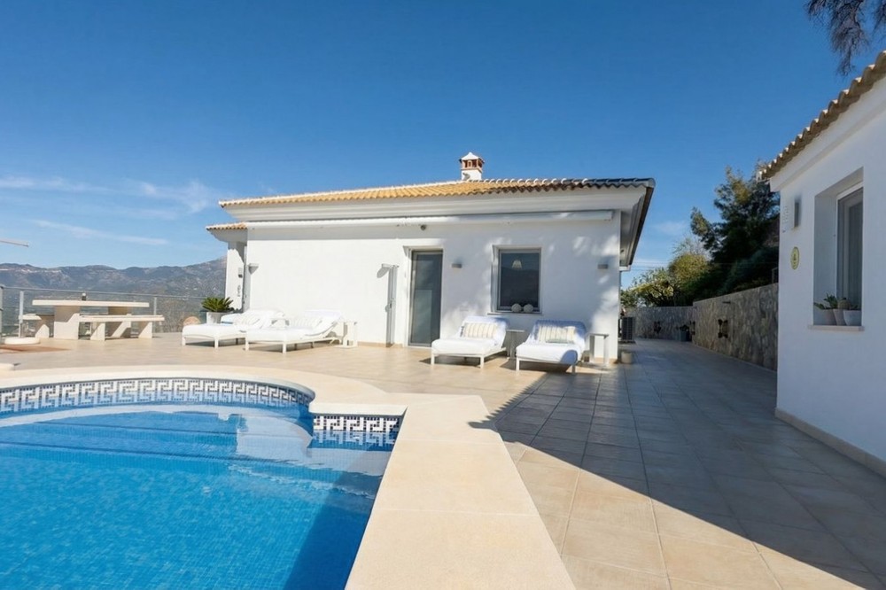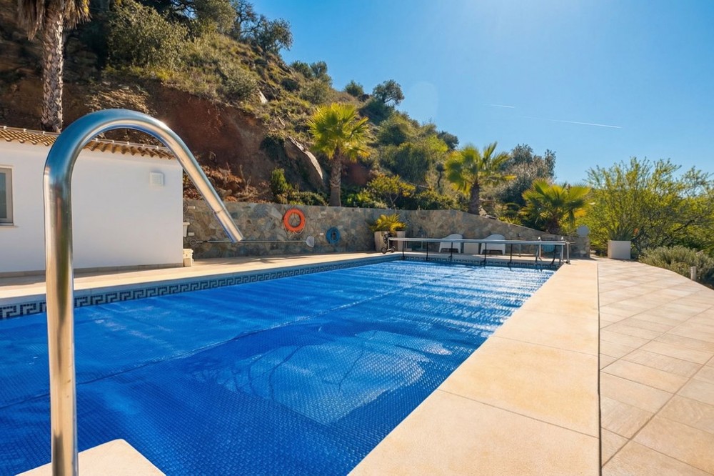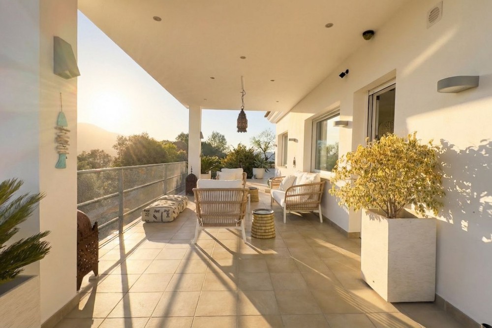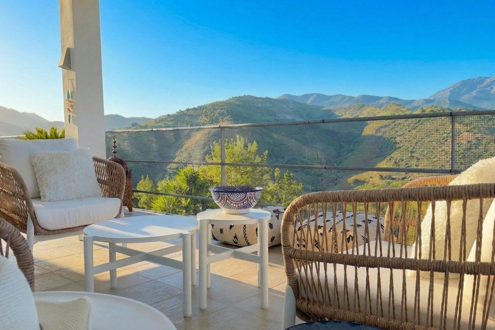 - Modern Detached Villa in a Unique Location A modern detached villa, less than 17 years old, situated in a truly unique spot. Located just 25 km from the beaches of Marbella and only 5 minutes from the charming village of Guaro! During construction in 2009, the Dutch owners at the time left nothing to chance. The property was built to Northern European standards, featuring fully insulated floors, walls, and roofs. Only the finest materials were used, resulting in a perfect and unique country villa. Technical Highlights and Extras: Comfort: Central heating and air conditioning in all rooms. Quality: PVC window frames (tilt-and-turn) with double bulletproof glass, mosquito nets, and aluminum shutters. Exterior: 92 outdoor light points (individually adjustable via timers) and 32 outdoor water taps. Sustainability: Rainwater collection in an 8,000-liter reservoir. Security: Automatic gate with camera system and CCTV surveillance around the entire property. Facilities: Private sauna and Starlink internet connection. Beyond the technical sophistication, this is above all a fantastic, spacious villa with a living area of nearly 300 m², spread over two floors. Through the veranda, you enter the central hall, which provides access to the living room, a guest toilet, and a guest bedroom. The living room is characterized by large windows that make you feel as if you are sitting inside a painting; the views are phenomenal in every direction. The living room features central heating, air conditioning, and a high-quality open-plan kitchen (German-made) with built-in Bosch appliances. You can also enjoy the stunning views from the dining area. The kitchen has its own door leading to the covered terrace on the side of the house. On this same level, you will find the master bedroom with an ensuite bathroom and a large built-in wardrobe. This room offers direct access to the pool and breathtaking views. A marble staircase leads to the lower level. Here you will find a guest apartment with an ensuite bathroom and its own spacious kitchen. Next to the guest quarters, passing through the massive garage (55 m²!), is a fourth bedroom, that can also be used as an office. Additionally, this level houses the technical room (with the pool pump) and a storage/workshop area of 30 m². Given the space and the existing plumbing, this floor offers ample possibilities to create 2 or 3 extra guest rooms—ideal for starting a B&B. The terrace with the generous swimming pool is enchanting, offering views of the Sierra de las Nieves and the surrounding valleys. There is plenty of space around the pool for seating and sunbeds. Here you will also find the spacious sauna, an outdoor shower, and a toilet. A set of stairs leads to a private "hide-away" with a lounge chair—the perfect spot to enjoy the sunset with a glass of wine. The plot exceeds 22,000 m². Behind the house is a large parking area that is also suitable for use as a helicopter landing pad. The garden is beautifully landscaped with cozy seating areas and masonry stairs throughout. Here, too, everything has been finished to perfection. Adjacent to the parking area is the storage for the gas bottles for the central heating. In short: This villa is a rare find in the "campo." It offers quality and pure living pleasure in one of the most beautiful locations in the Guadalhorce Valley.