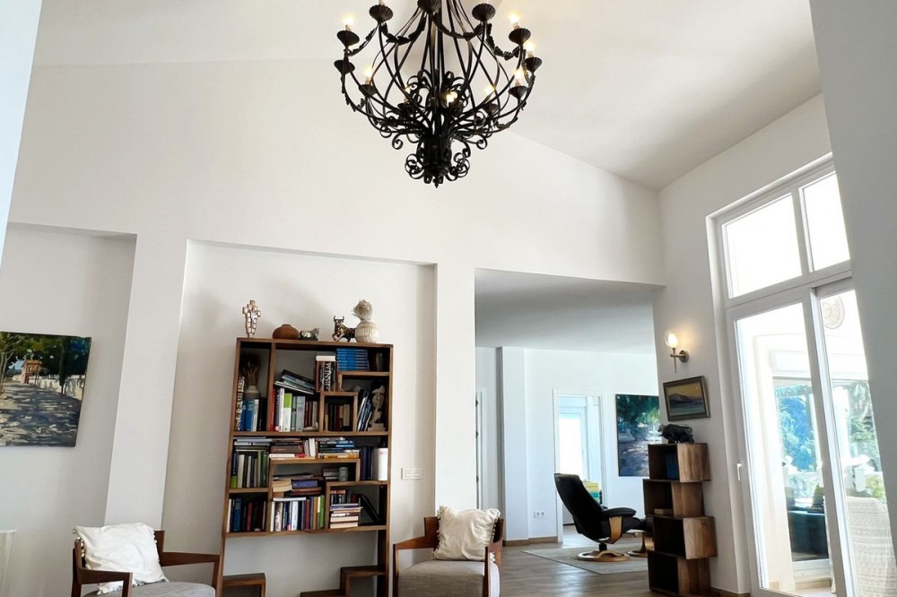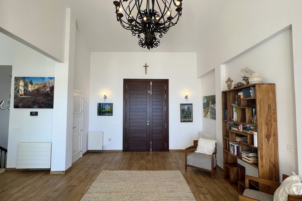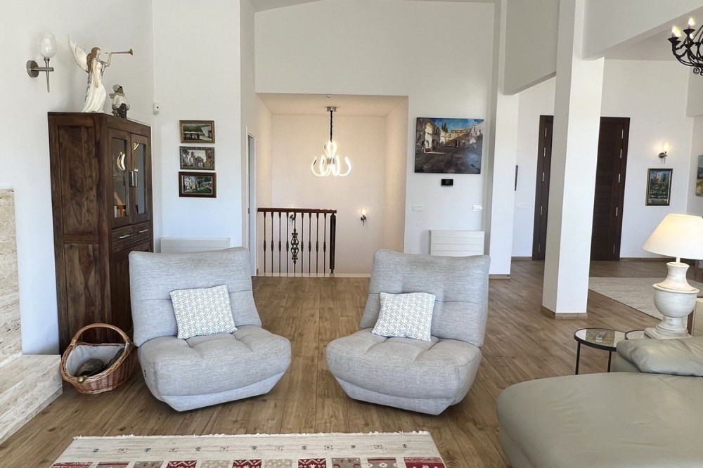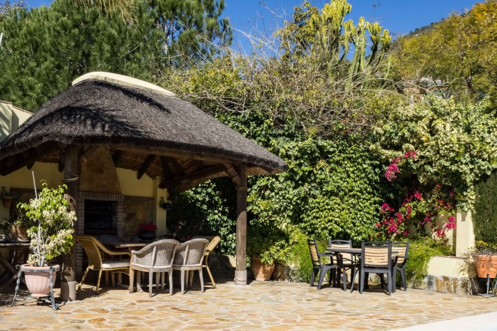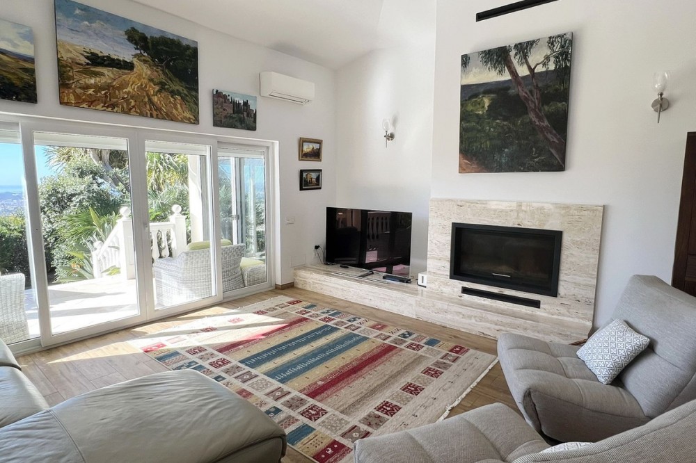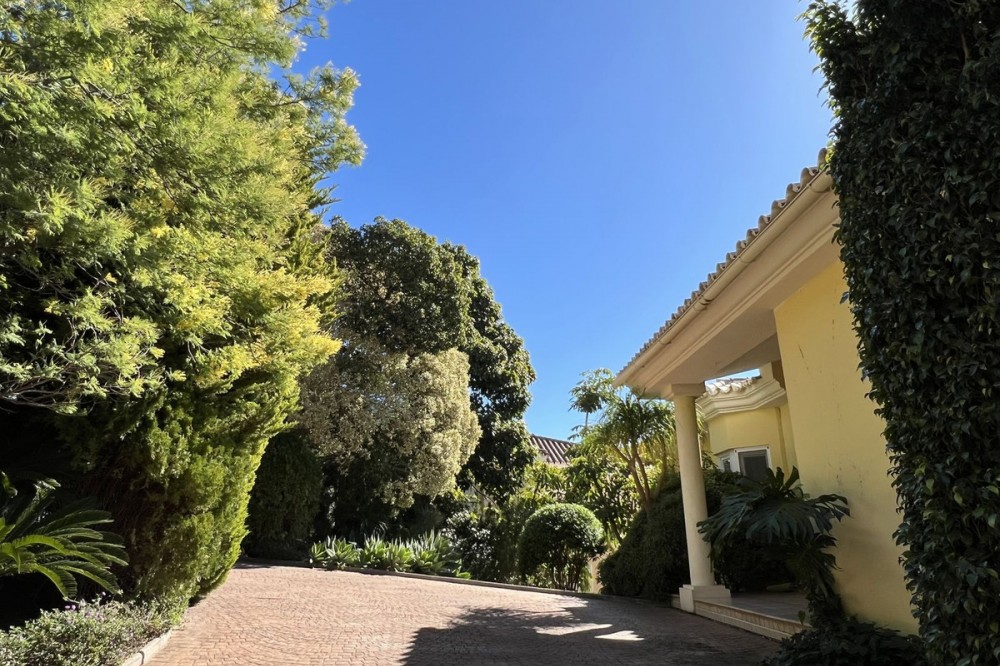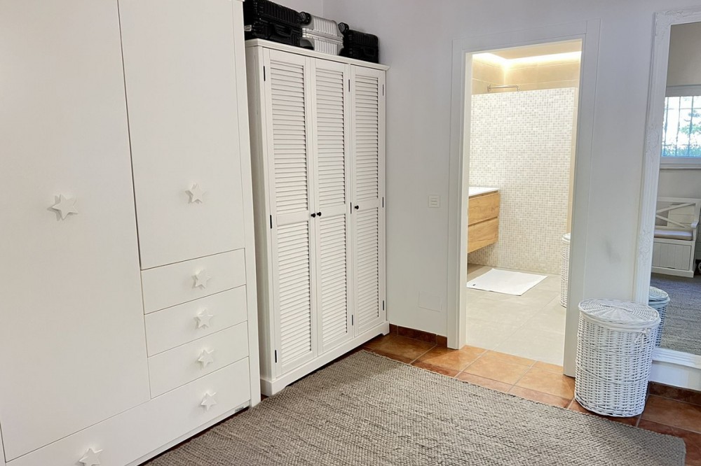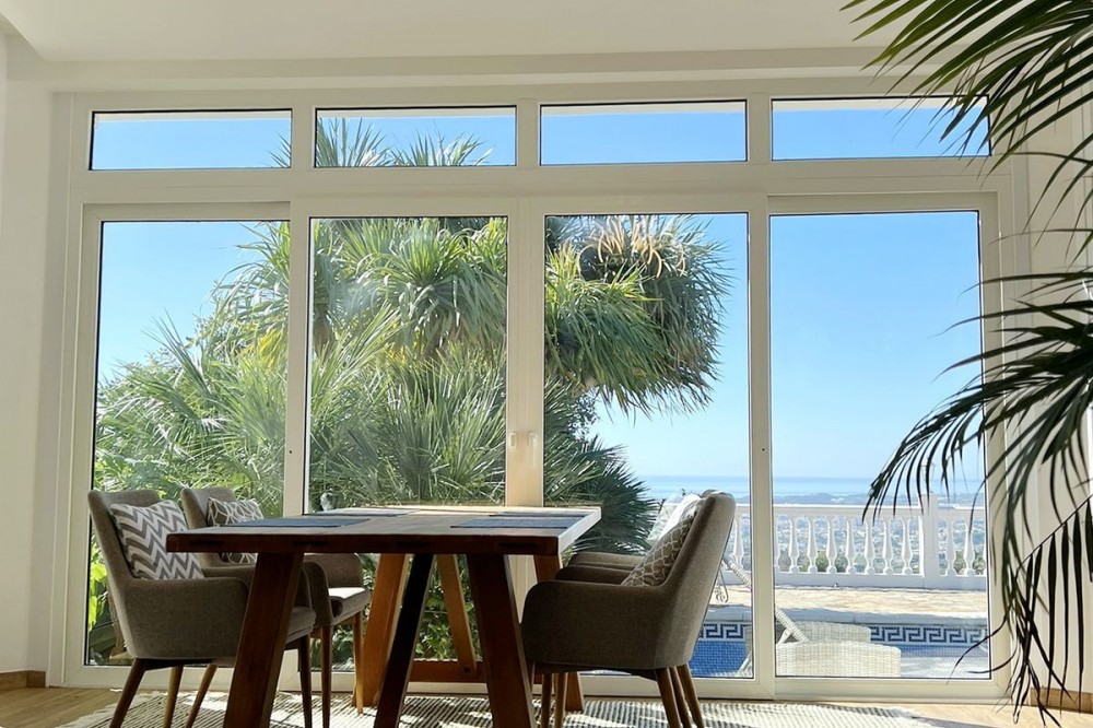 - AMAZING BEAUTIFUL VILLA in IMMACULATE CONDITION located in peaceful and prestigious residential community near all amenities. The property has been recently renovated 5 years ago to the highest most exceptional qualities. And boasts complete privacy and FABULOUS uninterrupted sea and mountain views! This gorgeous house blends a prime exclusive location with bespoke architecture, high-end materials (ceramics, natural wood) and specialized features such as a private gymnasium, 3-car garage and modern smart home technology. Large private driveway with remote controlled gates. Video intercom. Large covered entrance porch. Spectacular entrance hall with large wooden modern security doors; featuring a beautiful wrought-iron ceiling light fixture. Spacious lounge with danish fireplace, indirect lighting, dimmers and large picture windows. Access to wonderful covered terrace. Lovely guest wc. Designed open-plan spaces give the living areas a bright and airy feel, and natural light pours in through all the large windows. Large modern fully fitted kitchen with all modern cons including 3 different types of ovens, 5-plaque induction stove, bay-window and work island with breakfast bar. Adjacent sunny sitting room with access to terrace. FEATURES: Alarm system: both inside the villa connected to mobile via wifi, and exterior as well, by sensors. Professional WiFi coverage throughout the full property. All bedrooms + office have also network connection via lan & Wifi. The property is prepared for 10G. Central heating by radiators (heatpump) possible to regulate by mobile phone via Wifi connection and central panel on each floor. A/C h+c split systems in all main rooms. The villa has high ceilings throughout, with floor-to-ceiling picture windows. All main windows have professional mosquito nets. Huge master bedroom with large en suite bathroom, sunken tub + shower. Heated towel rail. Indirect lighting. Spacious child's room with bay window feature. Guest bedroom with en suite shower room. All bathrooms have heated towel rails and indirect lighting. All bedrooms have indirect lighting + dimmers. Sun room or winter-garden with adjacent lobby, an idyllic family room enclosed in glass for dining or relaxing in the sun. Direct access to terraces, swimming pool and BBQ area. DOWNSTAIRS: The service quarters: a laundry room and adjoining storage/dressing room. En suite spacious shower room. (Possible 2 guest bedrooms). ENORMOUS GARAGE: for at least 3-cars w/automatic door and neon lights. EV charging station (for electric vehicle) up to 22kw. There is a utility/storage area with plenty of shelvings and freezer. Laundry corner has washer & dryer. DIY tool area. 2 Water deposits (2000 L each), 2 heat pumps. Pool pump + machinery, pressure pump + water softener, and boilers (500 L + 300 L), etc. There is a connection in the driveway area for possible extra heat pumps. FANTASTIC PRIVATE GYM or hobby room. SELF-CONTAINED GUEST APARTMENT: Currently it consists of a lounge area, open kitchenette and fantastic spacious office space. There are doors to private terrace & garden. There are 2 Guest bedrooms + 1 modern bathroom. Storage cupboard and Walk-in closet. INCLUDING FURNITURE and all gym equipment: + 91.000 € (optional) EXTERIOR: Fantastic covered terrace surrounded and protected by large picture windows. Gorgeous pool area with Balinese style pergola & BBQ area ideal for "al fresco" dining. Fantastic property for entertaining!! Not over-looked – VERY PRIVATE ENCLAVE. Exterior electrics are prepared for future installation of an exterior kitchen, if desired. Mature landscaped gardens with fruit trees, palms, jacarandas and beautiful rockery features, automatic irrigation and plenty of night lights. Easy maintenance plot. And much much more! MUST BE SEEN. BEACH 10 MINUTES, MALAGA & AIRPORT 15 MINUTES, MARBELLA 25 MINUTES