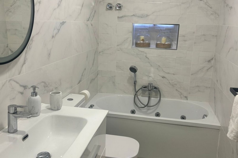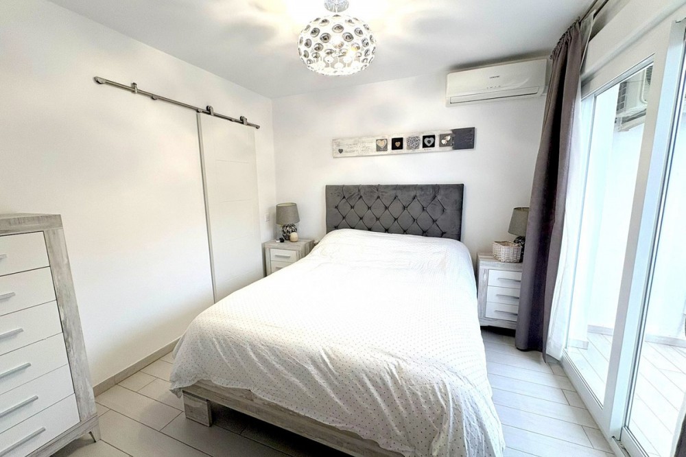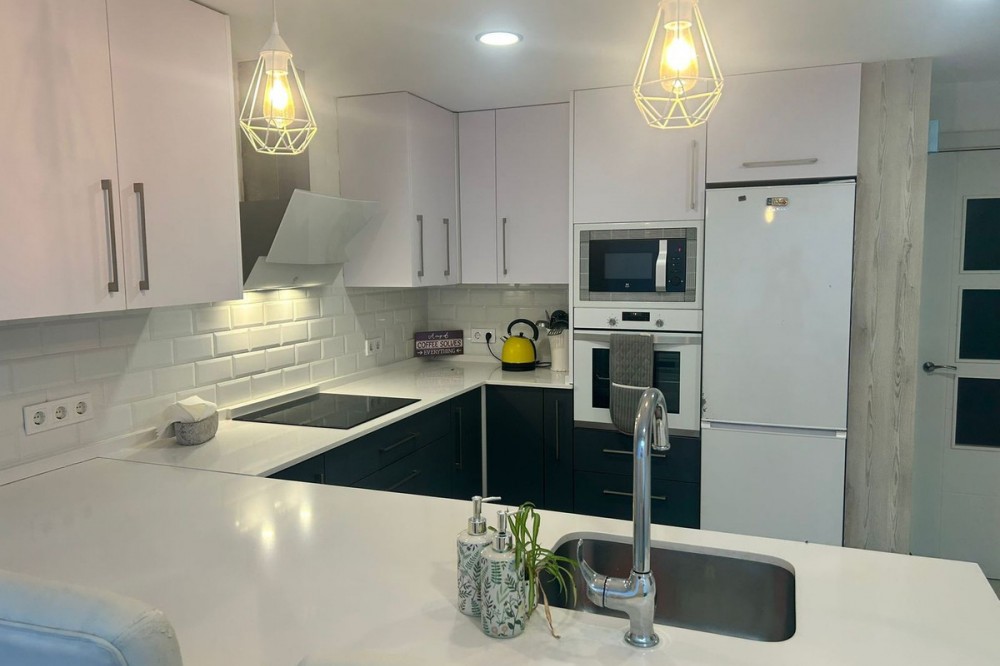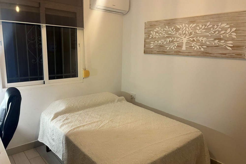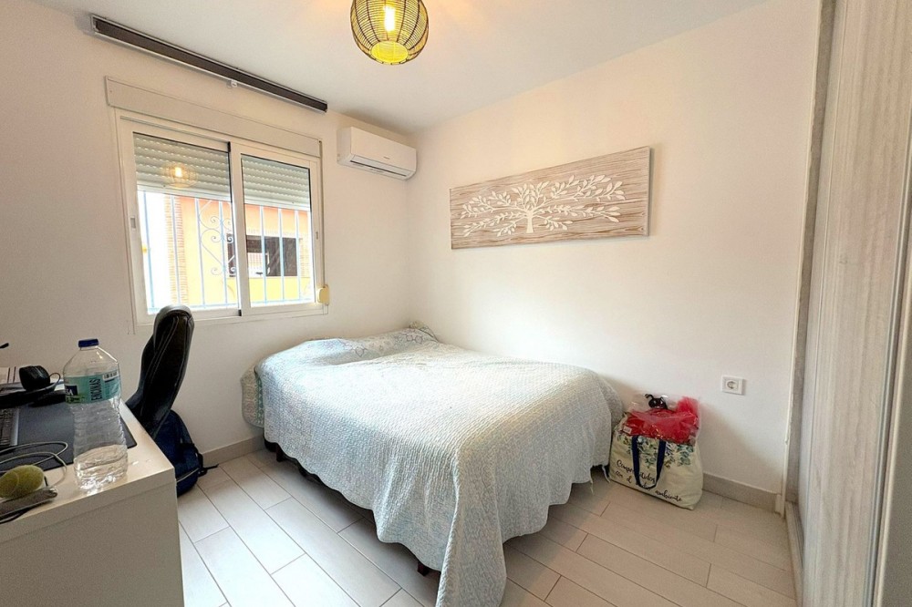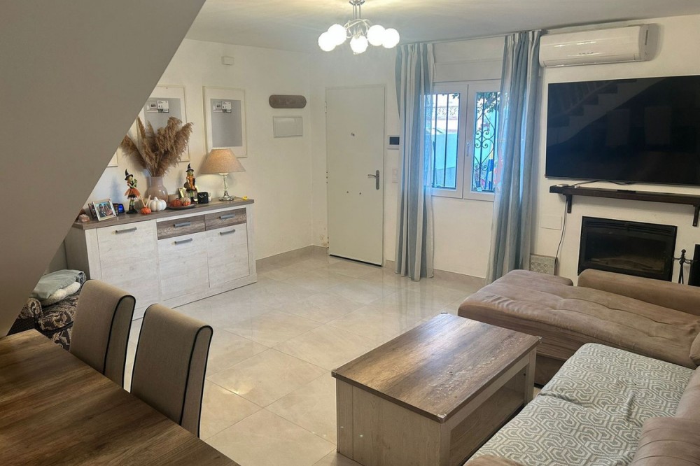 - Recently renovated townhouse in Arroyo de la Miel, offering modern comfort and spacious living throughout. The property features three bedrooms, including a master with dressing area and another with fitted wardrobes. There are two fully equipped bathrooms, one with a hydromassage bathtub and the other with a walk-in shower. The stylish kitchen has been refurbished with a peninsula and Silestone worktops. A double-height storage room provides excellent additional space. Air conditioning with heat pump is installed throughout, plus a fireplace in the living room. Enjoy private front and rear patios, security shutters, reinforced door, and no community fees.