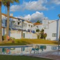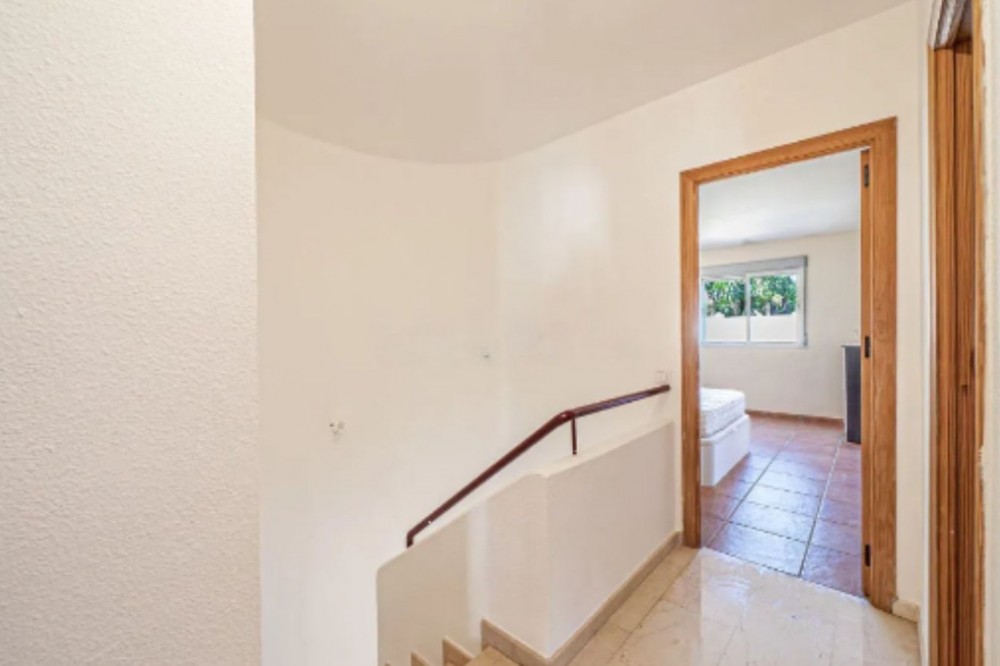 - Townhouse for Sale in Estepona – New Golden Mile Discover this beautiful townhouse located in the prestigious area of Bel Air, within a private, quiet, and family-friendly gated community on the sought-after New Golden Mile of Estepona, one of the most desirable locations on the Costa del Sol. This privileged setting offers the perfect balance between tranquility and convenience, making it ideal as a permanent residence or second home. The property benefits from excellent access to the A-7 and is close to Cancelada, supermarkets, restaurants, essential services, and renowned golf courses. Just a short drive away, you can enjoy stunning beaches such as El Saladillo and Guadalmansa, as well as the vibrant lifestyle of Puerto Banús and the charming old town of Estepona. The property is distributed over two floors and offers 125 m² built, with southeast orientation that provides abundant natural light throughout the day. On the ground floor, you will find a spacious and inviting living room with a fireplace, which opens directly onto a large private patio and garden. This outdoor area features a built-in stone barbecue and is designed to fully enjoy the Mediterranean lifestyle—perfect for gatherings, outdoor dining, and relaxing moments. This level also includes a bright and functional independent kitchen and a full bathroom. Upstairs, the home offers three spacious bedrooms, including two double bedrooms and one single bedroom with a built-in wardrobe. The master bedroom features an en-suite bathroom and a walk-in closet, providing a comfortable and private retreat. The property is part of a well-maintained gated community where residents can enjoy a large communal swimming pool and beautifully landscaped tropical gardens, creating a peaceful and welcoming environment. The home also includes a private outdoor parking space located next to the house and included in the price. Additional features include marble flooring, alarm system with security cameras, built-in wardrobes, storage room, private terrace, and a garden with outdoor kitchen and stone barbecue, offering comfort, security, and functionality. This property represents an excellent opportunity for those seeking charm, privacy, and a prime location in one of the most desirable areas of Estepona, whether as a permanent residence, holiday home, or investment on the Costa del Sol.