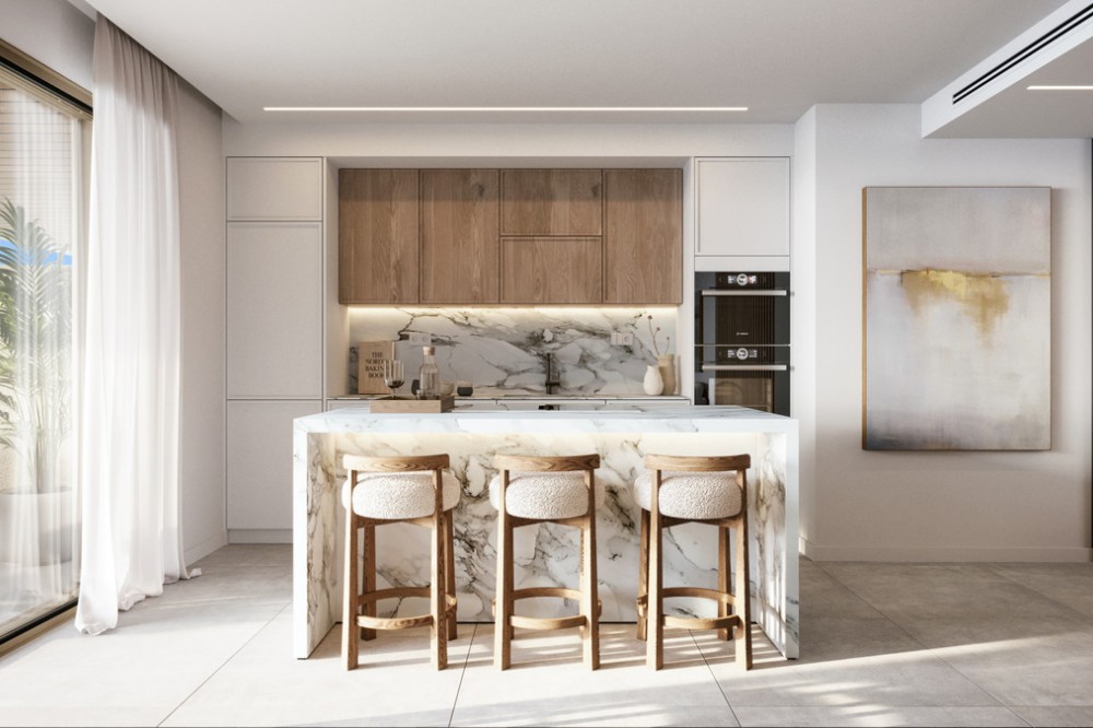 - New Development: Prices from €469,000 to €1,039,000. [Bedrooms: 1 - 3] [Bathrooms: 1 - 2] [Built size: 52m2 - 106m2]. Exclusive Opportunity in the New Golden Mile, Estepona Contemporary development located on the prestigious New Golden Mile between Marbella and Estepona. Designed with modern Mediterranean architecture and premium finishes, it offers an exceptional lifestyle just minutes from the beach. Located in one of the Costa del Sol’s most sought-after residential areas, it enjoys proximity to golf courses, beach clubs, international schools, and all essential amenities. The vibrant centres of Marbella and Estepona are only a short drive away, making this an ideal location for both permanent living and holiday use. The development features elegant contemporary apartments and penthouses designed to maximise natural light and open views. Spacious open-plan living areas connect seamlessly with large private terraces, perfect for enjoying the Costa del Sol’s year-round sunshine. High-quality specifications include: - Fully fitted designer kitchens - Large-format porcelain flooring - Air conditioning (hot & cold) - Underground parking and storage room - Energy-efficient construction Residents benefit from beautifully landscaped gardens, a large communal swimming pool, fully equipped gym, spa, hammam, indoor pool, coworking and social area and 24H secure gated access. The boutique nature of the development ensures privacy, tranquillity, and an exclusive residential atmosphere.