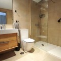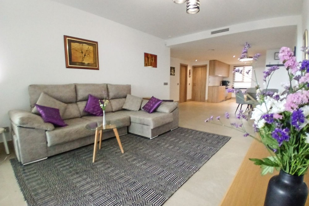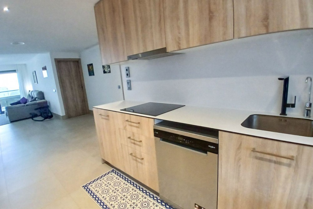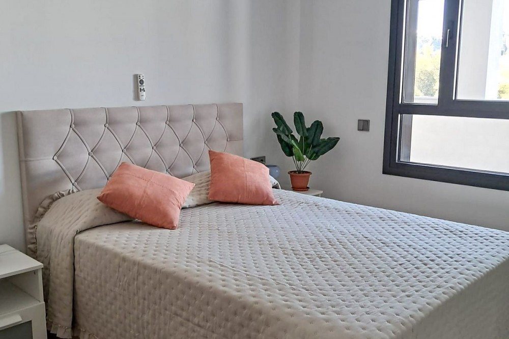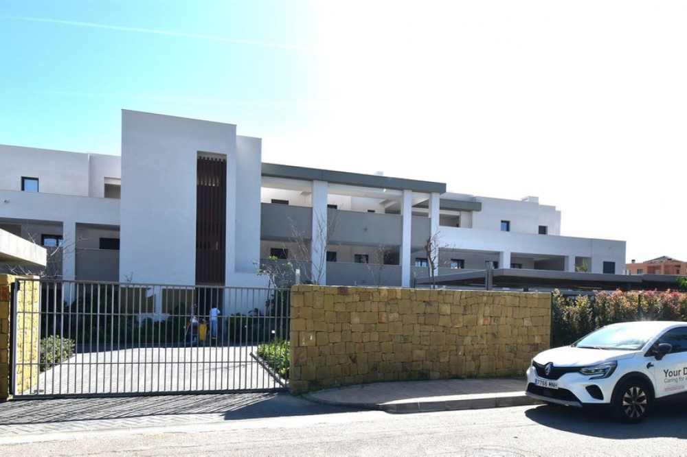 - We are delighted to introduce this new contemporary apartment in the popular Solemar development. As you enter, you will find the fully equipped kitchen with all integrated appliances that flow into the spacious lounge and dining area, leading out to the impressive 30m² south-facing terrace offering great sea, garden, and pool views. The master bedroom is a great size, also benefiting from access to the terrace, and has built-in wardrobes with fully finished interiors and a large modern ensuite bathroom. There is also a further double bedroom, again with good wardrobe space, and a full family bathroom with quality sanitaryware, a walk-in shower, and a glass screen. The terrace is covered and has had the premium glass curtain system installed, creating a seamless extension of the interior living, ideal for all-round living . This significantly enhances sound insulation , contributing to a peaceful indoor haven and creating a cozy area for milder evenings. The grounds are impeccable. Perfectly landscaped gardens, pedestrian pathways connect the buildings, motorized vehicle access, and an attractive communal pool area. Every time you visit, you will meet the cleaner or gardener who maintains the community daily. There is a private covered parking space and a golf storage locker included in the price. The location is amazing ; just a small flat walk, and you are on the gorgeous sandy beaches and promenade that take you into the picturesque Duquesa port and the Spanish town of Sabanillas. The apartment is newly built, so it comes with all the new technology extras and features, including a geothermal system, glazed aluminum windows, fully installed ducted air conditioning (hot and cold), electric shutters in the bedrooms, and large anti-slip porcelain flooring.