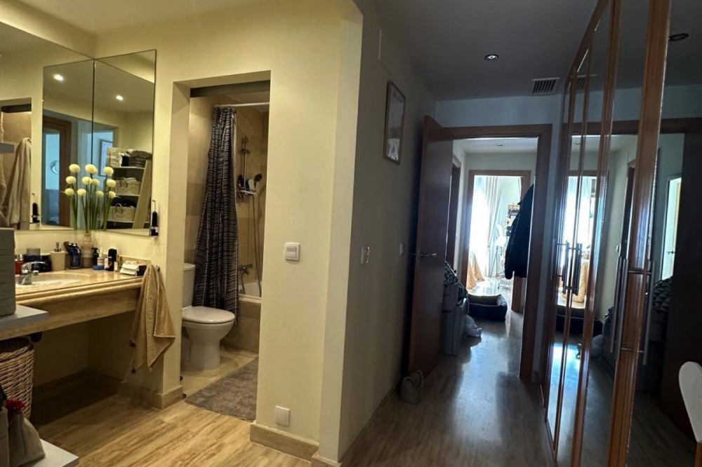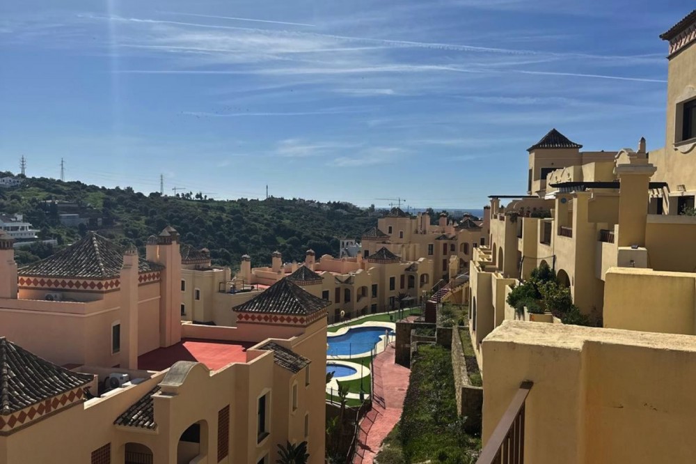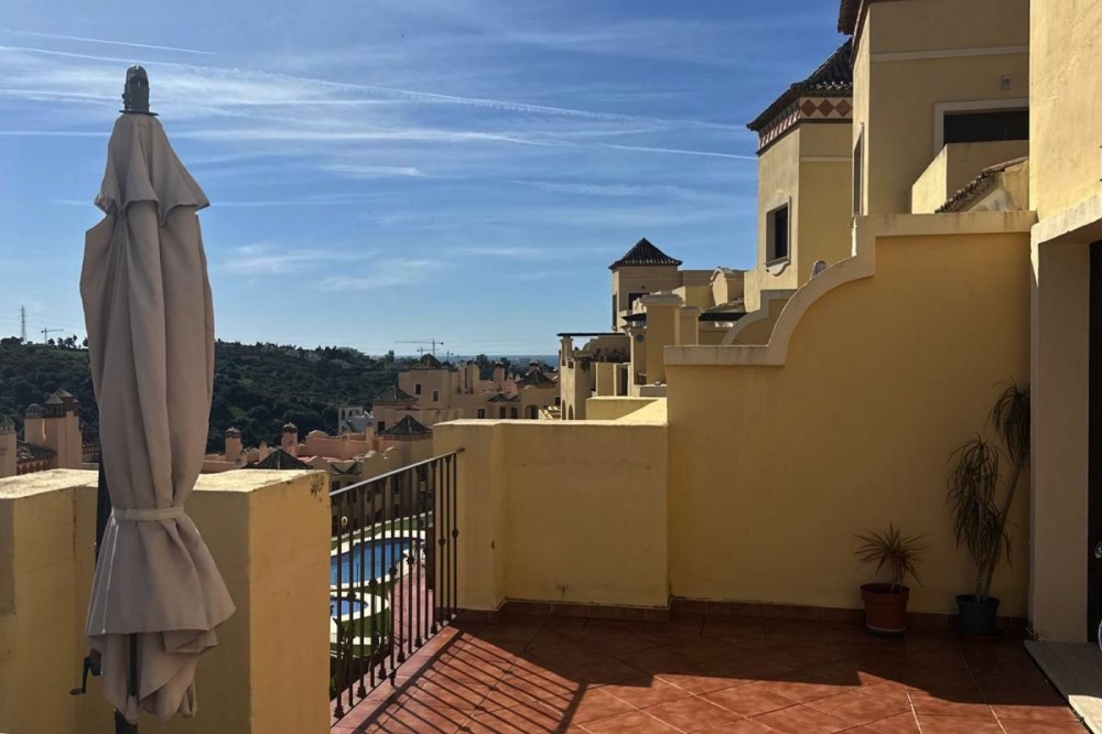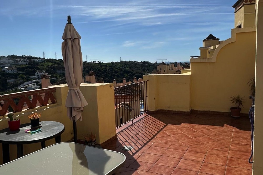 - Stunning South-East Facing Penthouse with Panoramic Sea & Sierra Bermeja Views – Near Valle Romano & Azata Golf, Estepona Discover this beautiful and bright penthouse apartment of 135 m² on a single floor, offering an exceptional sense of space, light and freedom. Located in a private, well-maintained residential complex surrounded by the prestigious Valle Romano Golf and Azata Golf courses, just minutes from all essential services, restaurants, supermarkets, schools and the beautiful beaches of the Costa del Sol. Key Features 135 m² built on one floor 2 bedrooms | 2 bathrooms Spacious living-dining room with direct access to a large panoramic terrace Fully renovated large kitchen with mountain views (west orientation) Master bedroom with en-suite bathroom featuring jacuzzi bathtub and spacious fitted wardrobes Second bedroom and family bathroom with shower tray Large terrace with spectacular panoramic views (South-East orientation) Parking space and storage room included Air conditioning Excellent natural light and high ceilings typical of a penthouse Community Amenities 2 communal swimming pools + children’s pool Beautiful landscaped gardens and green areas Private, well-cared-for gated community This property perfectly combines indoor comfort with outdoor living and offers an ideal setting for both permanent residence and holidays. A unique opportunity in one of Estepona’s most desirable golf-residential areas with breathtaking views from Sierra Bermeja to the sea. Viewing highly recommended – contact us today to arrange a private viewing!