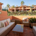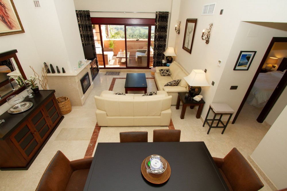- Immaculate three bedroom duplex penthouse with the most outstanding panoramic views to sea and mountains.. Orientation south east. Three terraces ensuring sun throughout the whole day. Recently renovated bathroom. Beautiful working fireplace in the living room. Quality fixtures and fittings throughout. Large underground parking bay with a storeroom. Lift direct from garage to the penthouse. Free membership to the wonderful El Soto de Marbella Leisure facilities including own nine hole golf course, large fully equipped gym, sauna, spa, tennis and Padel tennis courts plus two professional boules courts.Popular on site restaurant and bar. This is a quality luxury penthouse which will not be on the market for sale very long. Sold fully furnished. Great price viewing highly recommended.