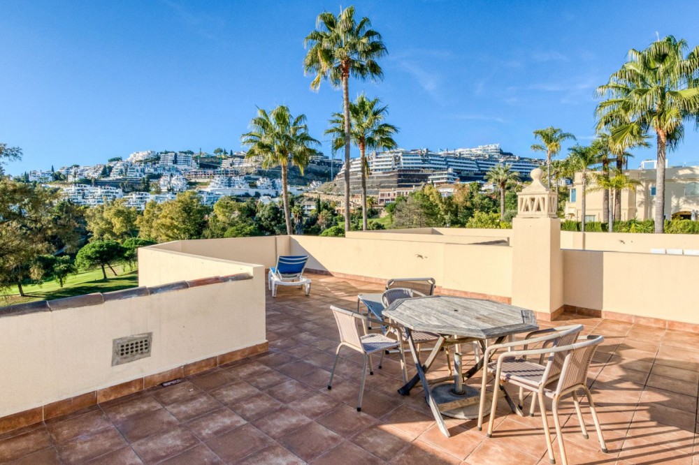 - Elegant Garden Townhouse with Rooftop Terrace | La Quinta, Benahavís Absolutely beautiful and exceptionally well cared for, this three-bedroom townhouse is set within one of the most sought-after private communities in La Quinta, offering space, privacy, and a relaxed Mediterranean lifestyle in a secure and established setting. Lovingly maintained by the current owners for over twenty years, the home presents an impressively generous interior complemented by expansive west-facing terraces and the exclusive use of a large, sun-drenched private garden. The outdoor spaces are a true highlight, perfect for afternoon sun, entertaining, or simply unwinding in complete tranquillity. Above, an expansive rooftop terrace captures open views across the surrounding landscape, the mountains, and La Quinta Golf, creating a spectacular setting for evening dining or sunset drinks. Inside, the property combines comfort with quality. A fully reformed German-designed kitchen with integrated appliances sits at the heart of the home, complemented by a separate utility room fitted to the same high standard, delivering both practicality and clean contemporary design suited to modern living. The overall layout feels spacious, bright, and welcoming, ideal as a full-time residence or refined holiday home. Set within a secure and highly regarded gated community, the location is superb. A short walk of approximately ten minutes brings you to a five-star hotel, golf clubhouse, spa, restaurant, and café, while the wider amenities of Benahavís, Nueva Andalucía, and Marbella are all within easy reach. Partially refurbished, offered fully furnished, and presented in excellent condition throughout, this is quite literally a turnkey home, ready for immediate enjoyment from day one. Contact us today to arrange your private viewing.