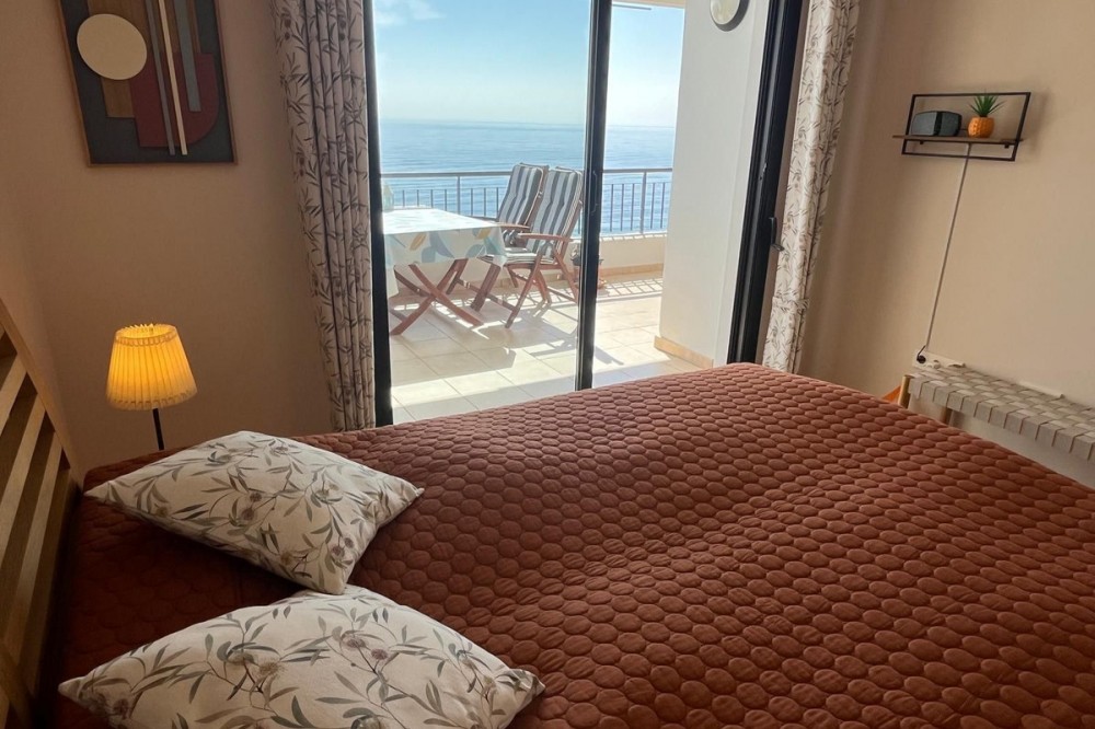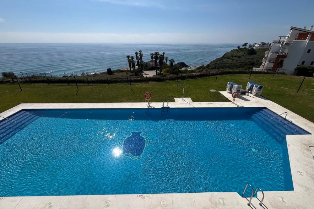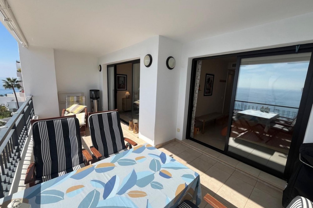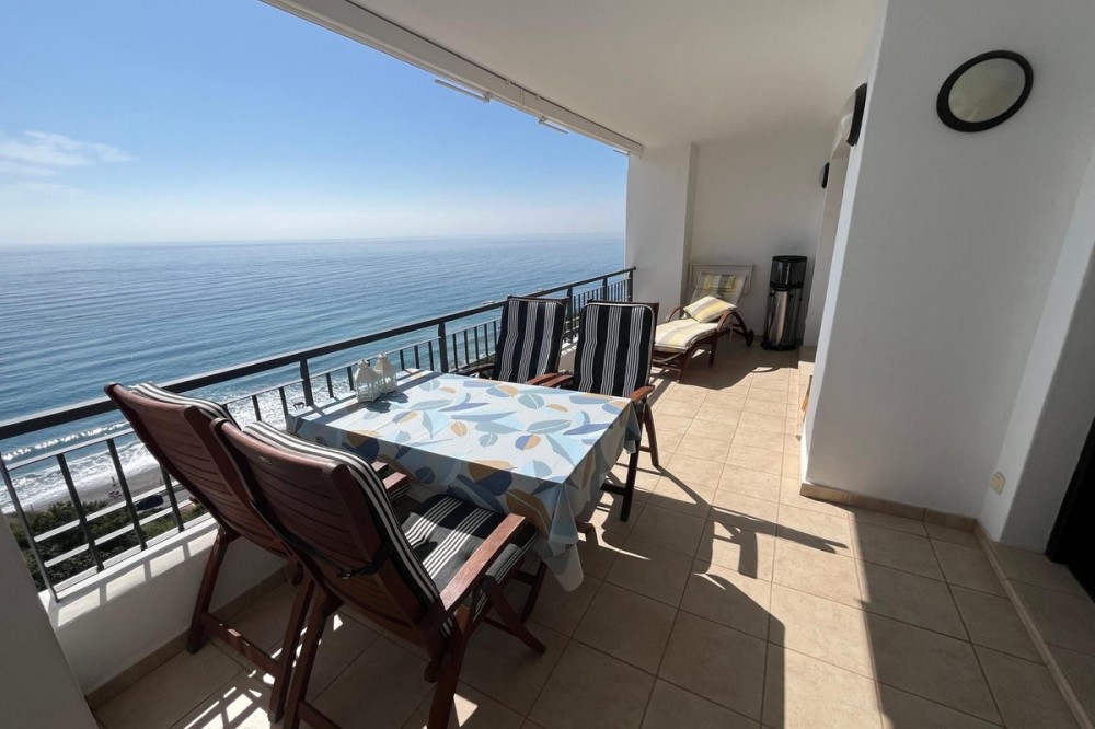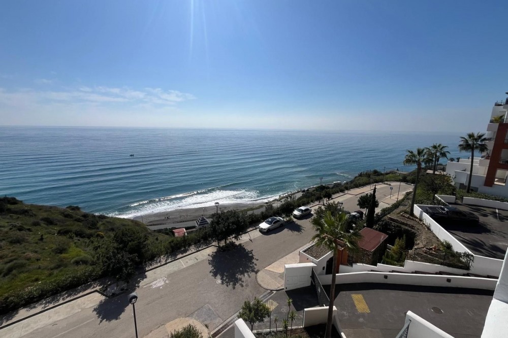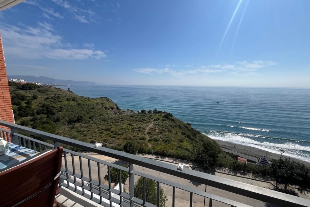 - FANTASTIC PANORAMIC VIEWS TO THE SEA & MOUNTAINS This beautiful apartment is located in Urbanization Vistamar, CalaCeite, between Nerja and Torrox Costa. Urb. Calaceite consists of seven buildings surrounded by beautifully maintained gardens and two communal swimming pools with a fantastic sea view. It is only 5 min. drive to Nerja and Torrox Costa. It is 6 min. walk to the beach. The apartment (74m2) has a fantastic panoramic view almost directly to the sea and mountains. The terrace of 19m2 is southeast, and has very rare strong winds on the terrace, so you really have the opportunity for a place to relax and enjoy the exceptional Costa del Sol climate all year round. The apartment has 2 spacious double bedrooms with built-in wardrobes, two complete bathrooms (one ensuite), a fully equipped separate kitchen and a cozy living room with direct access to the terrace. The Master Bedroom also has direct access to the terrace, and from the bed, you have a fantastic view of the sea, while you can hear the sound of the sea. The apartment has just been fitted with a completely new central air conditioning system. The apartment includes a private parking space and storage room. The apartment is also and is equipped with double glazing, which ensures comfort all year round. The apartment also has a newly renovated bathroom and the apartment is generally in very good condition. Should the apartment suit your taste, please contact me immediately for a showing, we have the keys if you are ready.
