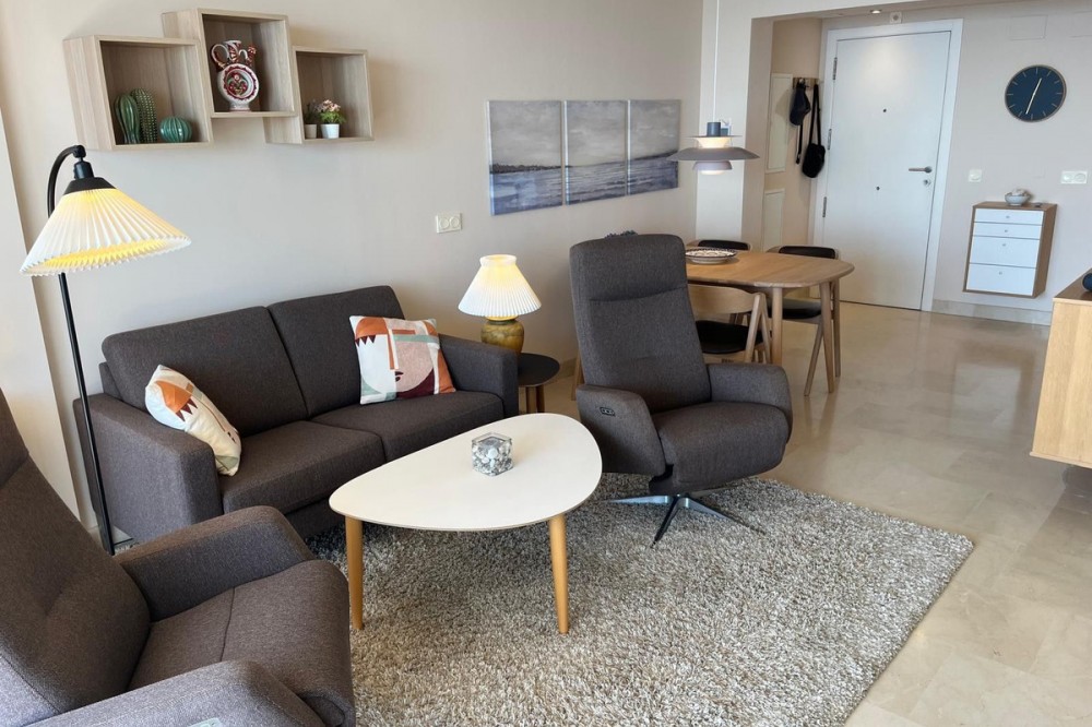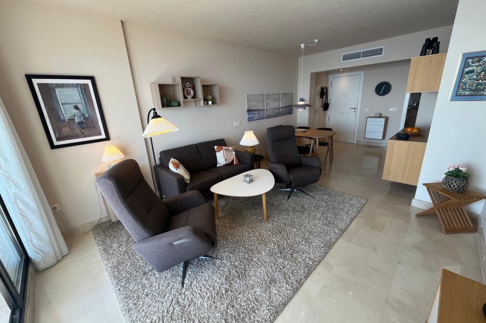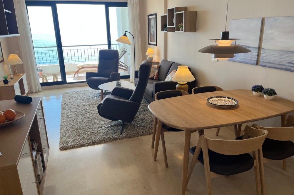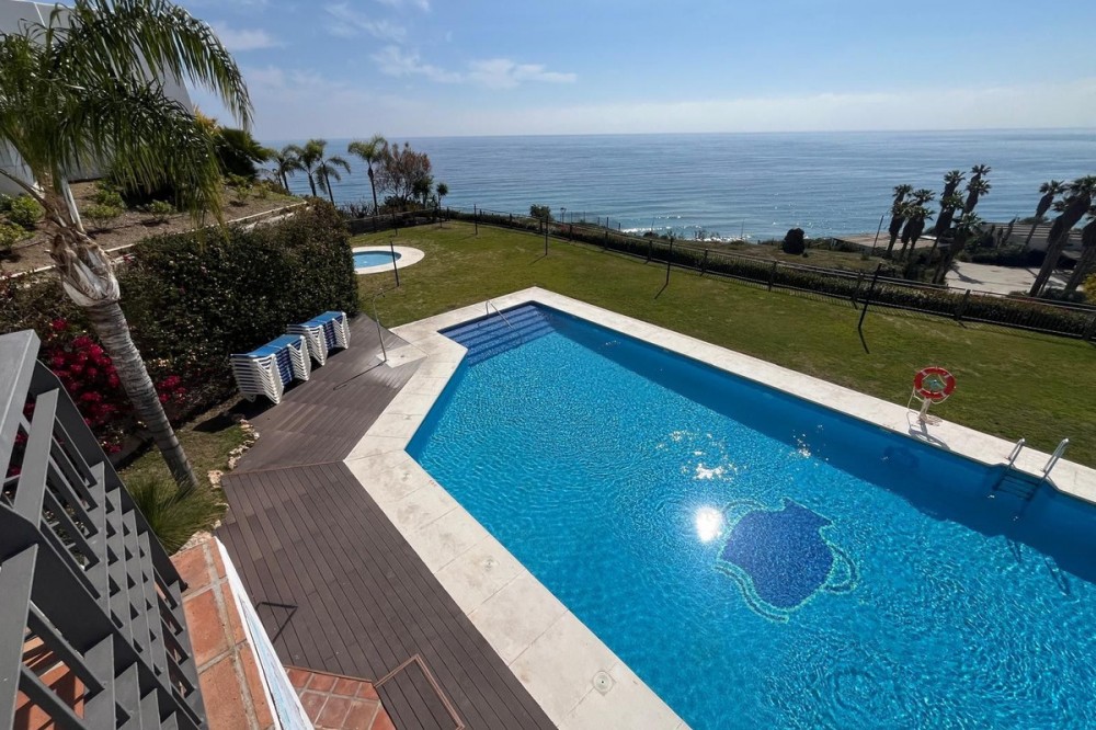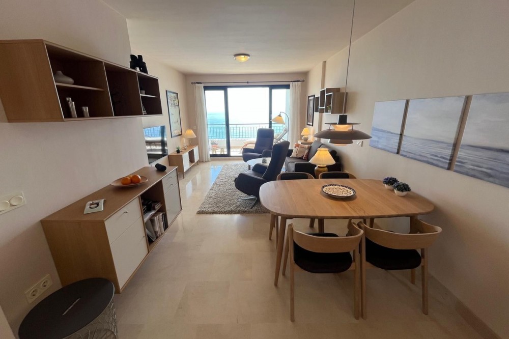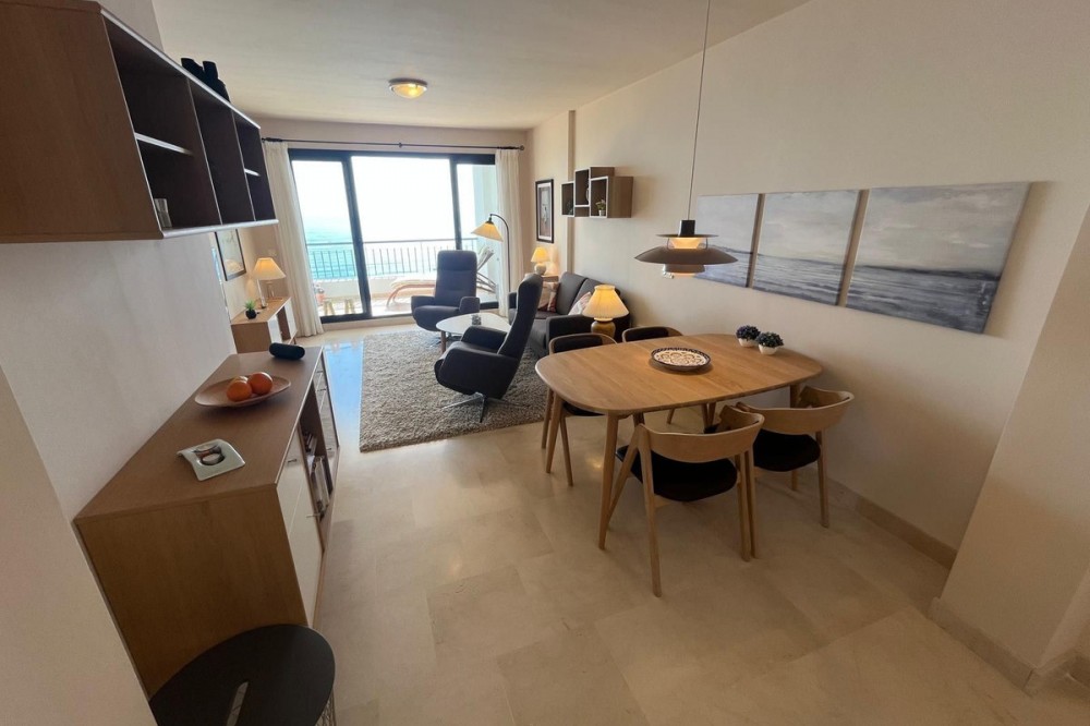 - FANTASTIC PANORAMIC VIEWS TO THE SEA & MOUNTAINS This beautiful apartment is located in Urbanization Vistamar, CalaCeite, between Nerja and Torrox Costa. Urb. Calaceite consists of seven buildings surrounded by beautifully maintained gardens and two communal swimming pools with a fantastic sea view. It is only 5 min. drive to Nerja and Torrox Costa. It is 6 min. walk to the beach. The apartment (74m2) has a fantastic panoramic view almost directly to the sea and mountains. The terrace of 19m2 is southeast, and has very rare strong winds on the terrace, so you really have the opportunity for a place to relax and enjoy the exceptional Costa del Sol climate all year round. The apartment has 2 spacious double bedrooms with built-in wardrobes, two complete bathrooms (one ensuite), a fully equipped separate kitchen and a cozy living room with direct access to the terrace. The Master Bedroom also has direct access to the terrace, and from the bed, you have a fantastic view of the sea, while you can hear the sound of the sea. The apartment has just been fitted with a completely new central air conditioning system. The apartment includes a private parking space and storage room. The apartment is also and is equipped with double glazing, which ensures comfort all year round. The apartment also has a newly renovated bathroom and the apartment is generally in very good condition. Should the apartment suit your taste, please contact me immediately for a showing, we have the keys if you are ready.