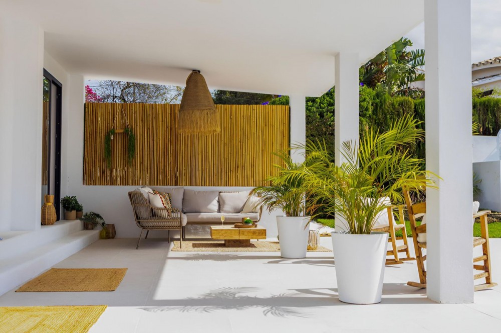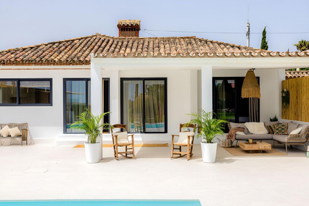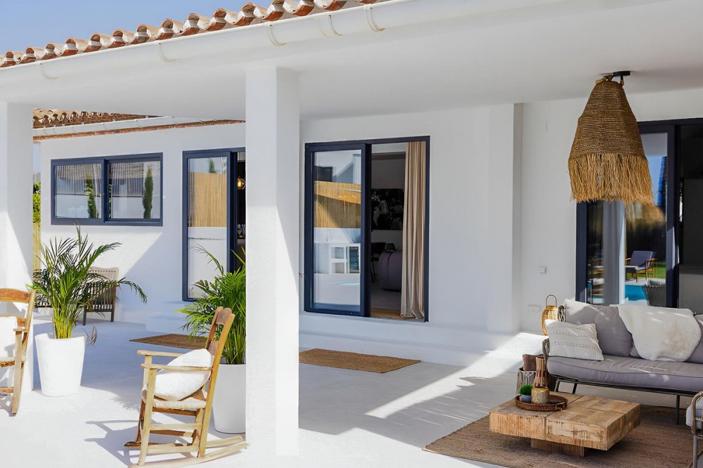 - Completely renovated villa in the Don Pedro area, with a large plot offering privacy and comfort in a peaceful setting. The main house, built in the Ibizan style, stands out for its brightness and open-plan design: an integrated living room and kitchen that connect directly to a terrace facing the garden area, where you will find the private swimming pool and a fantastic outdoor kitchen, ideal for enjoying the climate all year round. It has 2 en-suite bedrooms, designed for maximum comfort. In addition, it has a separate apartment with access from both the outside and the main house, which provides great versatility. This space offers a lounge with open kitchen, en-suite bedrooms and access to a very large covered patio, perfect as a chill-out area or additional dining room. The plot has two separate entrances and ample parking space, which facilitates access and adds extra functionality to the property. A villa ready to move into, ideal both as a primary residence and as an investment.
