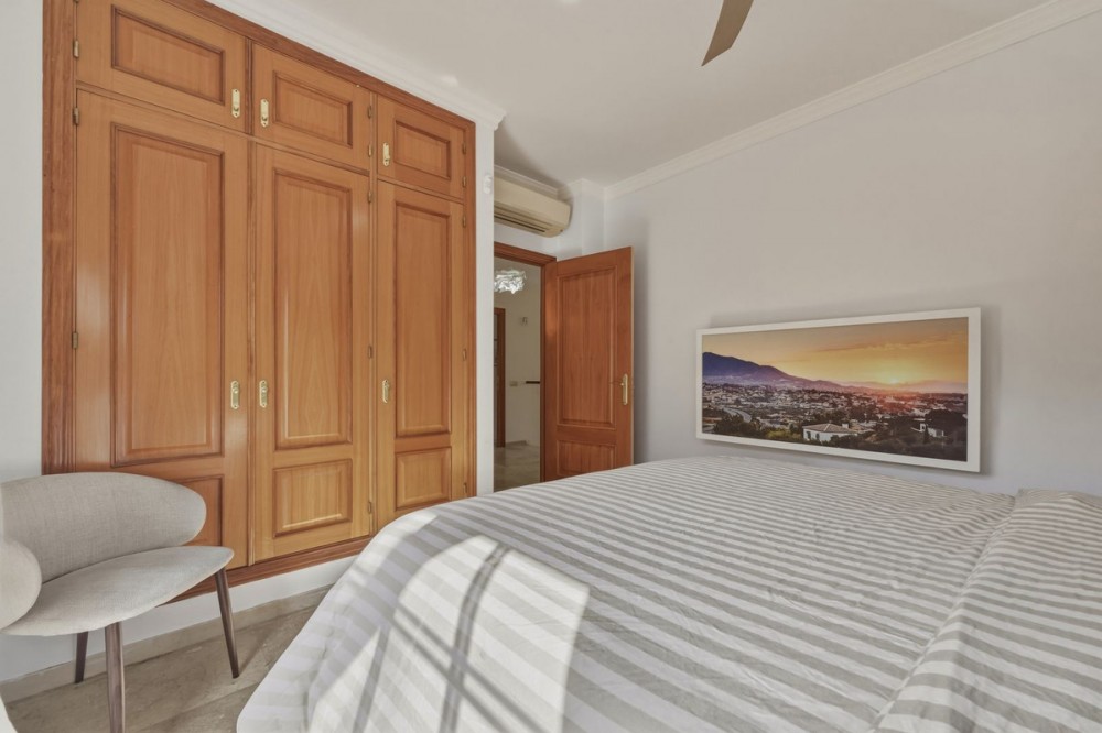 - Detached villa on a quiet residential street in La Cala Hills, Mijas, offering spacious accommodation, flexible living, and strong appeal for both families and investors. The property is arranged over two well-proportioned levels and is suitable for permanent living, relocation, or long-term rental. The upper floor comprises four spacious bedrooms and two bathrooms, including a generously sized master bedroom positioned on the corner of the house. The master benefits from two separate windows and open views towards the Mijas mountains, providing excellent natural light. One additional bedroom enjoys access to a private balcony. All bedrooms are well sized and suitable for comfortable long-term use. The ground floor offers a bright open-plan living and dining area with a working fireplace, an independent fitted kitchen, a full bathroom with bath, and a fifth spacious room currently used as a playroom. This room offers genuine flexibility and can easily function as a guest bedroom, home office, or additional living space, making the layout attractive for both family living and rental use. Access to the outdoor areas is via the living room and from either end of the house through a good-sized entrance hall, allowing easy circulation between indoor and outdoor spaces. Outdoor living is a key feature of the property. The garden includes covered and open terraces, a private swimming pool, and space for dining and relaxation throughout the year. Parking is available directly in front of the house, within the garden via an electric gate, and nearby on an adjacent road for visitors. The villa features marble flooring throughout, air-conditioning units providing heating and cooling, a private electric vehicle charging point, and is located in a peaceful residential setting with no community fees. Furniture may be partially included by negotiation, offering flexibility for buyers planning immediate occupation or rental. Conveniently located within walking distance of international schools, nurseries, sports facilities, cafés, and shops, while remaining quiet and non-touristic. La Cala Hills offers easy access to Fuengirola, La Cala de Mijas, Marbella, and Málaga Airport (approximately 25 minutes). A well-maintained, adaptable property offering space, light and versatility, equally suited to family living or investment purposes.