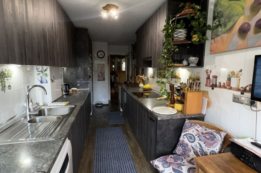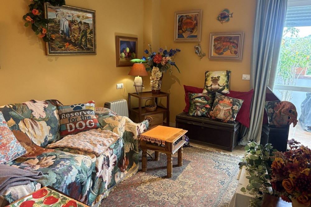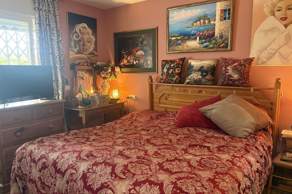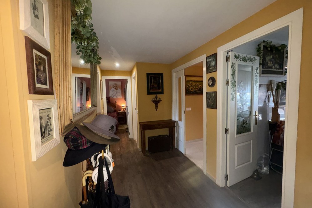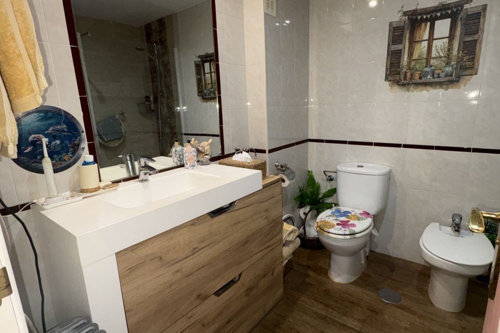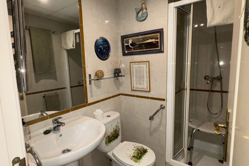 - Spacious 1st floor apartment in a lovely community within walking distance to the Miraflores golf course. This apartment gives you two good size bedrooms with fitted wardrobes both with access to the back terrace, the master bedroom there is a large un-suite bathroom that has recently been renovated and there is a smaller 2nd shower room. The kitchen is fully equipped, and it has also been renovated. The living room is large with 2 double doors leading to the front terrace, from there you have sea and pool views. It sold with private parking and storeroom in the communal underground garage.