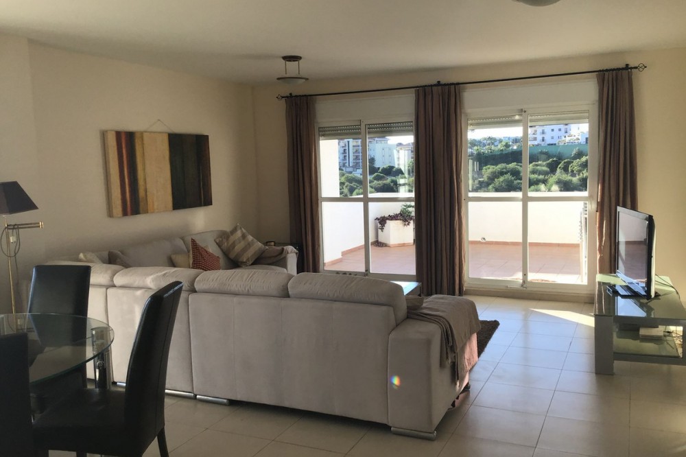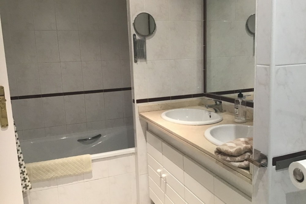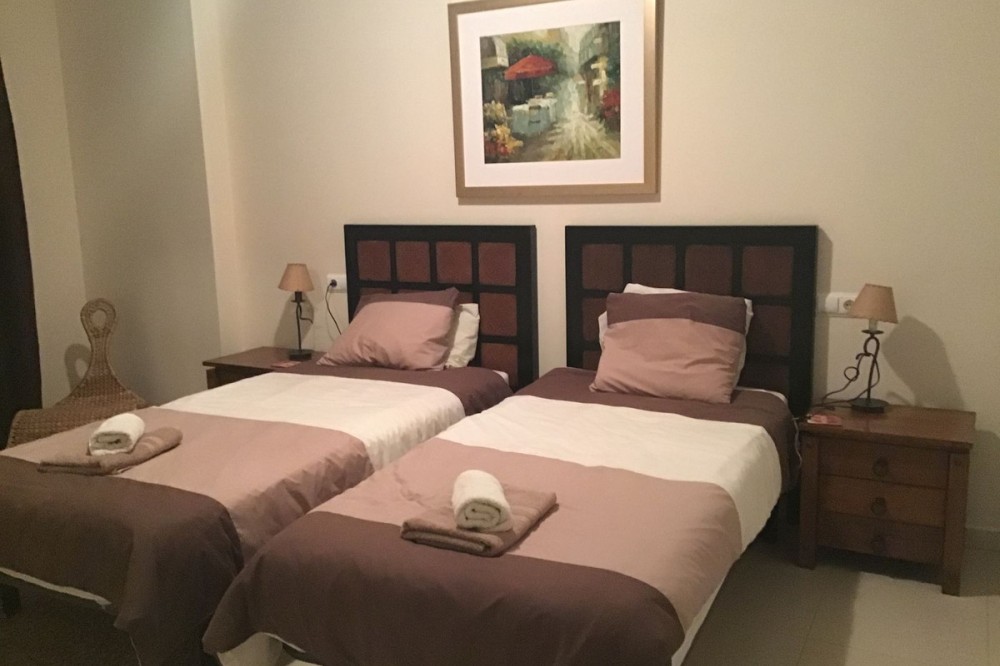 - Spacious 3-bedroom ground floor apartment with large bright rooms. This apartment has three double size bedrooms with fitted wardrobes and access to a terrace. The back bedrooms have their own private terrace which could be enclosed to make it more useable, there is also a big bathroom at this end of the apartment, the master bedroom has access to the front terrace and its own en-suit bathroom, there is a large kitchen that is fully fitted, and the lounge dining area is extremely large with double terrace doors in the dining area to lead out to the side terrace and double terrace doors in the lounge area to lead out onto the front terrace. It’s sold with parking and storeroom. It would be ideal for a family home holiday accommodation or a rental property.