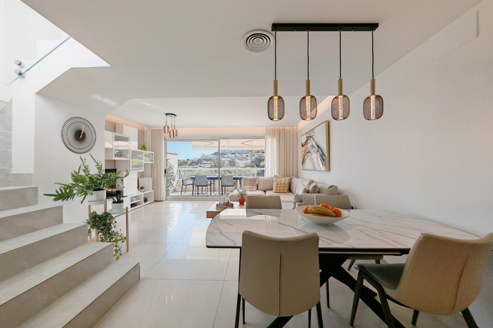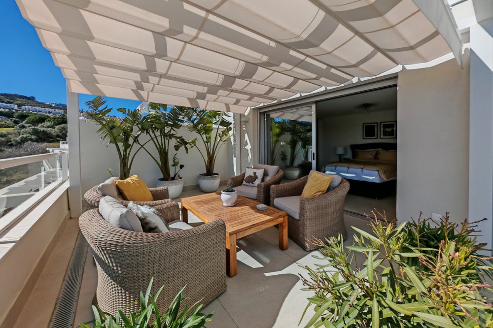 - Penthouse for sale in , Mijas Costa with 3 bedrooms, 2 bathrooms, 1 on suite bathroom and with orientation south, with communal swimming pool, private garage (2 parking spaces) and communal garden. Regarding property dimensions, it has 102 m² built and 37 m² terrace. Has the following facilities front line golf, amenities near, air conditioning, fully fitted kitchen, alarm, double glazing, barbecue, security service 24h, private terrace, living room, country view, golf view, laundry room, electric blinds, fitted wardrobes, gated community, lift, panoramic view, close to golf, balcony, optional furniture, excellent condition and inside golf resort.