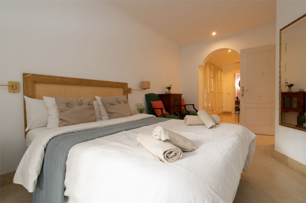 - WHITE PEARL BEACH, ELVIRIA Spacious and bright ground floor apartment situated in a beachfront complex in Elviria. The complex has a direct access to the beach, 2 open swimming pools (one is heated), beautiful well maintained tropical gardens, concierge . The apartment is spacious and full of natural light, the living room and both bedrooms are overlooking the terrace.