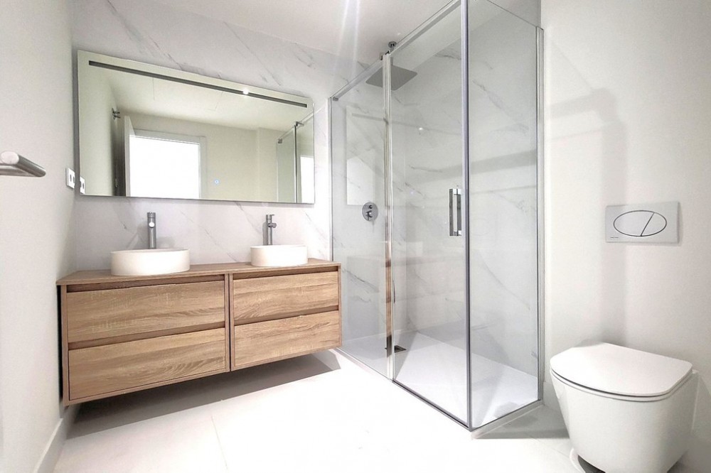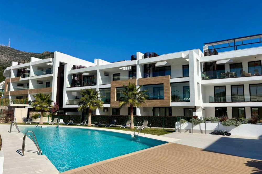 - Brand new south west facing apartment, in an exclusive urbanization in El Higuerón area, with 3 bedrooms and 3 bathrooms, of which 2 are ensuite, spacious living-dining room, open plan kitchen fully furnished and equipped with electrical appliances, spacious terrace of 27m2 with urban and sea views. Master bedroom with ensuite bathroom and direct access to the terrace. Air conditioning hot and cold, video intercom, domotic system, built-in wardrobes in all bedrooms, under floor heating in bathrooms, pre-installation alarm system. Includes two parking spaces and one storage room. Communal areas include swimming pool, gardens, co-work area, sauna and gynmasium.