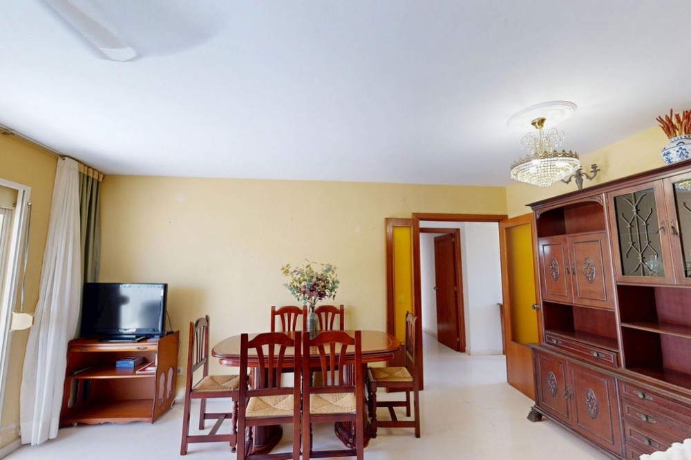 - Fuengirola - Los Boliches. We present the opportunity to acquire a magnificent large apartment in the heart of Fuengirola, one of the most emblematic towns on the Costa del Sol. This spacious property has a total of 121 m², distributed in a functional and cozy way, ideal for any type of family. The property has four double bedrooms, perfect for ensuring the rest and privacy of all its members. The spacious living room offers a bright and warm atmosphere, and from the living room there is access to the glazed terrace, a perfect space to relax, enjoy a good book, or sunbathe. The property is located on the sixth floor of the building, which has an elevator, facilitating access for all its inhabitants. The kitchen is separate and has an adjoining laundry room, where you can keep things tidy and stock cleaning supplies. The apartment also has two bathrooms, and the bedrooms have built-in wardrobes, a great benefit for promoting comfort and organization in the home. A foyer welcomes you into the home, creating a welcoming entrance. Garage space and storage room included in the price. Regarding the property's location in Fuengirola, you'll enjoy proximity to a wide range of services, including the bus stop and train station, supermarkets, local markets, schools, and sports facilities. Everything you need for everyday life will be within easy reach. Furthermore, the area's entertainment options are diverse, with numerous bars, restaurants, and recreational areas, perfect for enjoying local life. In terms of transportation, the location is excellent, with easy access to buses and trains that connect Fuengirola with other towns on the Costa del Sol and Málaga. Don't miss this opportunity to live in a privileged location, where comfort and quality of life come together. Contact us to visit your future home!