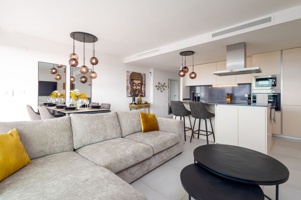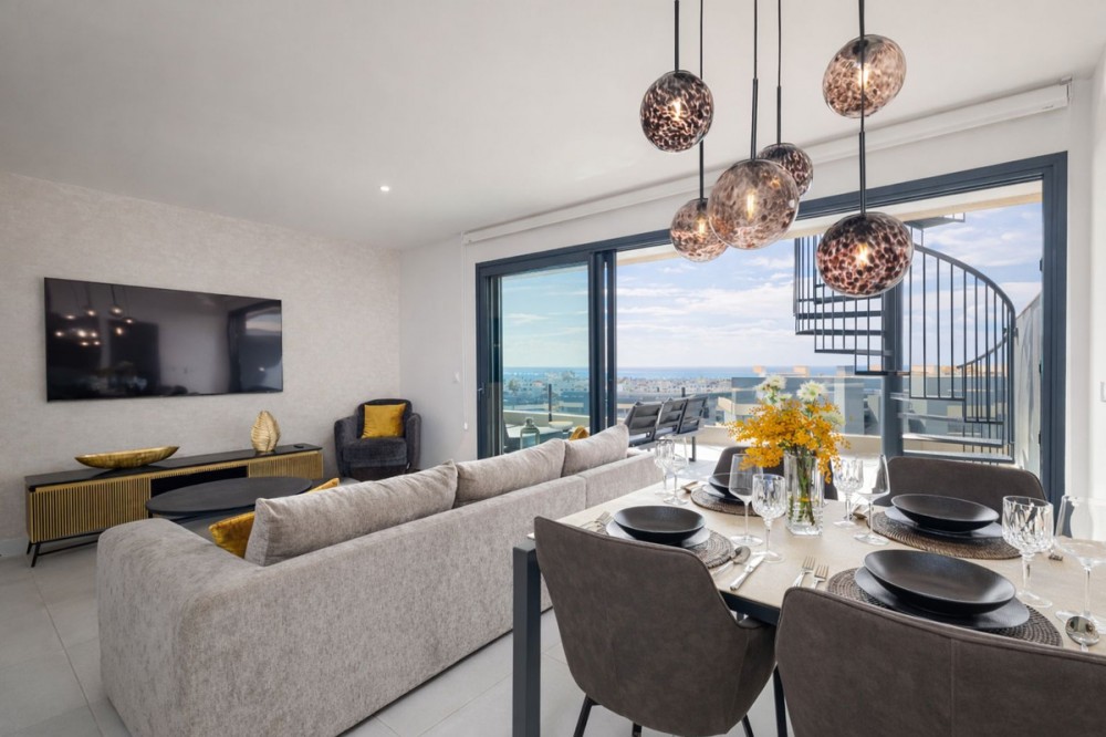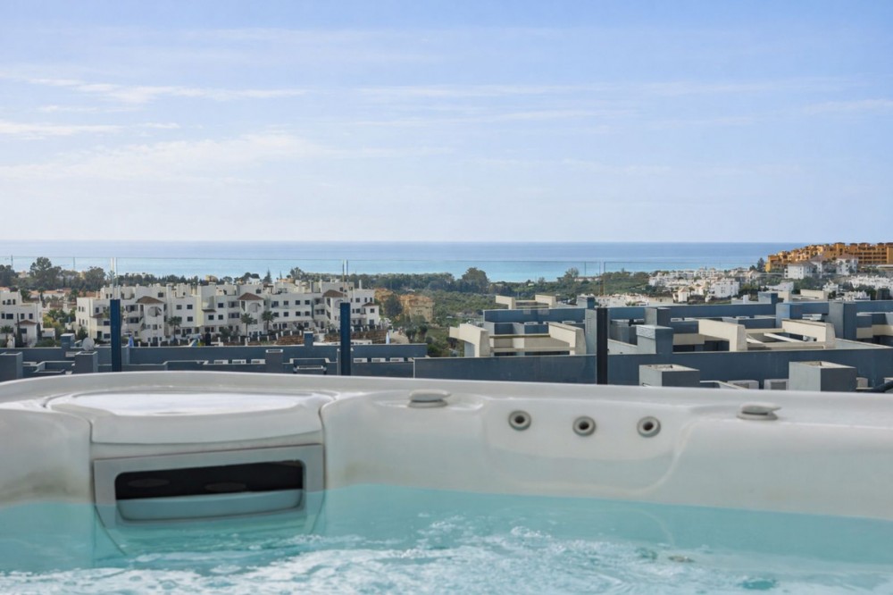 - This luxurious fully furnished 2-bedroom penthouse is located in the modern and highly sought-after Oasis 325 development, in one of the fastest-growing areas between Marbella and Estepona. The property combines contemporary architecture, excellent natural light, and a seamless indoor-outdoor layout, making it ideal both as a lifestyle home and as a secure investment. One of the true highlights is the spacious private rooftop solarium featuring a jacuzzi and breathtaking 360-degree panoramic views of the open sea and surrounding mountains — the perfect setting to enjoy the Mediterranean climate all year round. The elegant living area flows naturally onto a second generous terrace, creating a beautiful sense of openness and comfort. The fully equipped modern kitchen offers clean lines and high-quality finishes. The apartment includes two comfortable bedrooms, two bathrooms, a utility room, and is sold completely furnished, allowing for immediate use or rental without any additional investment. From the apartment, you have direct elevator access to your private storage room and underground parking space. This newly developed resort-style community offers premium amenities such as concierge service, landscaped outdoor swimming pool, heated indoor pool, spa area, gym, and coworking space, features that significantly enhance both lifestyle quality and rental appeal. Location highlights: • Beach approximately 5 minutes by car • Unicornio Beach Club around 5 minutes • Mercadona 3–4 minutes • Atlas American School of Málaga approximately 10 minutes • International Hospital approximately 5 minutes • Quick access to the A7 connecting directly to Marbella and Puerto Banús The property is currently rented with a 1-year contract, rent paid in advance, and the tenant protected by rental default insurance, providing immediate and secure income for the new owner. A unique opportunity for investors seeking a modern sea-view penthouse with strong rental demand and guaranteed return — or, in the future, a private haven on the Costa del Sol. Viewings available by prior appointment.