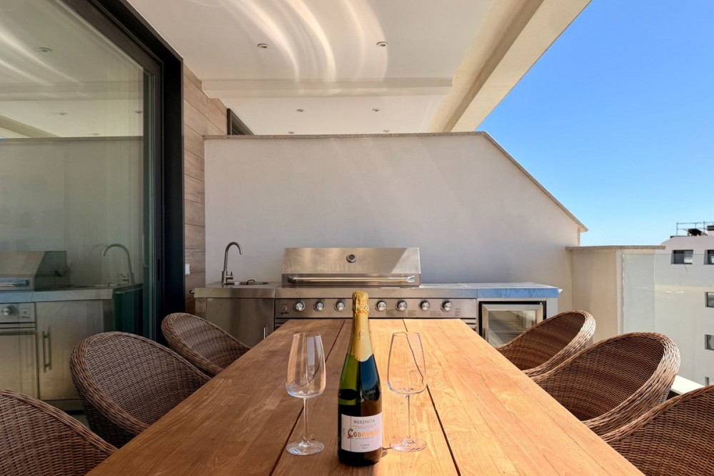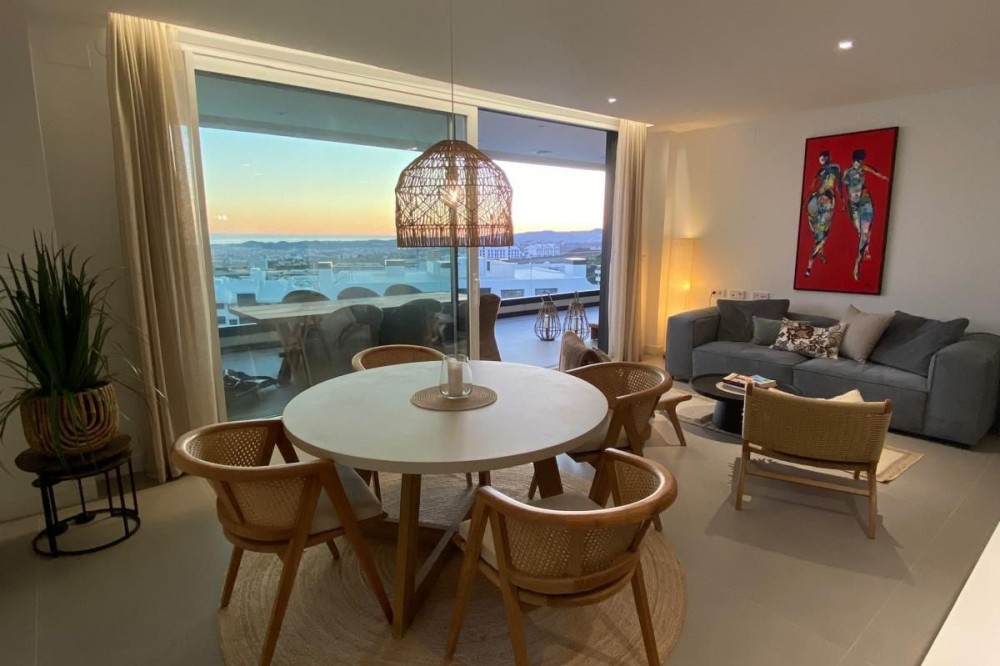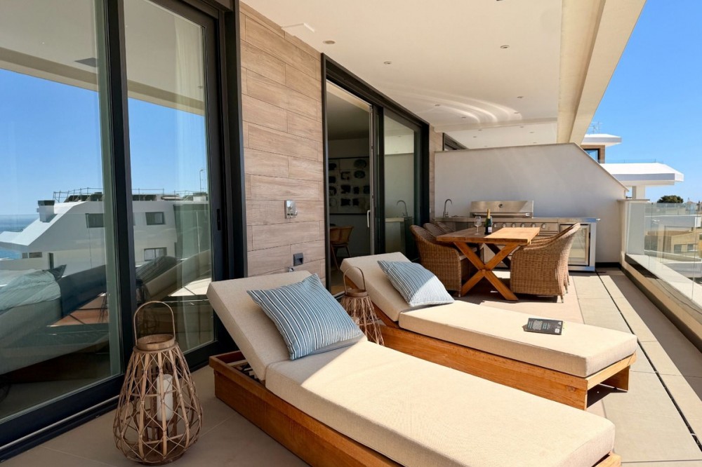 - Exclusive Designer Topfloor apartment with Panoramic Mediterranean Views / Fuengirola - Higuerón A rare opportunity to secure a top-floor designer residence in one of the Costa del Sol’s most sought-after gated communities — where luxury living meets intelligent efficiency. This contemporary penthouse offers breathtaking, uninterrupted views across the Mediterranean Sea, Fuengirola marina, and the coastline — creating a spectacular setting from morning light to evening sunset. Elevated Living with Intelligent Comfort Beyond its striking design, this residence is engineered for year-round comfort with remarkably low running costs — a key advantage for both homeowners and long-term investors. • Private, energy-efficient heat pump system • Individually controls both air conditioning and underfloor heating • Significantly reduced energy consumption compared to traditional systems • Ideal for full-time living or extended stays without high utility expenses This combination of luxury and cost-efficiency is rarely found in properties of this caliber. The Residence • Two spacious bedrooms with bespoke built-in wardrobes • Two refined bathrooms with walk-in showers • Underfloor heating throughout the entire property • Fully integrated air conditioning system • Smart home and security system • Designer kitchen with premium Siemens appliances • Siemens washing machine and tumble dryer included • Expansive private terrace with panoramic sea and marina views Exclusive Community Lifestyle A low-density, high-end environment designed for privacy and well-being: • Two panoramic infinity pools • Indoor heated pool • Fully equipped gym • Sauna and wellness facilities Tourist rentals are not permitted, ensuring a शांत, private atmosphere and protecting long-term property value. Location & Accessibility Located just 15 minutes from Málaga-Costa del Sol Airport, the property offers seamless access to international travel while remaining in a მშვიდ and secure residential enclave. A Smart Luxury Investment This is more than a beautiful home — it is a strategic lifestyle investment: • Low ongoing costs • High build quality and energy efficiency • Strong long-term value in a tightly held community • Rare availability of top-floor units Properties like this are seldom available in Higuerón. Private viewings by appointment only.