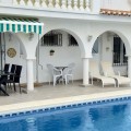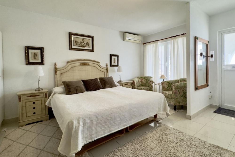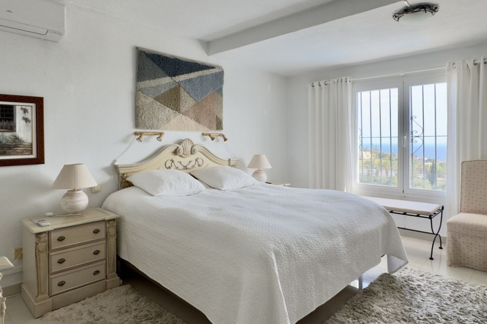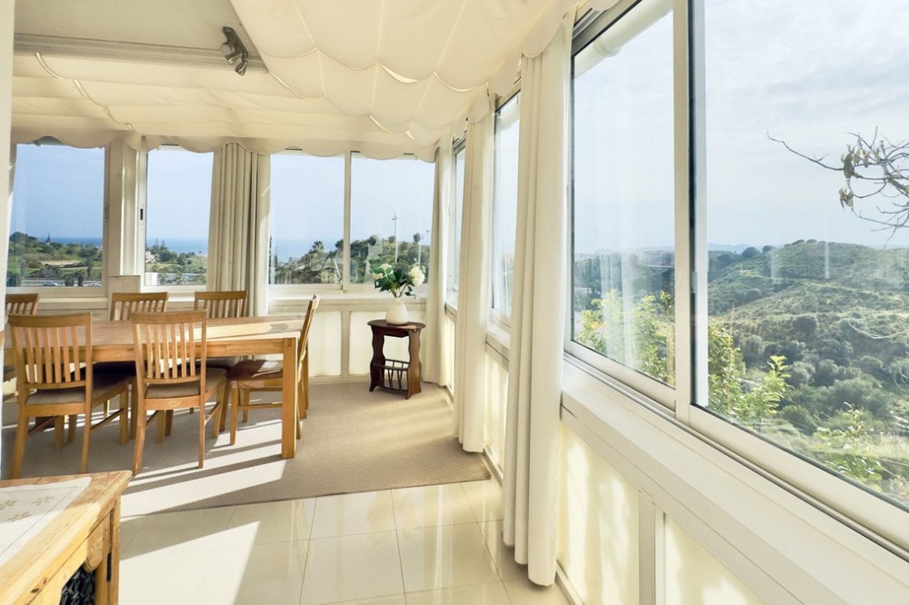 - Villa with sea views in Mijas – a short drive from Fuengirola Welcome to this charming villa located in a peaceful area of Mijas, just a short drive from the beaches, restaurants and services of Fuengirola, as well as the prestigious El Higuerón area. The property enjoys pleasant views of the sea and mountains. The villa features a private heated swimming pool, a beautifully maintained garden and a tourist rental license, making it an excellent option both for private use and as an investment. Highlights Tourist rental license Sea and mountain views Private heated swimming pool Sauna and wellness area Solar panels Beautiful garden Two independent living levels Garage for two cars Short drive to Fuengirola and the beach The villa is distributed over two independent living levels, allowing flexible use for living or rental. The property currently offers four bedrooms, four bathrooms, two fully equipped kitchens and two living rooms, as well as a laundry room and additional spaces that can be used as guest rooms. The lower level includes spacious living areas, two bedrooms, two bathrooms, a wine cellar and a sauna area with a dressing room and showers. The upper level features another fully equipped kitchen, an open living and dining area, two bedrooms, two bathrooms, a multipurpose room and a large glazed terrace with views towards the sea and mountains. Several terraces and the carefully maintained garden provide the perfect setting to enjoy the Costa del Sol climate all year round.