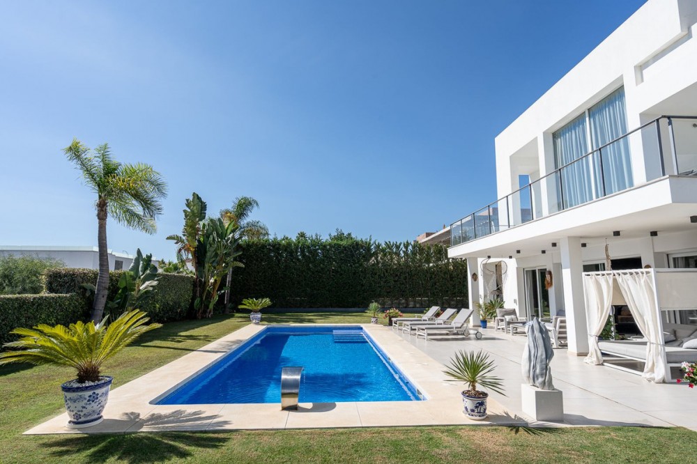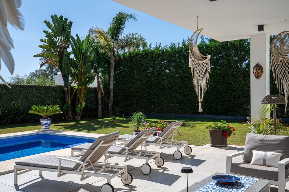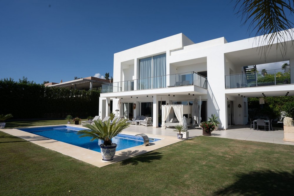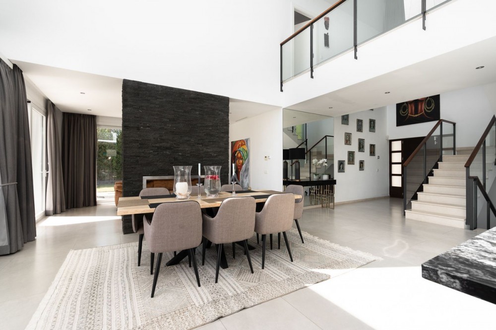 - Contemporary Villa with Panoramic Views in La Quinta This stunning modern villa offers open views over the Golf Valley, La Concha Mountain, and the Mediterranean Sea, perfectly positioned in a quiet and sought-after area of La Quinta, just a 3-minute walk from the prestigious Westin La Quinta Hotel. The villa combines elegant architecture with functionality and comfort, featuring bright, spacious interiors and beautifully designed outdoor spaces. Property Layout Ground Floor: An impressive entrance hall with double-height ceilings welcomes you into the home, leading to a modern fully fitted kitchen equipped with premium appliances, a bright living area with fireplace, and a guest bedroom with an en-suite bathroom. Expansive terraces surround the entire house, seamlessly connecting indoor and outdoor living. First Floor: Two elegant bedrooms, each with its own en-suite bathroom and direct access to a private terrace, offering wonderful views and plenty of natural light. Lower Level (-1): An additional bedroom with bathroom, a large utility area with laundry and storage room, plus a spacious multipurpose room ideal for a home cinema, gym, office, or wellness area. This level also features a garage for 3–4 cars, with ample space for bicycles or motorbikes. The villa is tastefully decorated and filled with natural light throughout. The double-height ceilings in the entrance hall and dining area create an enhanced sense of space and elegance. A spectacular rooftop terrace offers breathtaking panoramic views—perfect for relaxation or entertaining. The outdoor areas are beautifully designed and include generous terraces, a swimming pool, and a spacious landscaped garden, providing the perfect balance between comfort, privacy, and style. Ideally located just a few minutes’ drive from Puerto Banús, this exceptional property enjoys proximity to five renowned golf courses, fine restaurants, and boutique shops, making it the perfect choice for those seeking a luxurious Mediterranean lifestyle. Airport in Malaga just 35 min drive, center of Marbella 15 min drive.