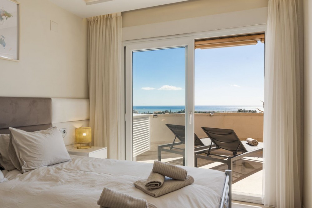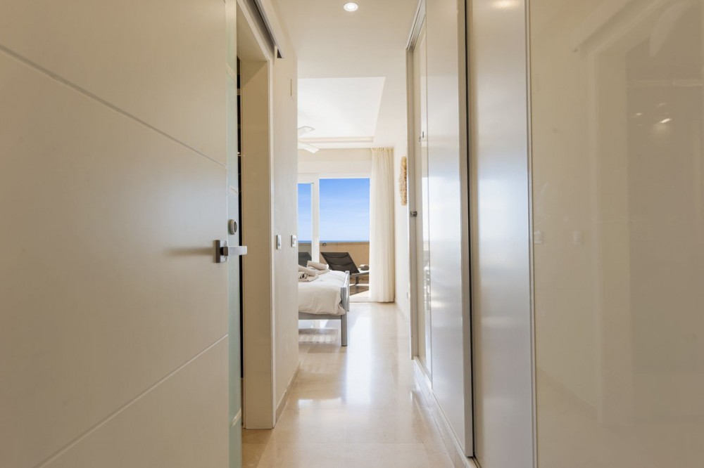 - Apartment with Stunning Sea Views on the Costa del Sol – Comfort, Tranquility, and Prime Location on “The New Golden Mile” Dreaming of living under the Spanish sun, with panoramic sea views and all amenities within reach? This spacious and stylishly finished apartment on the beautiful Costa del Sol offers everything you are looking for. The property features 2 comfortable bedrooms and 2 modern bathrooms, ideal for a family, permanent residence, winter getaway, or as a rental investment since the apartment has a short term license. The bright and inviting living room seamlessly connects to the large balcony, where you can enjoy spectacular sea views every day. Start your morning with a cup of coffee in the sun and end your day with a glass of wine while watching a breathtaking sunset. The fully equipped kitchen provides all the conveniences, while air conditioning ensures a comfortable indoor climate all year round. Additionally, the apartment includes an underground private parking space and access to a refreshing communal swimming pool, perfect for relaxing under the Spanish sun. Golf enthusiasts will be delighted: the renowned La Resina Golf & Country Club is just minutes away. Beaches, shops, and restaurants are also nearby, offering the perfect combination of tranquility and vibrancy. Whether you are looking for a second home, an investment, or a permanent seaside residence – this apartment offers comfort, views, and location all in one.