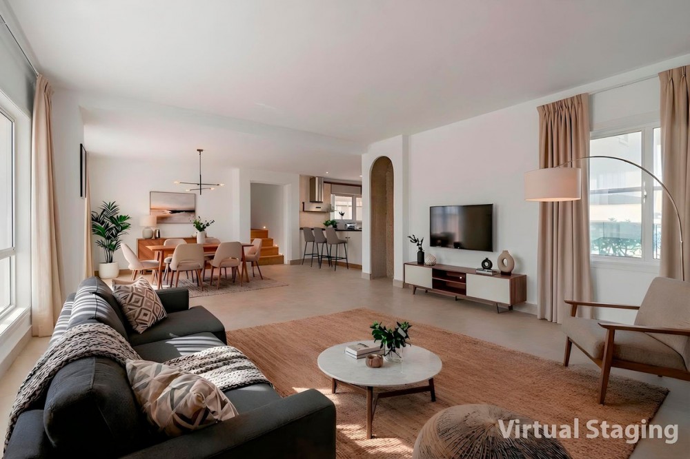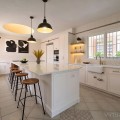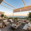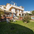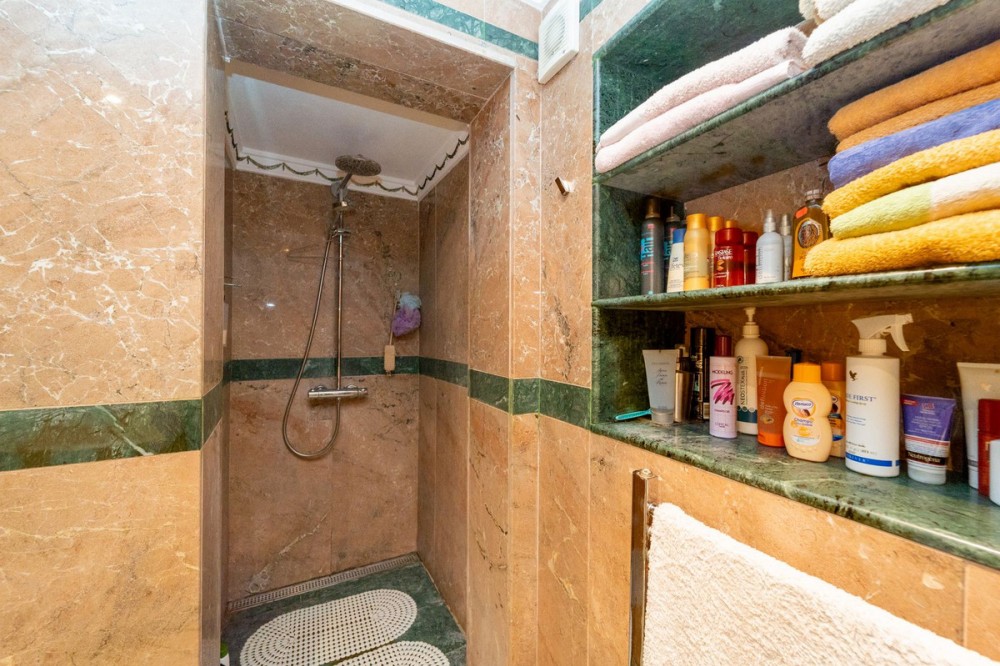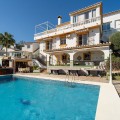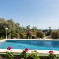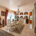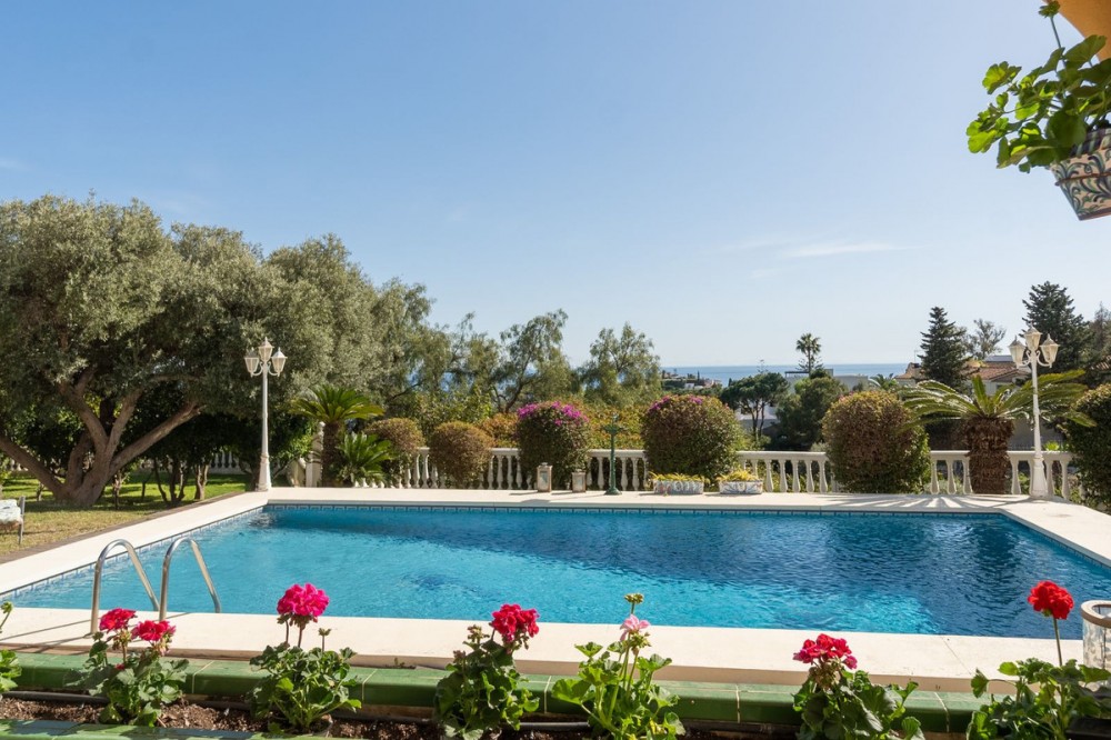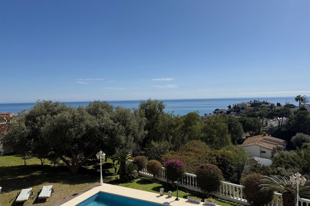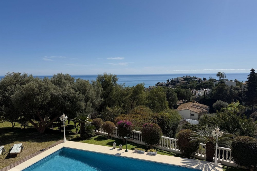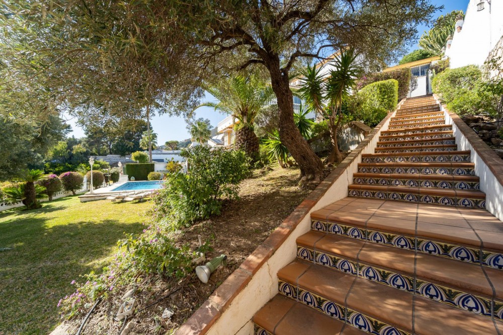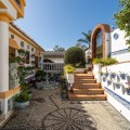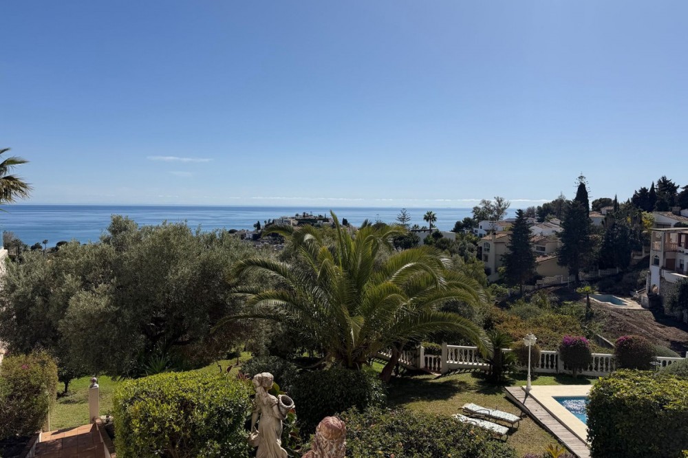 - Exclusive Andalusian-Style Villa with Panoramic Sea Views in Torremuelle Imagine waking up every morning in a magnificent Andalusian-style villa where timeless architecture blends seamlessly with the natural beauty of the Mediterranean surroundings. Set on an expansive plot of approximately 1,500 m², this remarkable property offers an exceptional lifestyle, with breathtaking sea views that can be enjoyed from almost every corner of the home. Upon arrival, the main entrance is framed by two spacious garages and leads to a charming private terrace designed in the style of a traditional Andalusian courtyard. Surrounded by colourful flower pots and authentic Granada ceramics, this peaceful space invites you to relax and enjoy the tranquil atmosphere that defines this unique residence. A welcoming porch supported by elegant columns leads you inside, revealing the character and charm of the villa. The entrance hall, reflecting classic Andalusian design, opens into the main living room — a bright and inviting space that connects directly to a large terrace. Here, you can imagine enjoying family breakfasts while admiring the spectacular sea views. Featuring marble floors, a fireplace, and air conditioning, this living area becomes the heart of the home and the perfect setting for unforgettable moments. The kitchen is equally impressive, highlighted by a beautiful Mudejar-style arched skylight that fills the room with natural light and vibrant colours. Adjacent to the living area, you will find a bedroom with sea views as well as an independent study, ideal as a home office or guest accommodation. The level offers three additional bedrooms, all fitted with generous built-in wardrobes. The master suite with an en-suite bathroom and a walk-in wardrobe. This level also features a large living room with a library and a dining area that comfortably accommodates your guests around a solid wood dining table, making it perfect for hosting memorable gatherings. From here, you can access a beautiful private wine cellar, an ideal feature for wine enthusiasts. The villa continues to surprise with a charming traditional Andalusian-style bar and entertainment area, complete with a spacious lounge and bar — the perfect setting for unforgettable celebrations with family and friends. There is also a large bathroom on this floor. The exterior spaces are equally impressive. A lush garden surrounds the swimming pool and jacuzzi, while a fully equipped terrace and a covered barbecue area create the ideal setting for outdoor dining and entertaining. A newly installed outdoor Finnish sauna adds an extra touch of luxury and wellness to everyday living. The garden also features fruit trees and a charming greenhouse, making it a dream for gardening enthusiasts, all framed by elegant stone pillars and enhanced by breathtaking sea views. Located in Torremuelle, one of the most exclusive residential areas of the Costa del Sol, this villa is ideally positioned close to international schools and just five minutes from the beach, shops, and restaurants, offering both privacy and convenience.