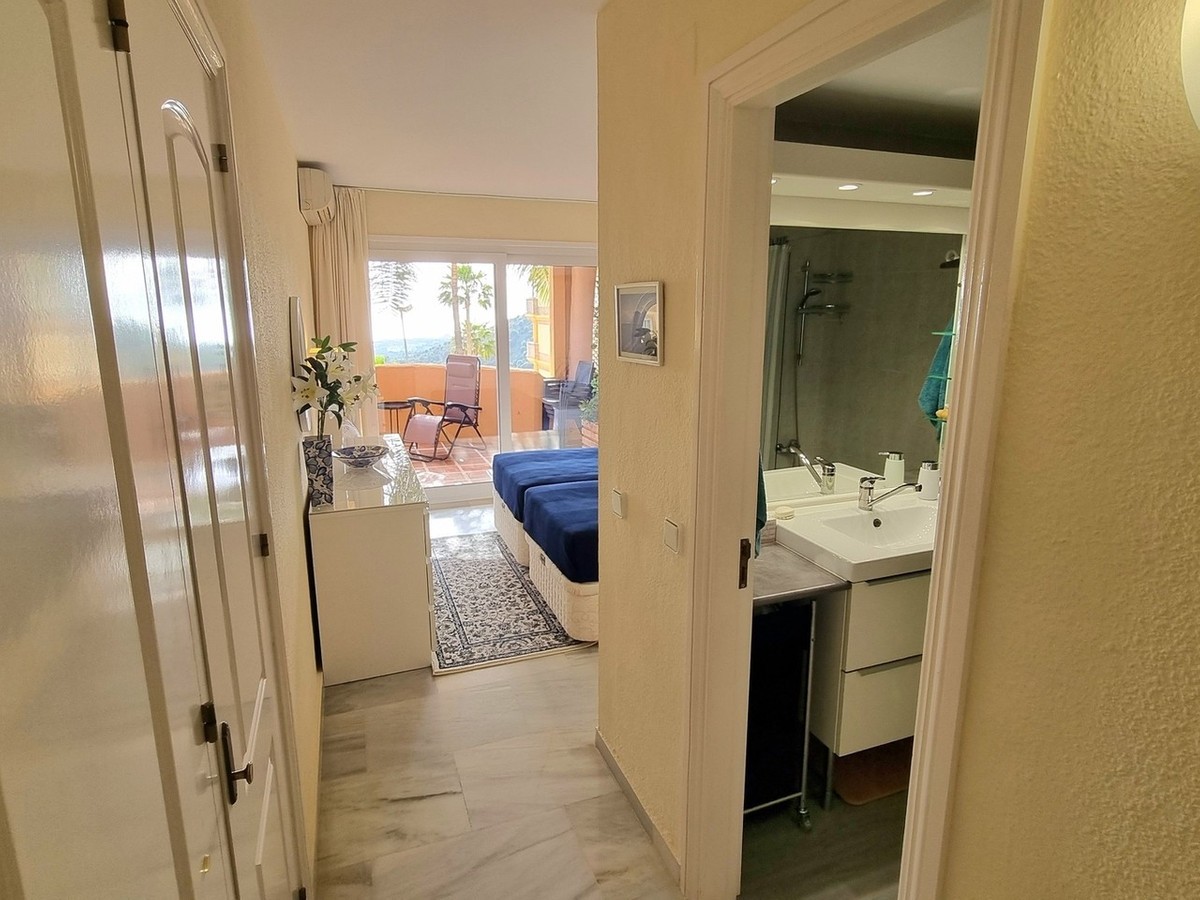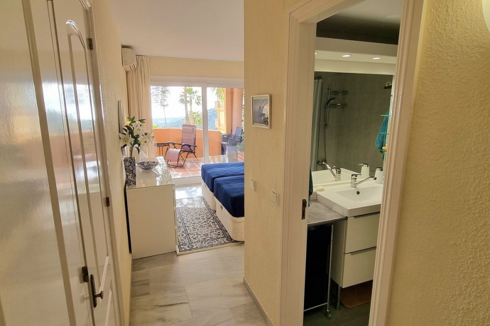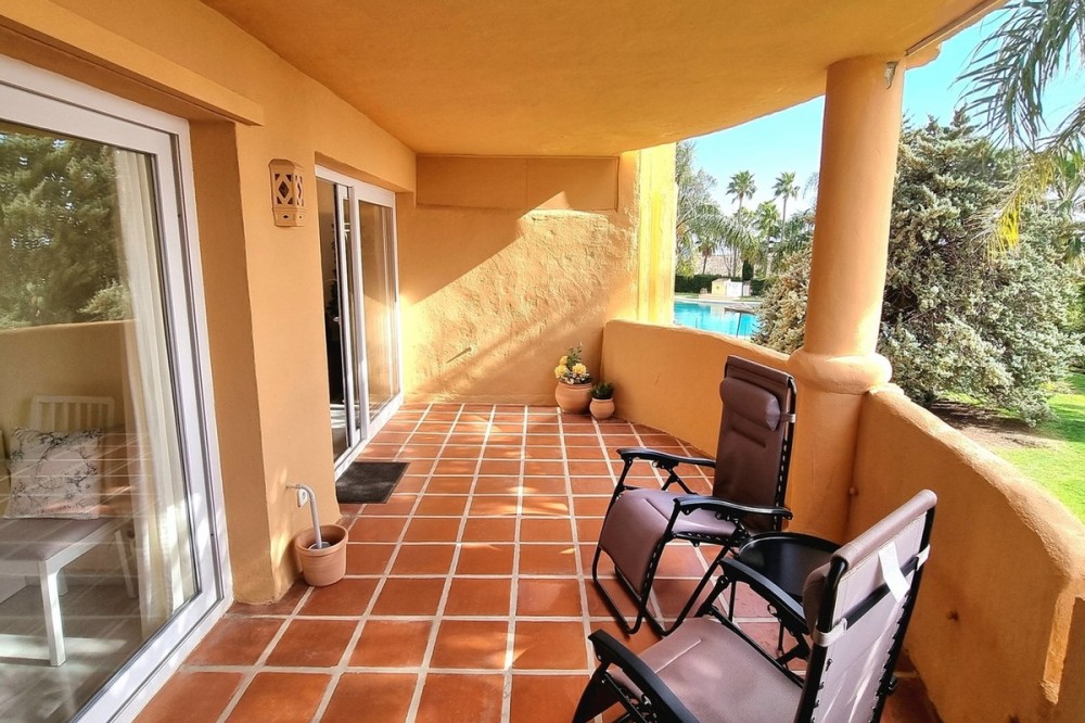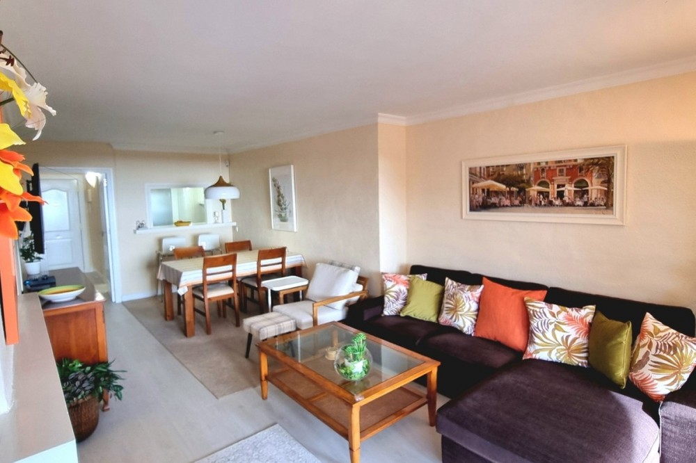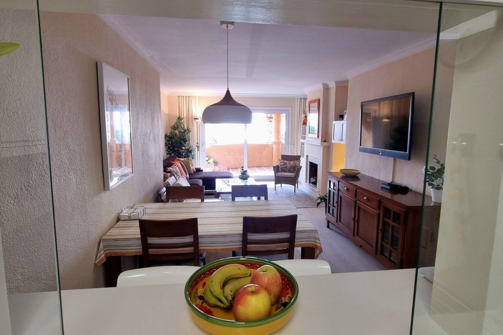 - This inviting first‑floor apartment in the sought‑after El Porton community in Calahonda offers generous space, modern comfort and a wonderfully relaxed Mediterranean lifestyle. The home features two bedrooms and two bathrooms, including a main bedroom with an en‑suite bathroom, built‑in wardrobes and direct access to the large covered terrace. From here, you can enjoy southwest orientation, views over the gardens and a glimpse of the sea, creating an ideal spot for outdoor dining or unwinding in the sun. The interior layout is bright and practical, with a fully fitted kitchen that was renovated just two and a half years ago and includes a separate utility room housing the boiler and washing machine. Spacious and bright lounge which can easily accomodate a large sofa, dining table and units. Air conditioning ensures comfort throughout the year. El Porton is a secure, gated community with communal off‑street parking and two swimming pools, one of which remains open all year. Its elevated position offers tranquillity while still being conveniently located just a five‑minute drive from local shops and seven minutes from the coast. Whether you’re looking for a permanent residence, a lock‑up‑and‑leave second home or a property with rental potential, this apartment is an excellent option. The community currently allows new tourist licence applications, adding further appeal for investment‑minded buyers. Contact us to arrange a viewing * Build Size 104 m² * Communal Pool * Mains Water * Mains Electric * Telephone Possible * Internet Possible * Furniture Negotiable * Air Conditioning * Disabled Friendly * Private Terrace * Communal parking * 7 minutes drive to the beach * 5 minutes drive to the shops * Communal fees: €142,00 per month * IBI property tax: €386,00 per annum * Refuse fees: €78,00 per annum * Lift