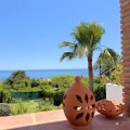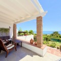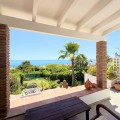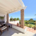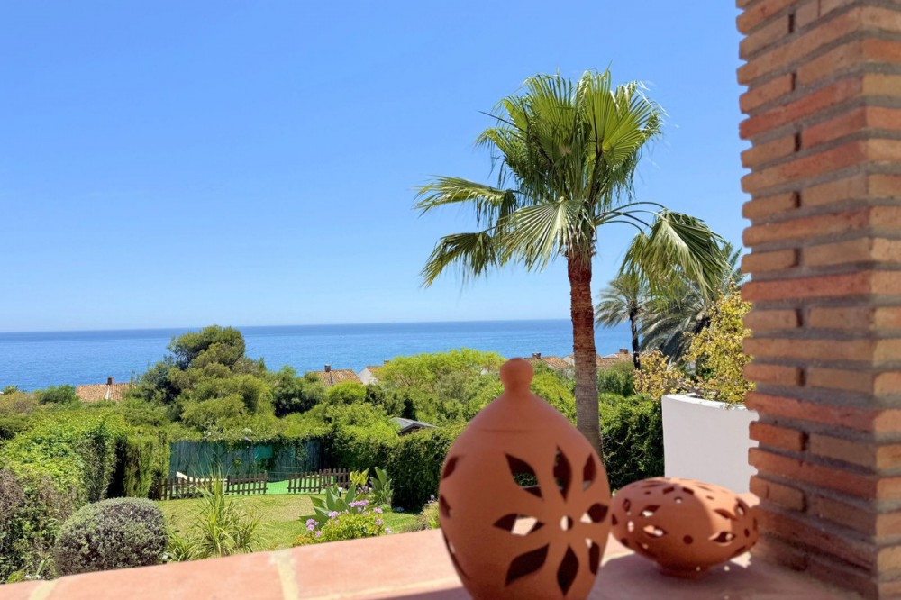 - Semi-detached villa with a tourist license, located in the Bahía Dorada urbanization in Estepona, just 400 meters from the beach, in one of the most privileged areas of the coast, offering spectacular panoramic views of the Mediterranean Sea. The property is only 15 minutes from Puerto Banús and close to several golf courses, making it an excellent choice as a permanent residence, holiday home, or investment for vacation rentals. Fully renovated and impeccably presented, the villa sits on a 600 m² plot. It features 3 bedrooms, 2 full bathrooms, and a spacious, bright living room with large windows that allow you to enjoy the sea views. The kitchen is fully equipped and also includes a separate laundry room and storage space. Outside, the property offers two pleasant terraces, one with a barbecue area, perfect for enjoying the outdoors, all surrounded by well-maintained gardens that provide privacy and a peaceful setting. The urbanization offers extensive communal areas with 6 large swimming pools surrounded by gardens and a tennis court for residents’ enjoyment. High-quality finishes include pearl-coated walls, floating wood floors, and Climalit windows. The living room blinds are automatic, and the garden features lighting controlled by a smart home system, along with an automatic irrigation system for easy maintenance. A property that stands out for its location, sea views, and high level of comfort.