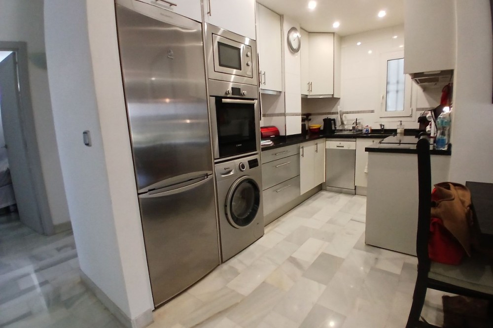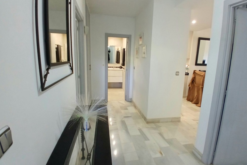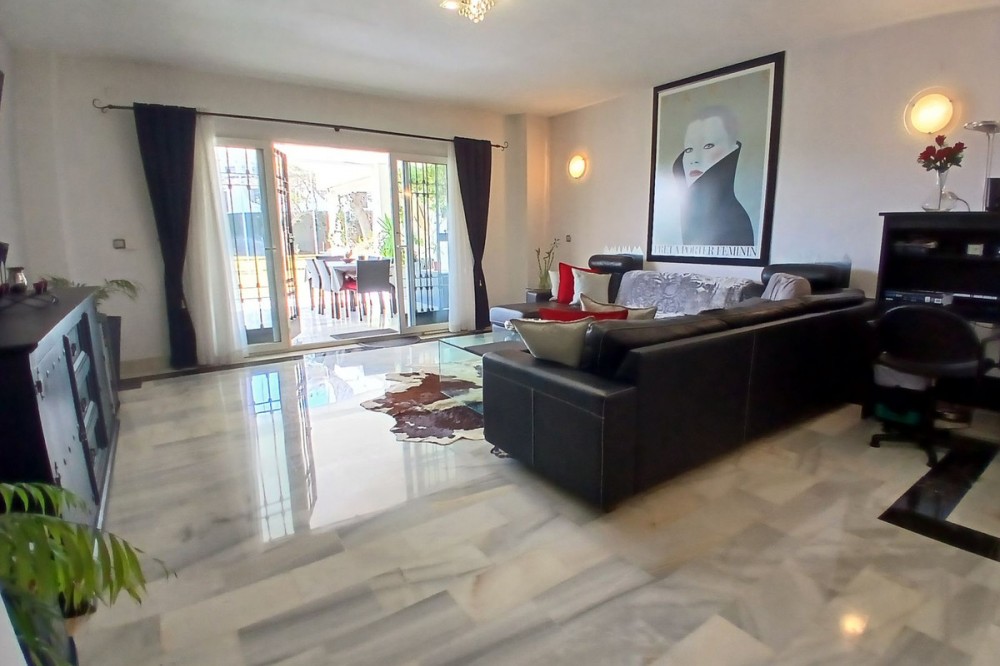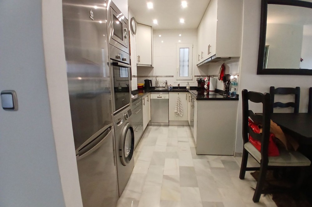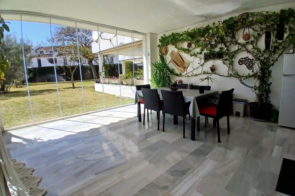 - SPACIOUS BEACHSIDE APARTMENT WITH LARGE SOUTH-FACING TERRACE This spacious and beautifully maintained apartment is located in a peaceful beachside urbanisation within walking distance of the beach and local amenities. The property offers a generous living and dining area with elegant marble flooring and direct access to a large south-facing covered terrace. The terrace has been enclosed with glass curtains, creating a wonderful additional living space that can be enjoyed throughout the year — open during the summer for fresh air or enclosed in the cooler months to create a comfortable sunroom. The apartment has recently been renovated and is ready to move into. It features a modern fully fitted kitchen and two stylishly renovated bathrooms with underfloor heating for added comfort. The property offers two spacious double bedrooms, including a master bedroom with en-suite bathroom, as well as a third smaller bedroom which is perfect as a children’s bedroom, guest room or home office. Located within a gated beachside community with beautifully maintained gardens and a pleasant mix of permanent residents and holiday homes, the apartment offers both tranquillity and convenience. Additional features include two private parking spaces and a storage room. Thanks to its generous layout, south-facing orientation and excellent beachside location, this property is ideal as a permanent residence or holiday home on the Costa del Sol. Ground Floor Apartment, Calahonda, Costa del Sol. 3 Bedrooms, 2 Bathrooms, Built 157 m², Terrace 30 m². Setting : Beachfront, Beachside, Close To Shops, Close To Sea, Close To Schools, Urbanisation, Front Line Beach Complex. Orientation : South, South West. Condition : Excellent, Recently Renovated, Recently Refurbished. Pool : Communal. Climate Control : Air Conditioning, Pre Installed A/C, Hot A/C, Cold A/C, U/F/H Bathrooms. Views : Garden. Features : Covered Terrace, Fitted Wardrobes, Near Transport, Private Terrace, WiFi, Storage Room, Ensuite Bathroom, Access for people with reduced mobility, Marble Flooring, Double Glazing. Furniture : Optional. Kitchen : Fully Fitted. Garden : Communal. Security : Gated Complex, Entry Phone, Alarm System. Parking : Underground, More Than One. Utilities : Electricity, Drinkable Water. Category : Beachfront, Holiday Homes, Resale.