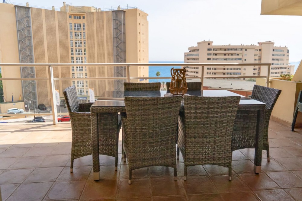 - Apartment in the Torreblanca area with sea views from the terrace and tourist license – an ideal investment. Presenting a bright and beautifully maintained apartment with tourist license in the highly sought-after Torreblanca area of Fuengirola. This residence offers a seamless blend of beachside living and modern convenience, making it perfect as a holiday retreat, permanent home, or high-yield investment. The property boasts a spacious, thoughtfully designed layout with abundant natural light flowing through the generous living and dining area. From here, step onto a private terrace where you can enjoy the panoramic views of the Mediterranean coastline and Fuengirola. Inside, the apartment is in excellent condition and exudes warmth and comfort. It features well-proportioned bedrooms and a fully equipped kitchen with wooden finishes. Each space is move-in ready, allowing for immediate enjoyment of the coveted coastal lifestyle. The community complements the apartment with a serene, landscaped environment, including a swimming pool. The location is unparalleled for convenience: a short walk to sandy beaches and popular “chiringuitos,” while Torreblanca train station offers direct access to Málaga city and the airport. Ideal for those seeking a tranquil seaside sanctuary or a smart investment in one of Fuengirola’s prime residential areas, this apartment presents a rare opportunity to embrace the best of the Costa del Sol lifestyle.