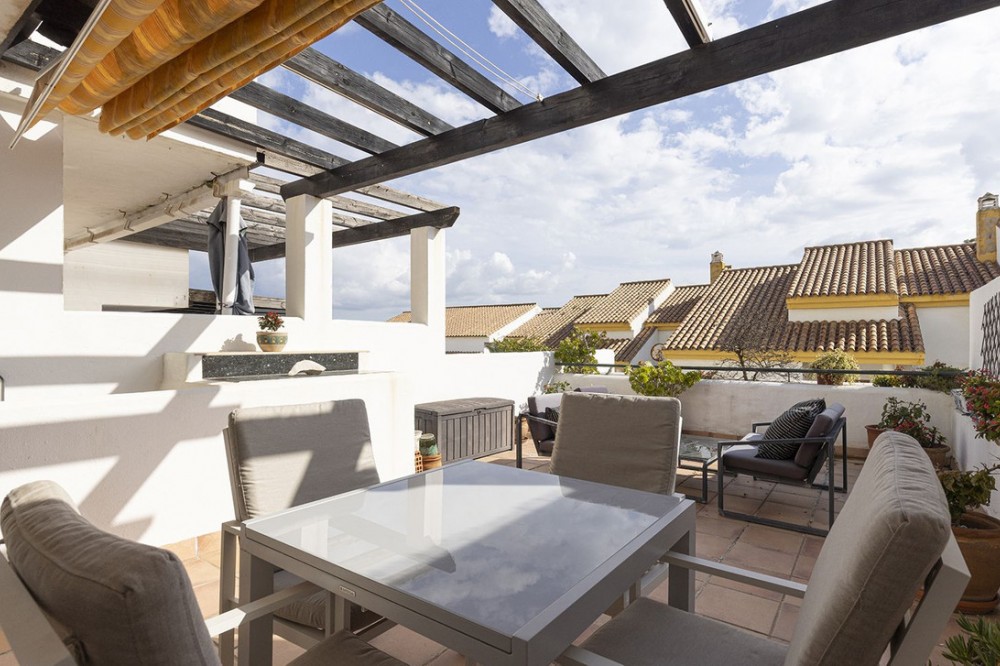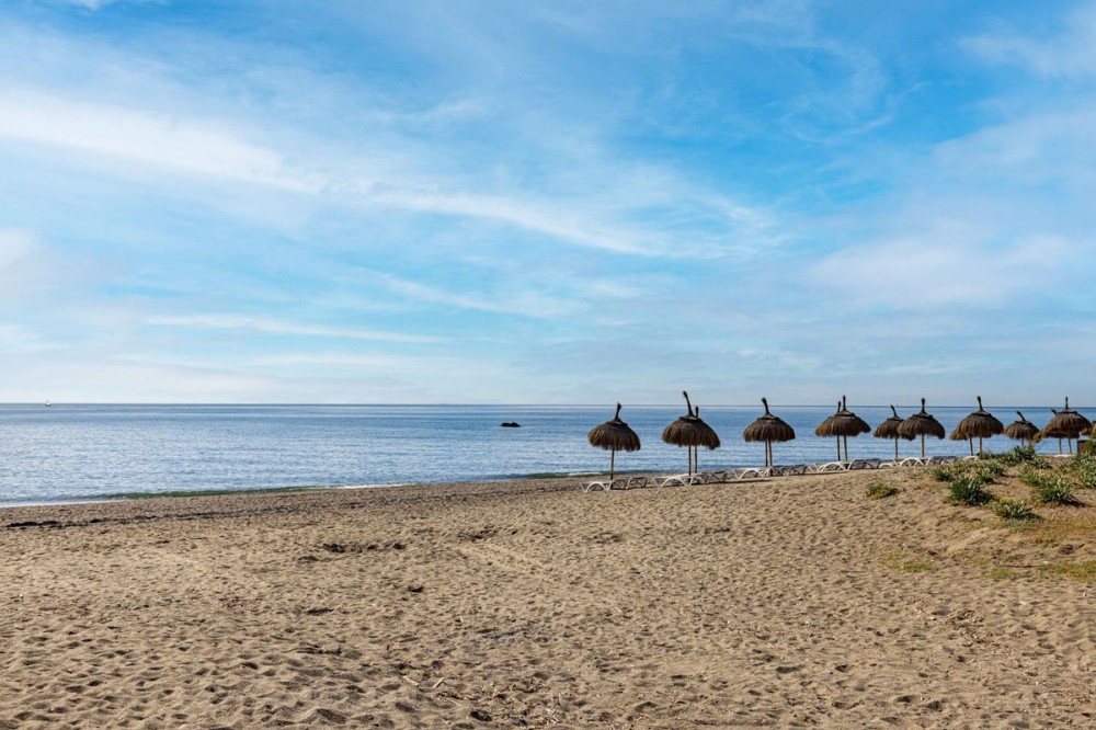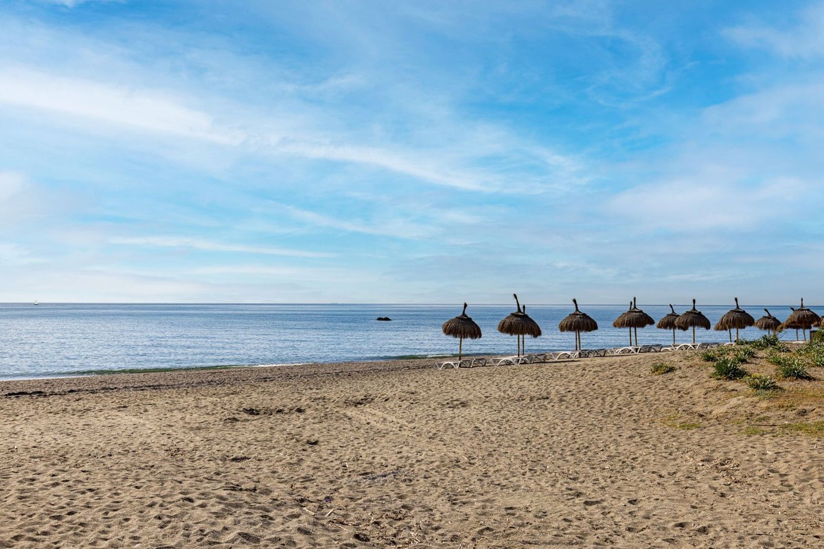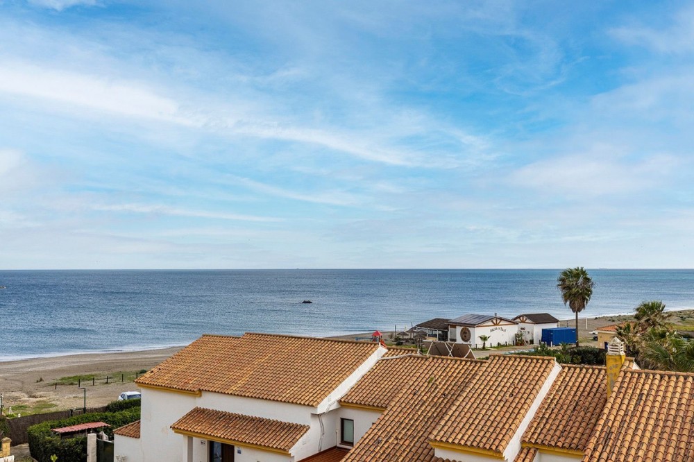 - Spacious Beachfront Family Home with Incredible Sea Views and Expansive Terraces. Wake up to the sound of the waves in this substantial south-facing beachfront home, ideally located within a sought-after coastal community, walking distance to La Duquesa Marina. Offering generous living space, multiple terraces, and breathtaking Mediterranean views, this property perfectly combines comfort, privacy, and the relaxed Costa del Sol lifestyle. The home also benefits from a large private garage with extensive storage. The main living level features a bright and spacious open-plan living and dining area with French doors opening onto a large sea-view terrace—ideal for al fresco dining while taking in the coastal scenery. This floor also offers a fully fitted kitchen with a separate laundry area, as well as a convenient guest toilet. Upstairs you will find three generous double bedrooms, including a superb master suite with its own bathroom and a private terrace overlooking the sea. The two additional bedrooms share a well-appointed family bathroom. The top floor hosts a private fourth bedroom suite with an en-suite bathroom and its own terrace, where the most spectacular sea and beach views can be enjoyed. This versatile space is perfect as a guest suite, home office, or peaceful private retreat. The property is set within a beautifully maintained beachfront community featuring lush landscaped gardens and a large swimming pool, ideal for enjoying the year-round sunshine. A popular beach bar located nearby adds to the vibrant coastal atmosphere during the warmer months, while Marina Duquesa is just a scenic 20-minute walk along the beach, offering a variety of restaurants, cafés, and marina life. The vibrant town of San Luis de Sabinillas hosts all local amenities and is just a five minute drive away, making for a highly convenient lifestyle. This is a rare opportunity to acquire a spacious beachfront home with outstanding sea views, generous living space, and an unbeatable coastal location. Viewings easily arranged.