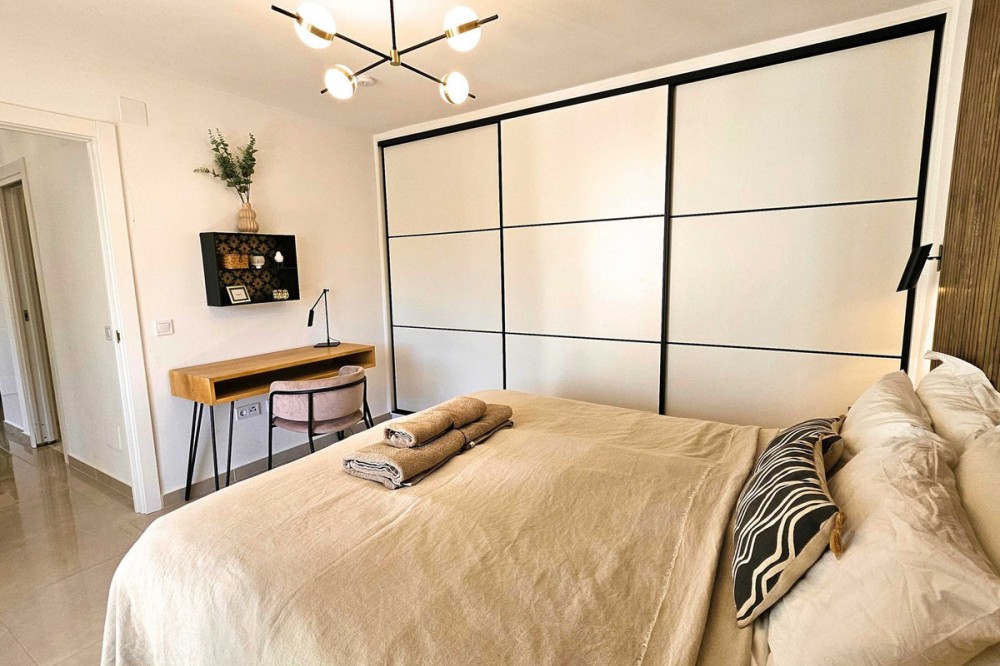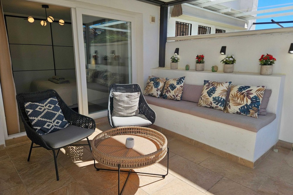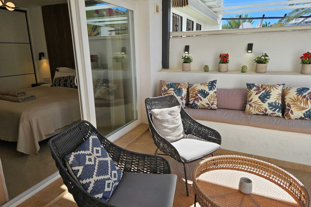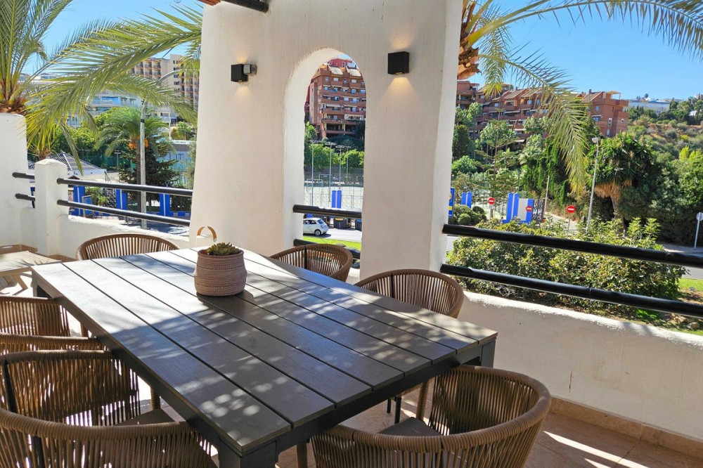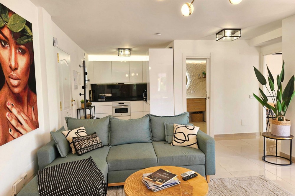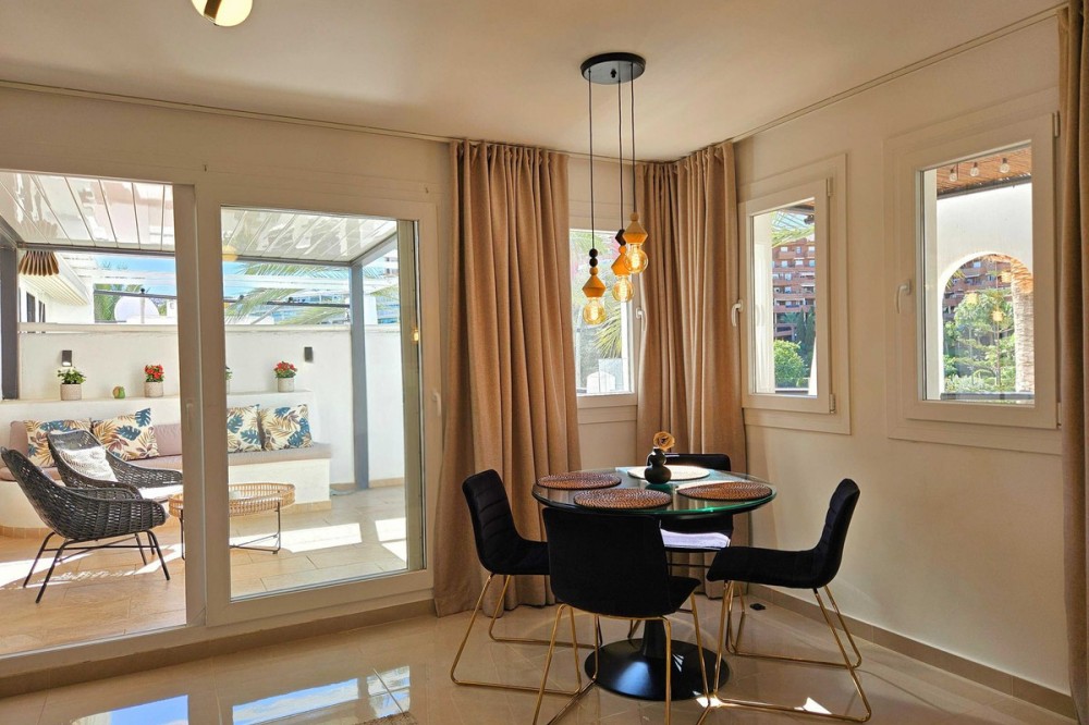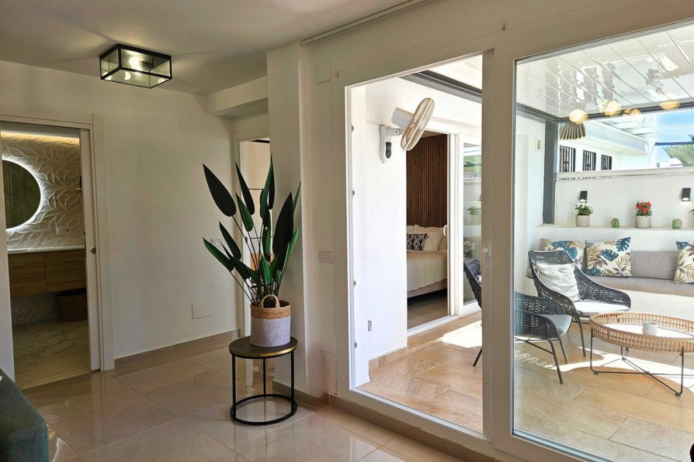 - Renovated with tourist licence and large terrace 500 m from the beach. Large terrace with possibility to make a second bedroom. Close to all basic services and 500 metres to the beach (3 minutes walking distance). Supermarket just in front, bus stop, many restaurants and shops. Located in the well known urbanization Pueblo Evita, in the Avenida de las Palmeras (Benalmádena Costa), this flat represents an excellent opportunity either as a permanent residence, second home or holiday rental investment, as it has a tourist license. Pueblo Evita is an Andalusian style residential complex with great charm, highly valued for its "white village" aesthetics and its peaceful atmosphere. It stands out especially for its strategic location: just 3 minutes walk from the beach and surrounded by all kinds of services, such as supermarkets, restaurants, public transport and leisure areas. User reviews consistently highlight the excellent location, the proximity to the beach and the convenience of having everything at hand without the need for a car, as well as its pleasant communal areas and swimming pools. The property, located in Calle Palmito 1, on the first floor, has 85 m² constructed area and has been completely refurbished in 2025 with high quality materials, offering a modern and ready to move in condition. Its west orientation allows to enjoy a magnificent luminosity especially during the afternoon, creating a warm and cosy atmosphere. Sold fully furnished, ready to move in or start renting out. It has 1 bedroom and 1 bathroom, with a functional and well used distribution. One of its great attractions is its large terrace, a highly valued outdoor space in this urbanization, with enough space to enable a second rest area or even a second bedroom, which significantly increases its potential both residential and profitability. The complex offers a well-kept environment, with several communal swimming pools and communal areas that invite you to relax, being an option especially sought after by families and tourists. In terms of location, it is located in one of the most consolidated areas of Benalmádena Costa, with a supermarket just in front, a bus stop nearby and a wide range of restaurants and shops in the surrounding area. Furthermore, the beach is only 500 metres away, which allows you to enjoy the sea in just 3 minutes walking. This property combines three key factors: location, potential and quality of refurbishment. It is ideal both for those looking for a comfortable home on the Costa del Sol, as well as for investors who want a property in high demand for holiday rentals, thanks to the attractiveness of the area and the characteristics of the complex. In short, an opportunity to acquire a property in one of the most sought after urbanisations in Benalmádena, where quality of life and profitability go hand in hand.