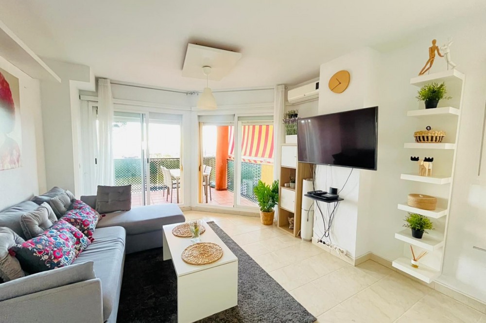- Beautiful apartment for sale in Riviera del Sol with sea views. Very well presented, this property offers 2 double bedrooms with en suite bathrooms, fully equipped kitchen with utility and lounge dining with terrace and pleasant views. It is set in an enclosed urbanisation with pool and gardens. The property comes with a parking space included in the price and stays furnished. Very bright and sunny, you will love it. Middle Floor Apartment, Riviera del Sol, Costa del Sol. 2 Bedrooms, 2 Bathrooms, Built 89 m², Terrace 8 m². Setting : Suburban, Close To Golf, Urbanisation. Orientation : South. Condition : Excellent. Pool : Communal. Climate Control : Air Conditioning. Views : Sea, Garden, Pool. Features : Covered Terrace, Lift, Fitted Wardrobes, Private Terrace, WiFi, Utility Room, Ensuite Bathroom, Disabled Access, Marble Flooring, Double Glazing, Fiber Optic. Furniture : Fully Furnished. Kitchen : Fully Fitted. Garden : Communal. Security : Gated Complex, Entry Phone, 24 Hour Security. Parking : Underground, Private. Utilities : Electricity. Category : Holiday Homes, Resale.