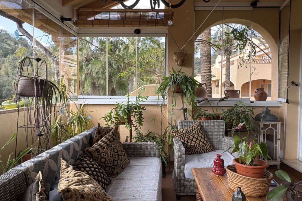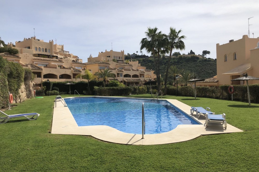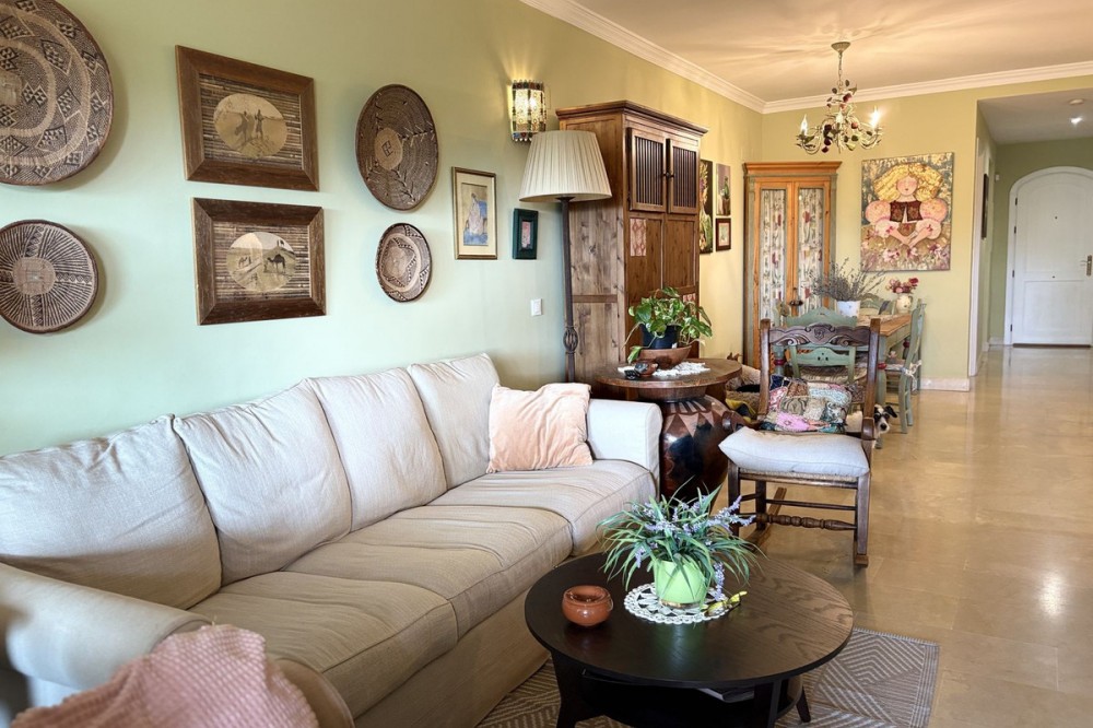 - Stunning ground floor corner apartment with its own private garden. It offers tranquility, privacy, and a prime location near Elviria. The Santa Maria Village complex features four adult pools and four children's pools, as well as numerous gardens and relaxation areas. The apartment includes a parking space and storage room. Don't wait any longer, come and see it!