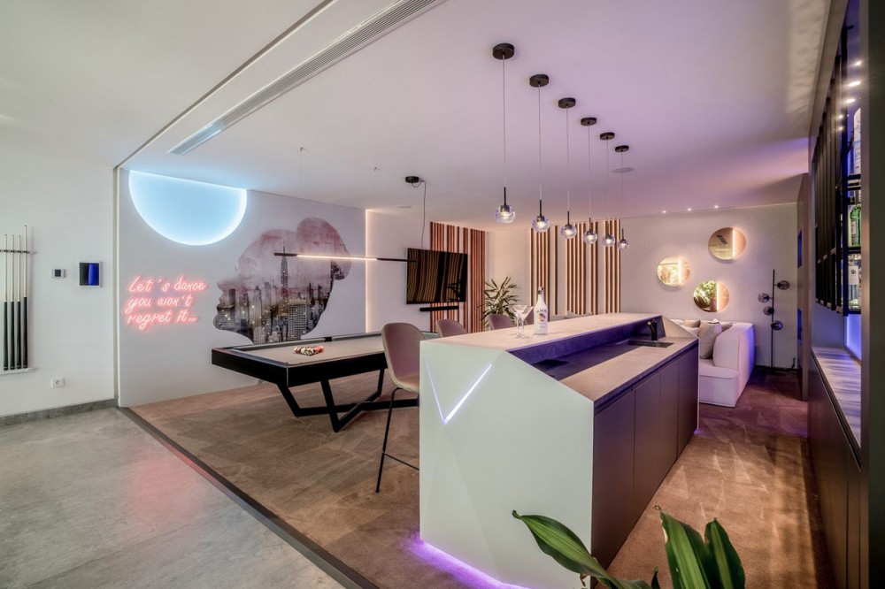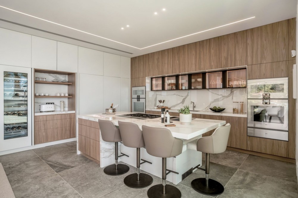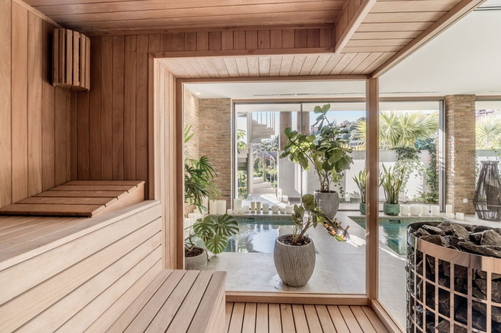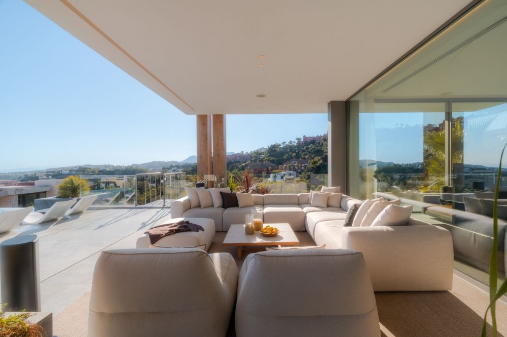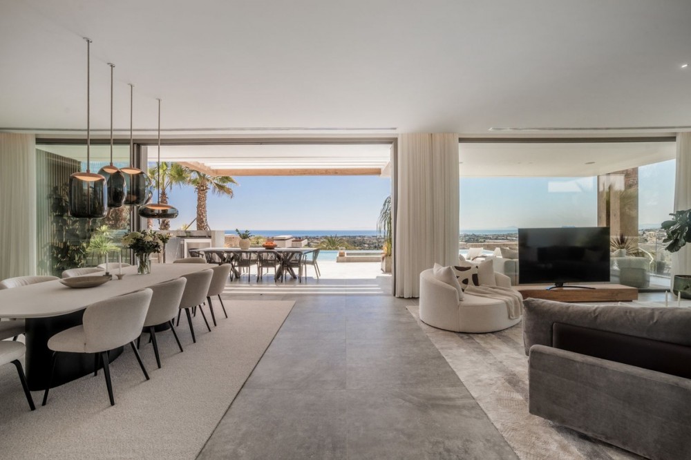 - Stunning detached villa in La Quinta. With panoramic views that stretches from the Mediterranean Sea to the African coast. Its contemporary design enhances this experience, with open-plan interiors that blend effortlessly with the natural surroundings. Floor-to-ceiling windows and expansive living areas create a seamless indoor-outdoor flow, filling the space with natural light, fresh air, and uninterrupted views at every turn. This villa features a private spa, complete with an indoor heated pool, sauna, steam room, and a dedicated massage area. A fully equipped gym fitted with Eleiko gear allows you to stay active without ever leaving home, while the spacious entertainment room offers the ideal setting for movie nights, games, or simply relaxing with family and friends. The kitchen features high-quality Gaggenau appliances and sleek cabinetry from Danespan, combining modern design with everyday functionality. An adjacent home office offers a quiet space for work or study. A unique highlight of the villa is the outdoor cinema by the pool, creating an exceptional venue for relaxation under the stars, offering an added touch of luxury to your evenings outdoors. Inside, you’ll find six generously sized bedrooms, each thoughtfully designed with high-quality finishes and a calming atmosphere. Whether used as guest suites, family rooms, or private workspaces, every bedroom offers its own unique charm and comfort. Followed by seven full bathrooms and three guest toilets spread throughout the property. The master suite is truly exceptional. Positioned to capture breathtaking sea views, it boasts a custom-designed walk-in closet and a luxurious en-suite bathroom with high-end fixtures and a serene, spa-like feel creating a peaceful retreat within the home.